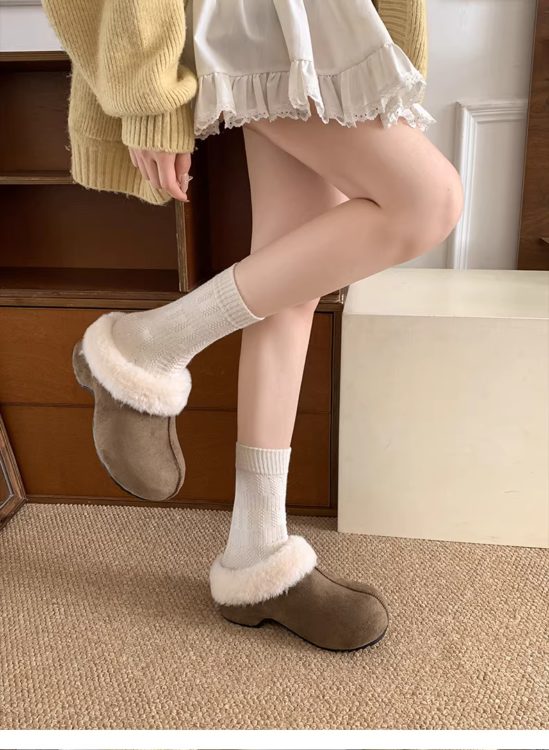 - Giày Birkenstock đế dày chống trơn kiểu retro dành cho nữ, mẫu mới mùa đông 2025, giữ ấm, tăng chiều cao, chất liệu cotton, kiểu nửa dép nửa giày.