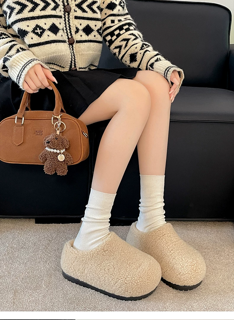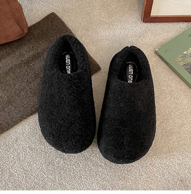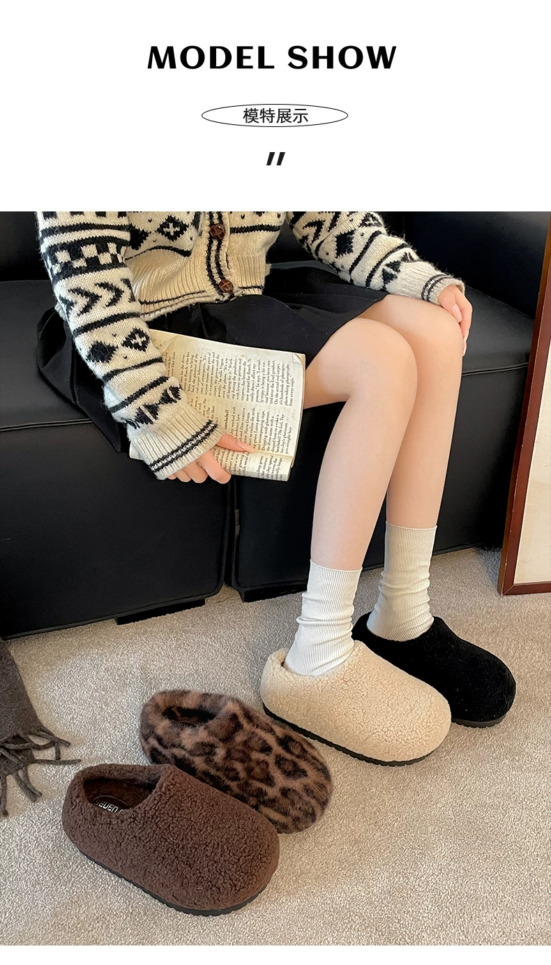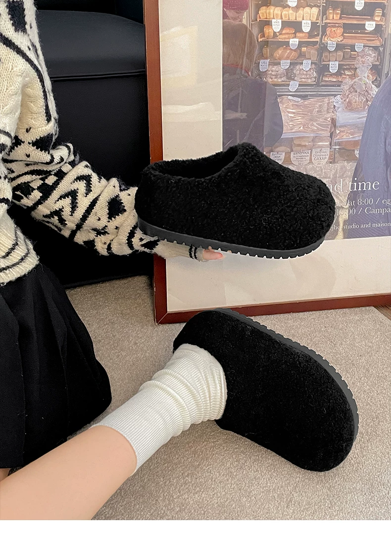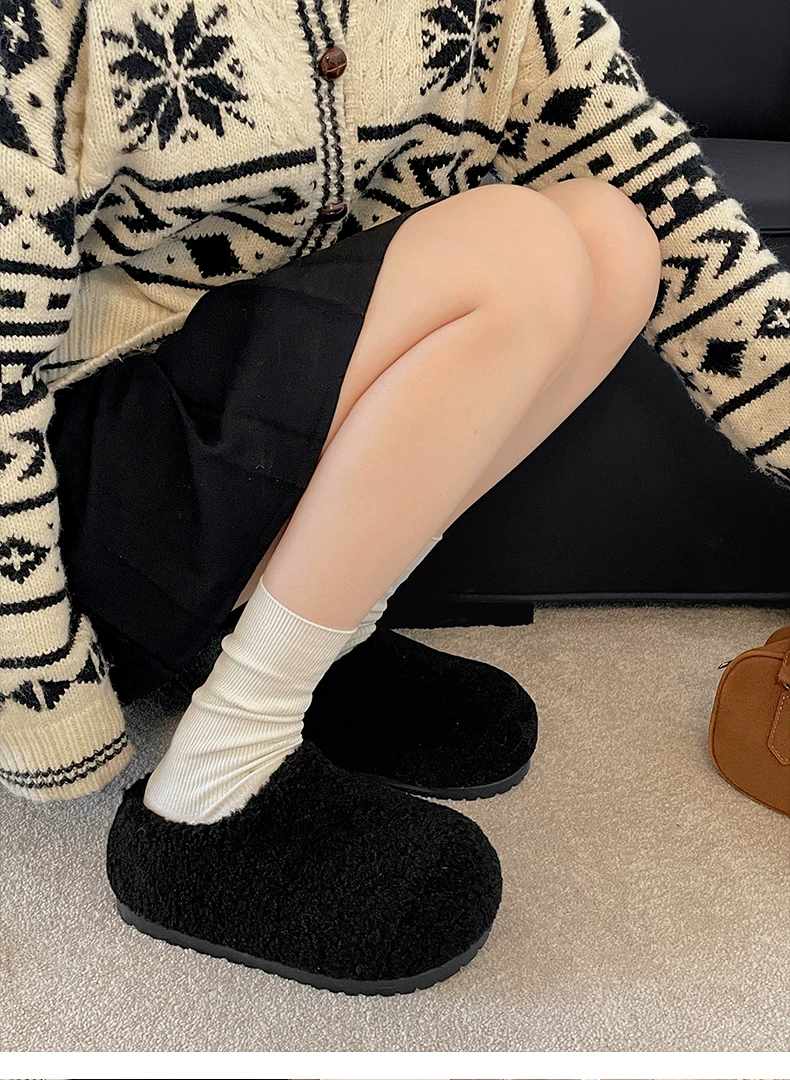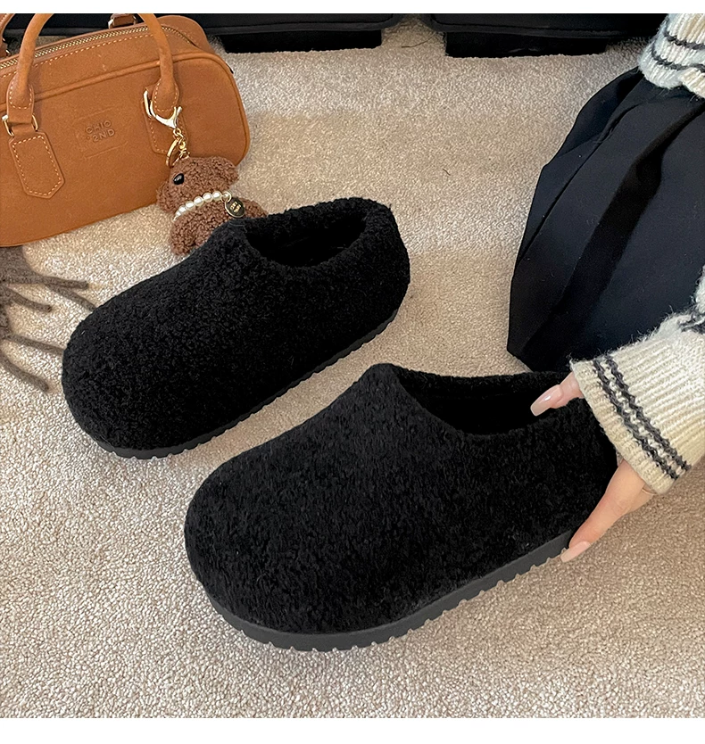 - Giày Birkenstock đế dày chống trượt màu đen dành cho nữ, thích hợp để mang ngoài trời, dép bông lông tăng chiều cao đa năng mùa thu đông 2025.