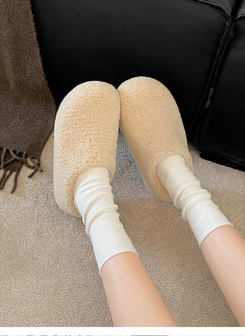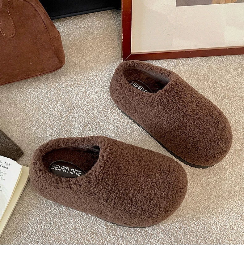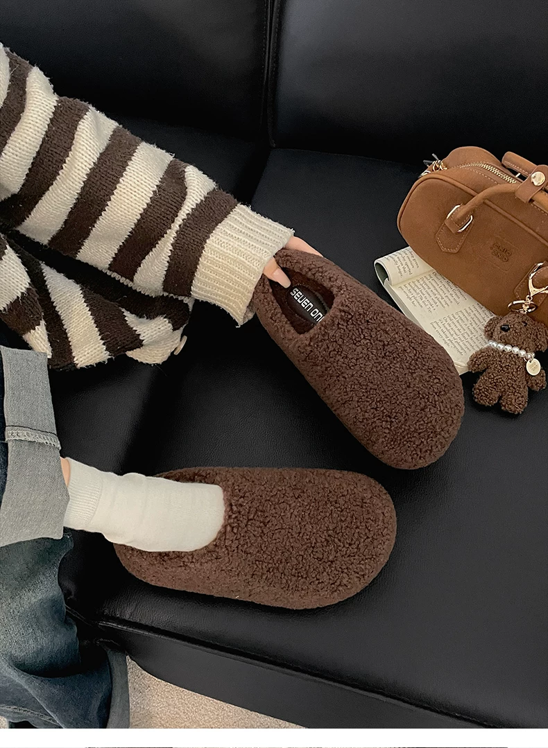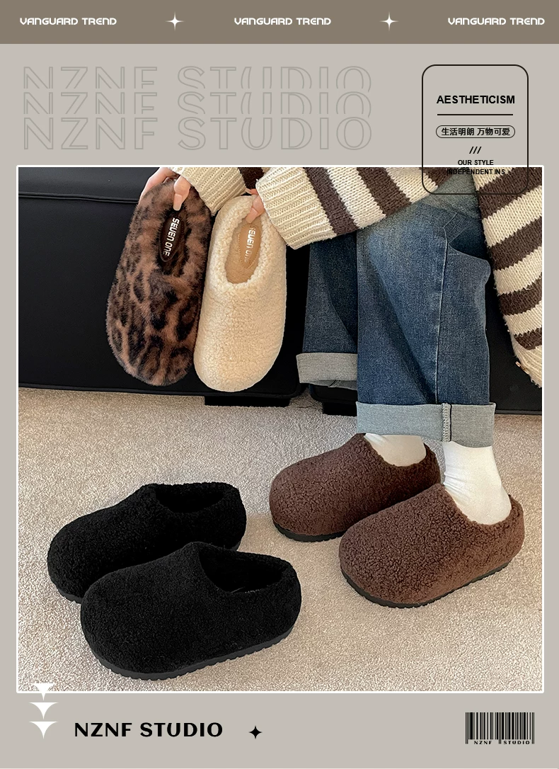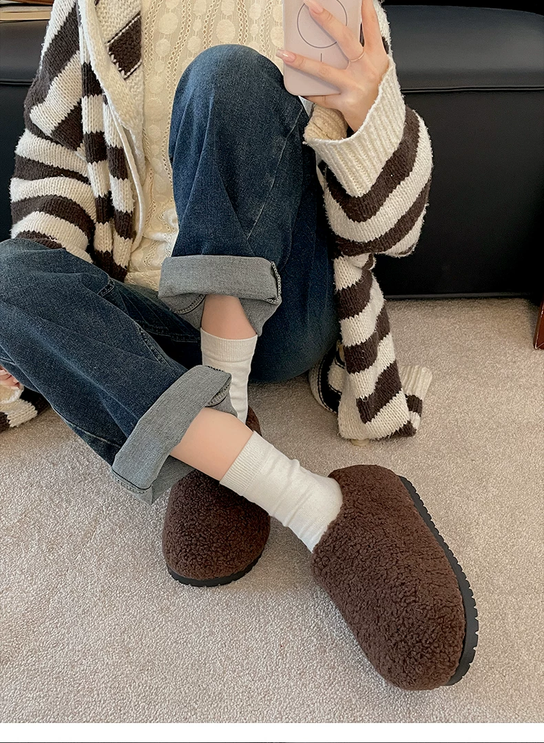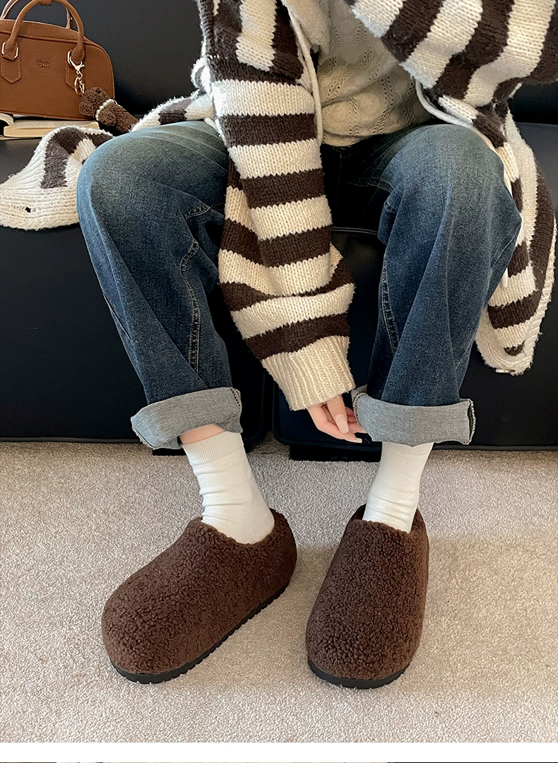 - Giày Birkenstock đế dày chống trượt màu đen dành cho nữ, thích hợp để mang ngoài trời, dép bông lông tăng chiều cao đa năng mùa thu đông 2025.