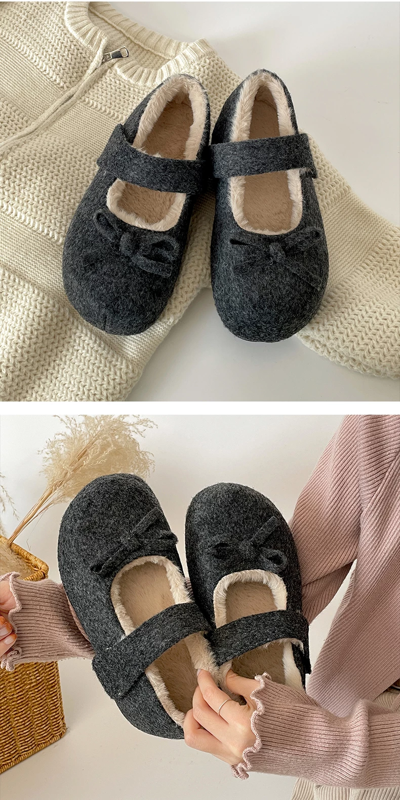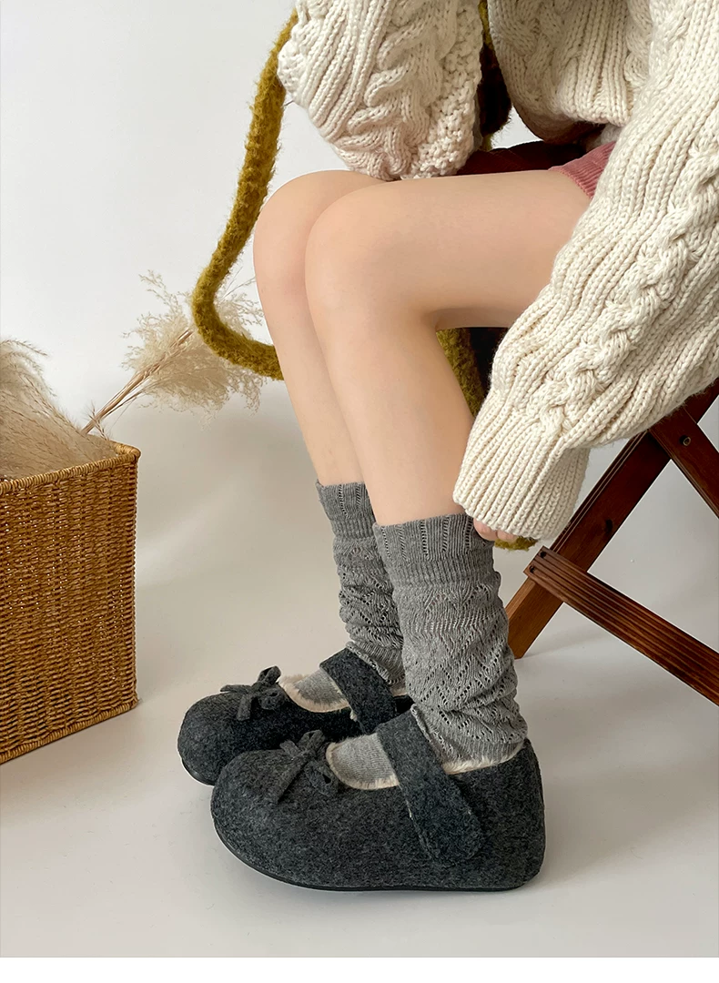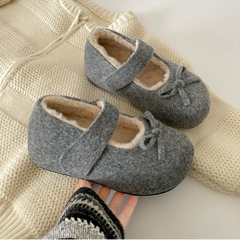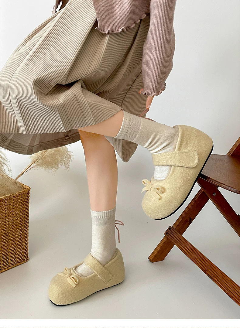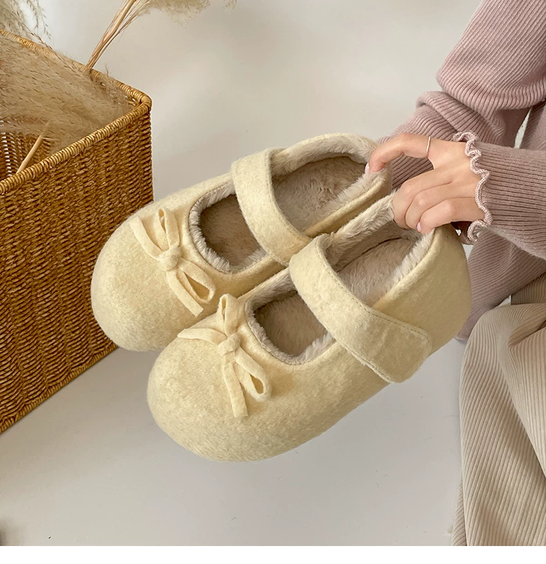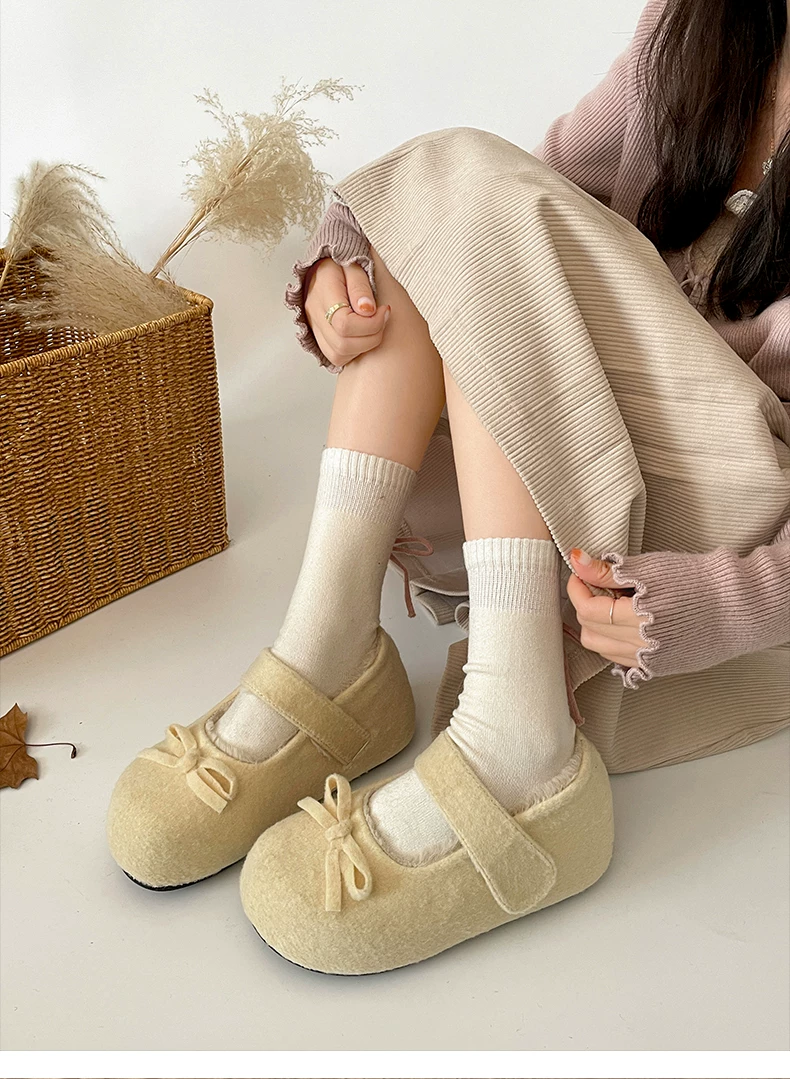 - Giày Birkenstock đế dày lót nhung trắng cổ điển tăng chiều cao dành cho nữ, giày Mary Jane lông ấm dày dặn mùa đông 2025 mới