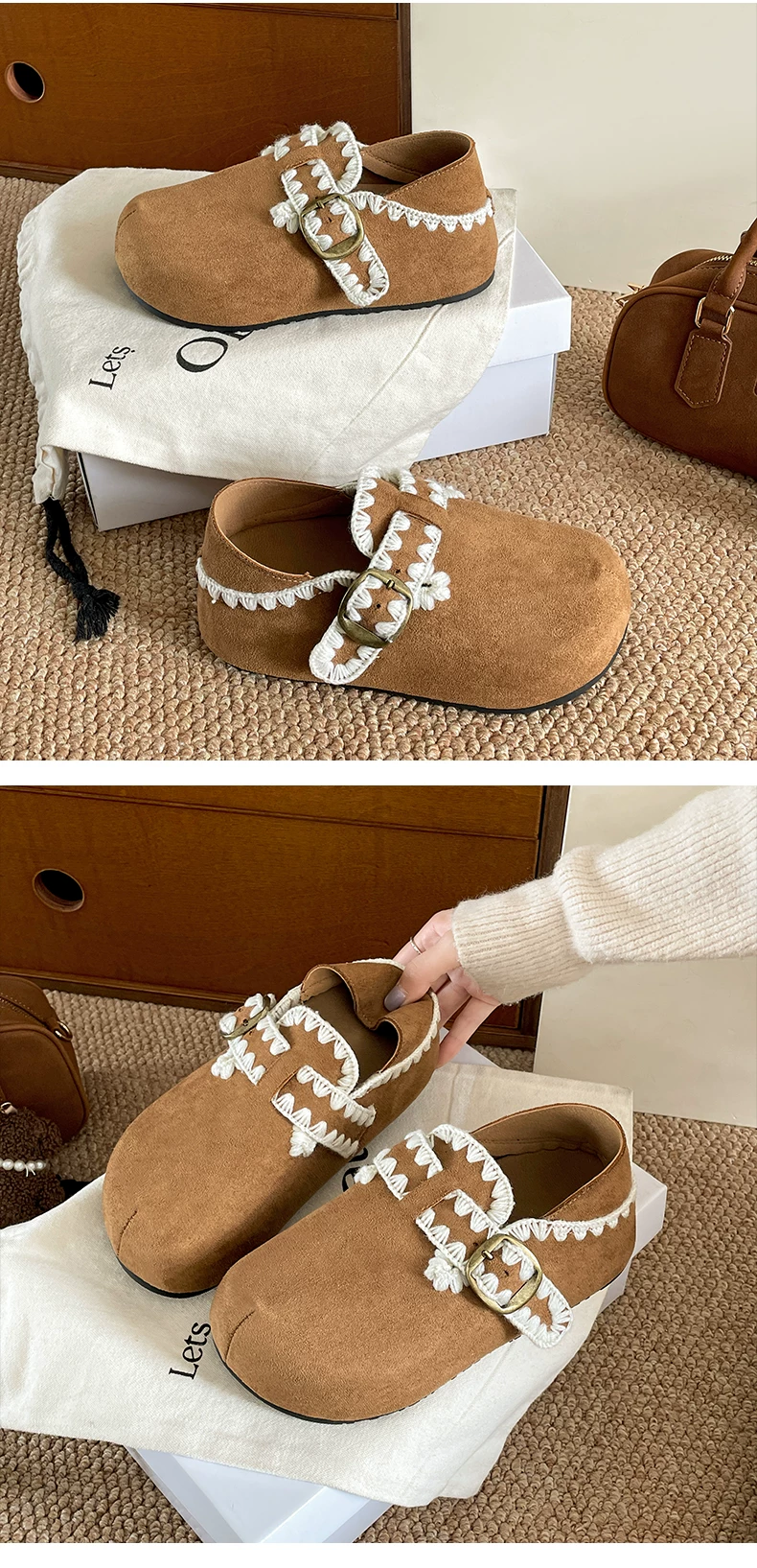 - Giày Birkenstock đế dày màu nâu cổ điển kiểu Pháp, đế dày, che kín toàn bộ bàn chân dành cho nữ, mẫu mới thu đông 2025, đa năng, tăng chiều cao.