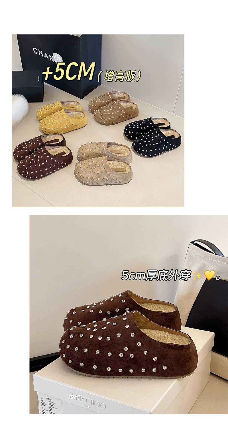 - Giày Birkenstock đế dày nửa đế kiểu cổ điển mùa đông dành cho nữ 2025, kiểu dáng retro, chất liệu nhung mềm mại, giữ ấm, tăng chiều cao.