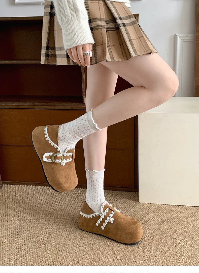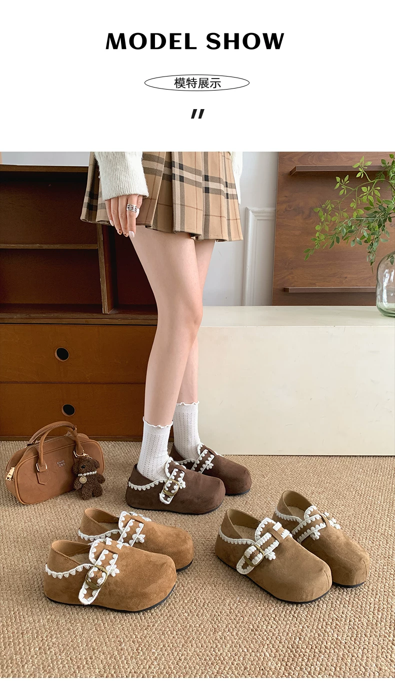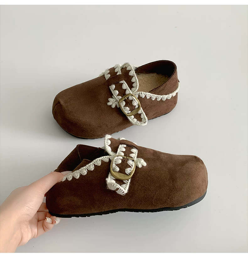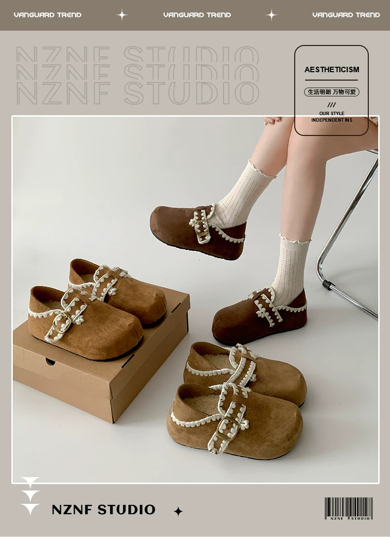 - Giày Birkenstock kiểu Pháp màu nâu cổ điển dành cho nữ, mùa thu đông 2025, kiểu dáng ấm áp, lót lông cừu, chất liệu cotton.