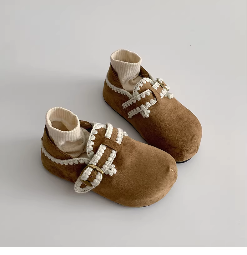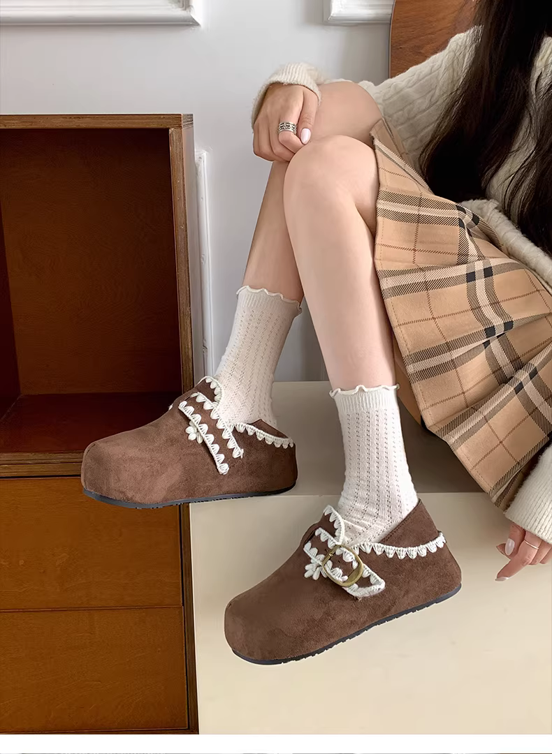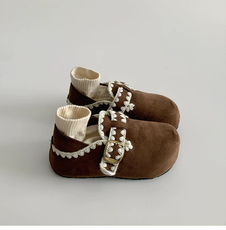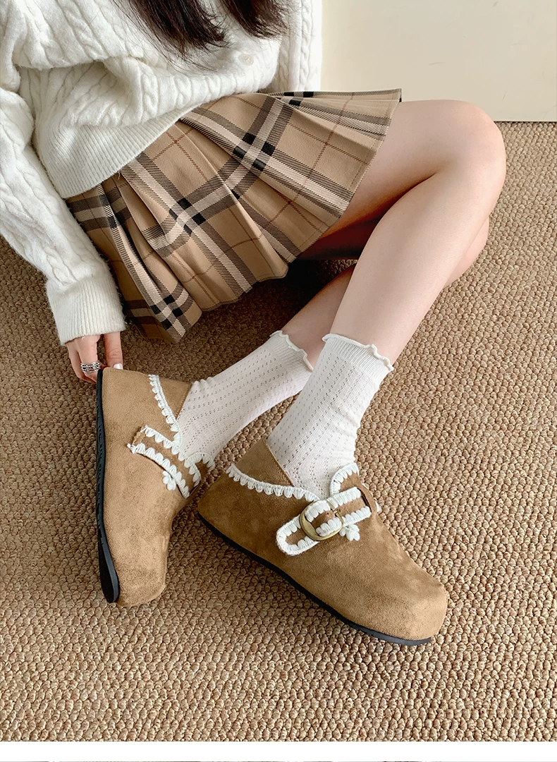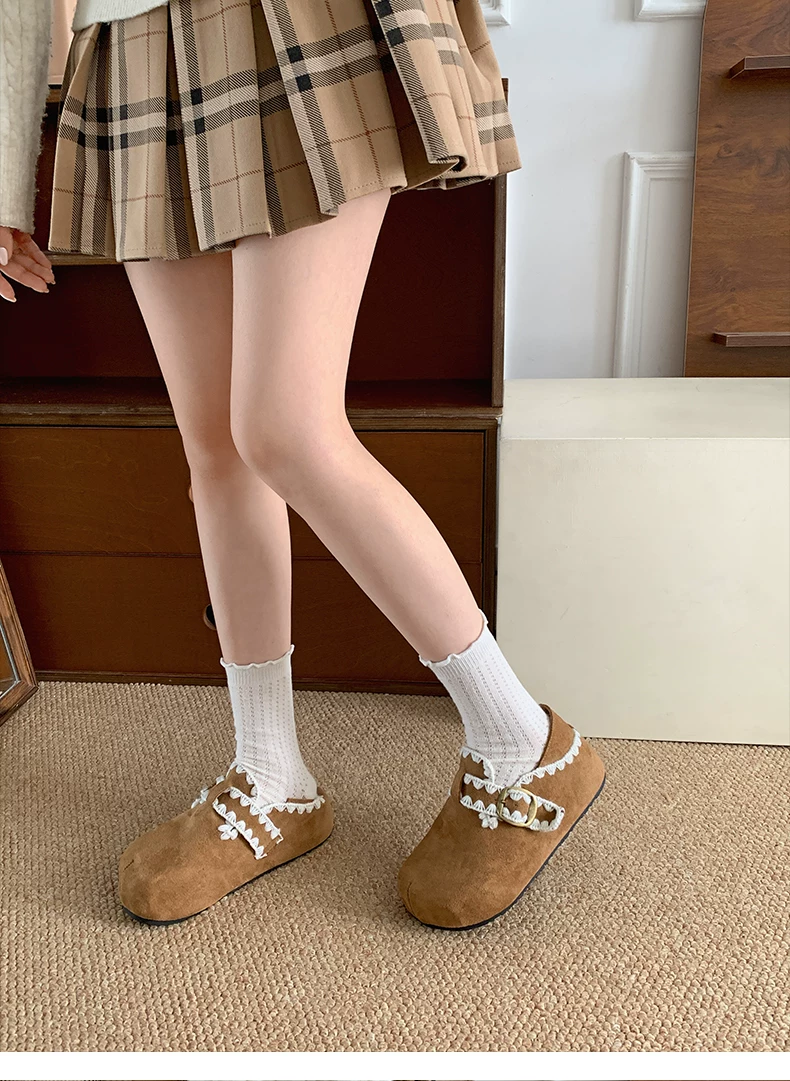 - Giày Birkenstock kiểu Pháp màu nâu cổ điển dành cho nữ, mùa thu đông 2025, kiểu dáng ấm áp, lót lông cừu, chất liệu cotton.