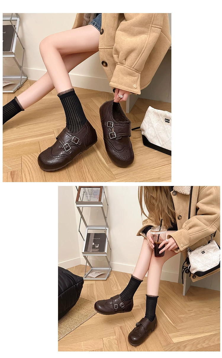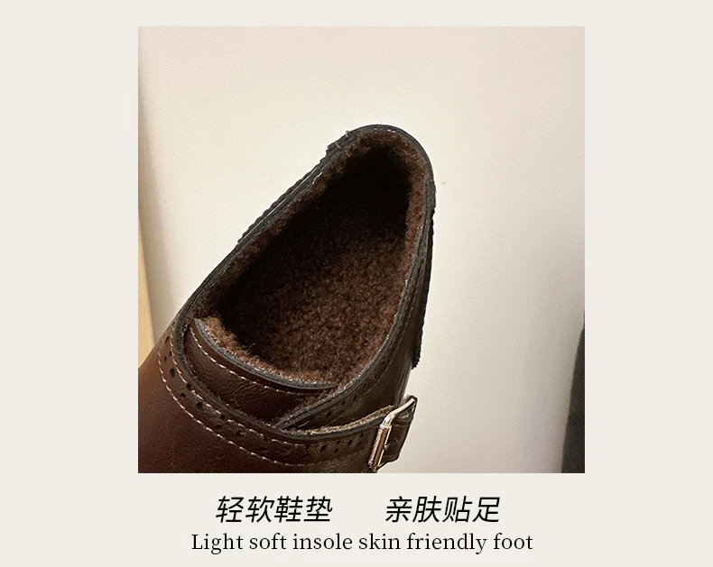 - Giày Birkenstock nữ đế dày lót lông phong cách Anh đen thời thượng, mùa đông 2025, tăng chiều cao, giữ ấm, chống trơn trượt, chất liệu cotton