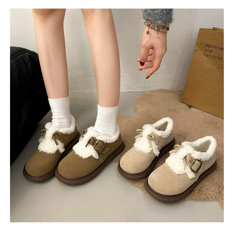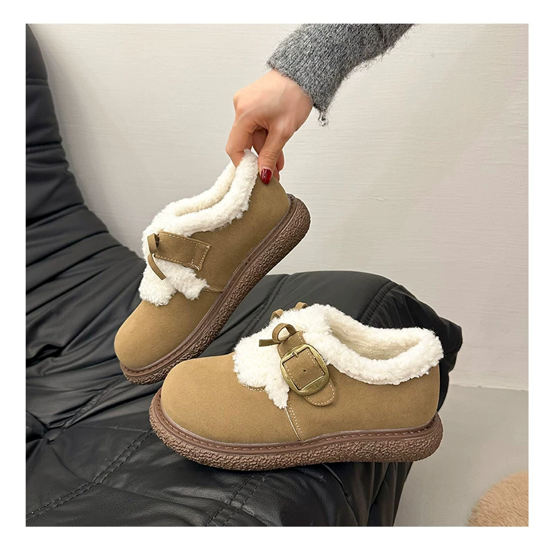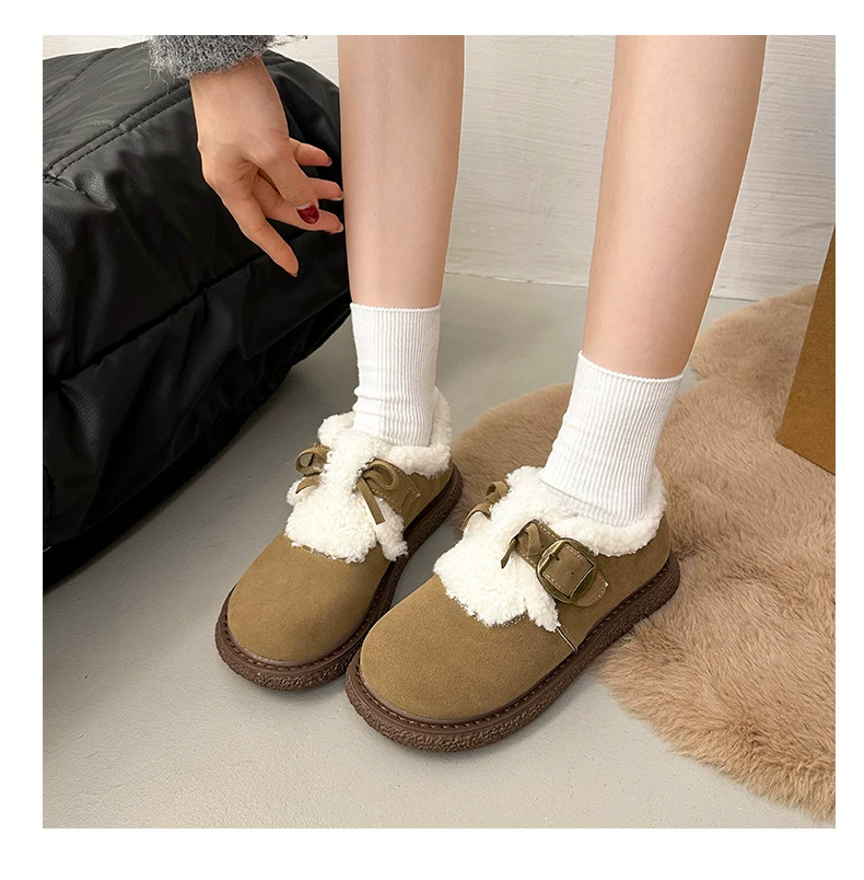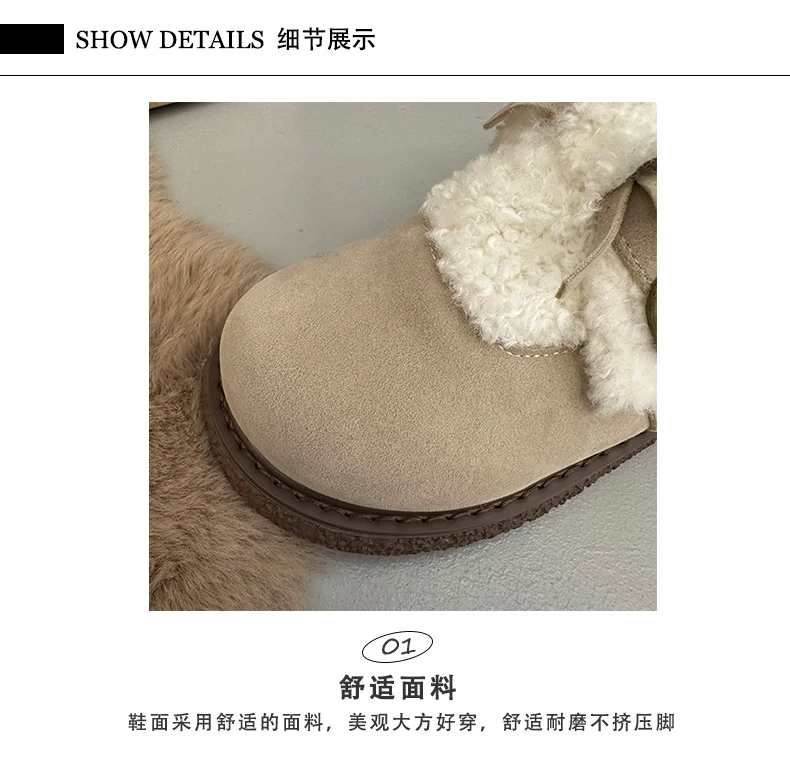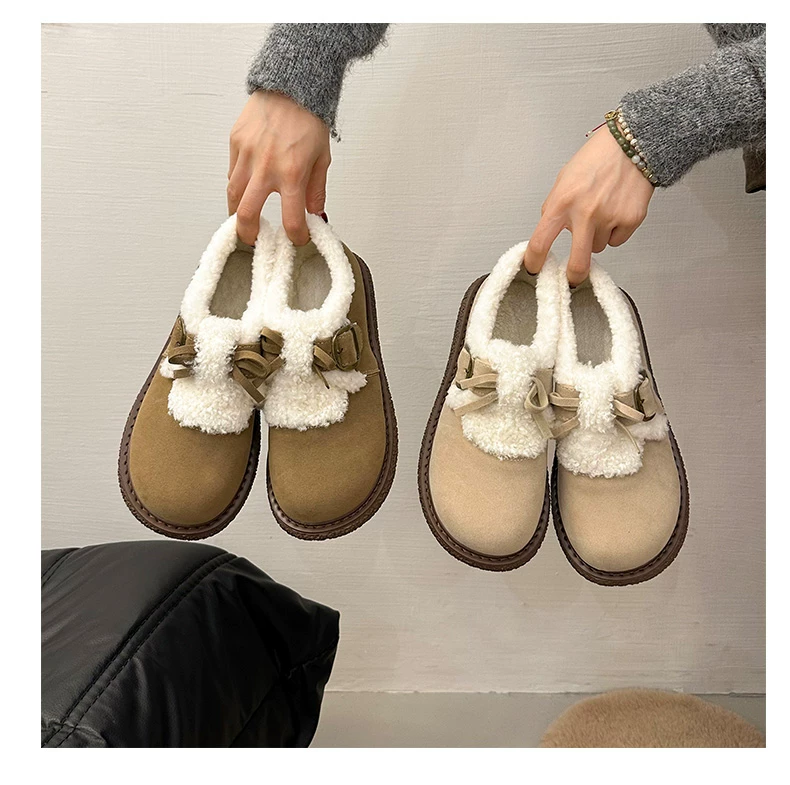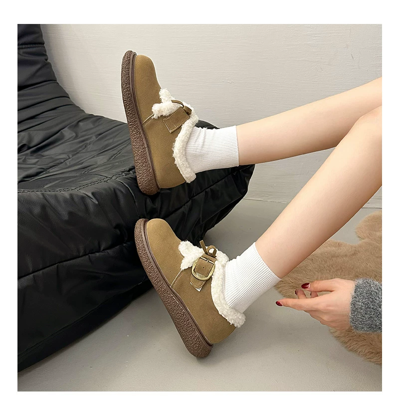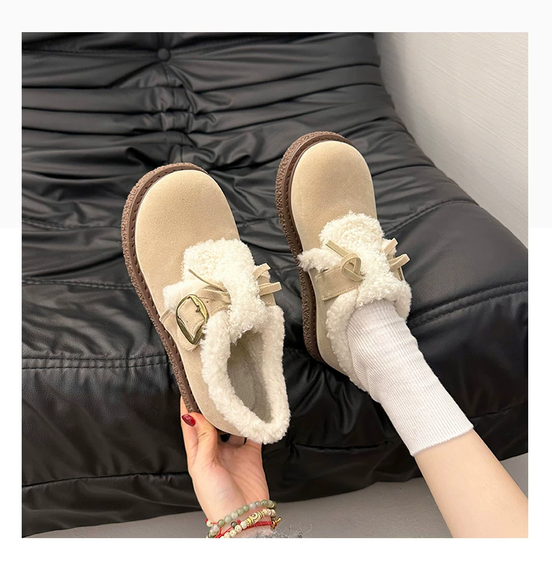 Giày bông đi tuyết đế dày, lót lông cừu, chống trơn trượt, dành cho mùa đông, kiểu mới 2025, kiểu dáng cổ điển ấm áp, phong cách Birkenstock.