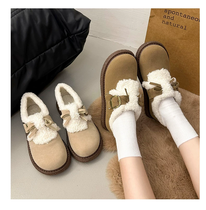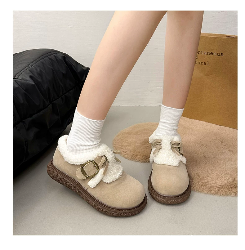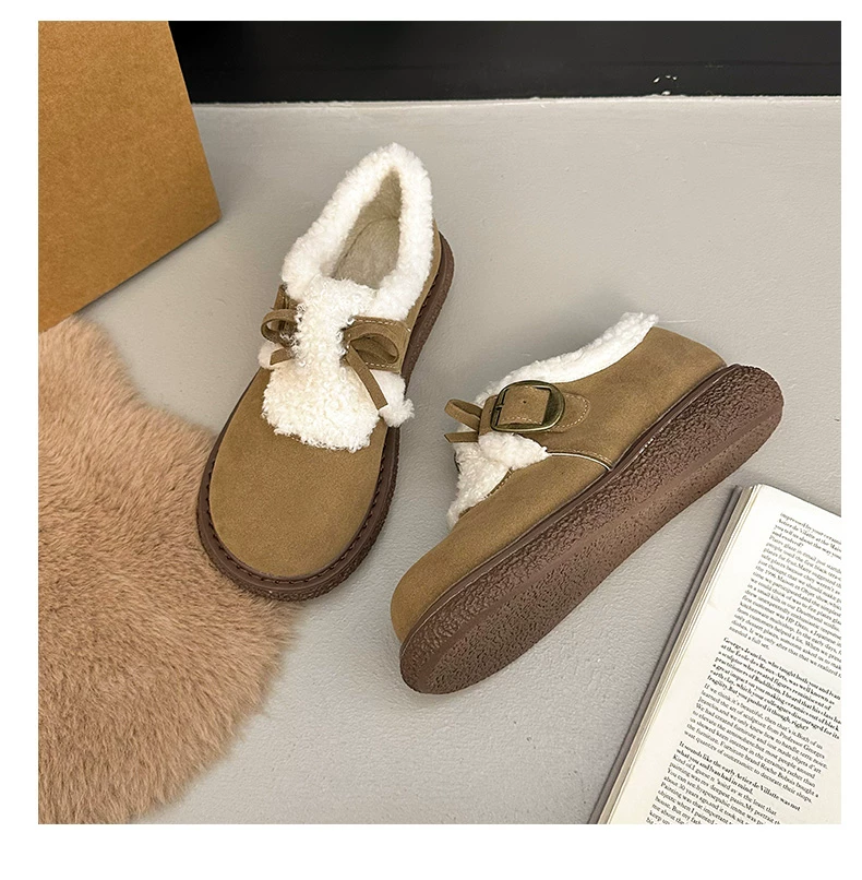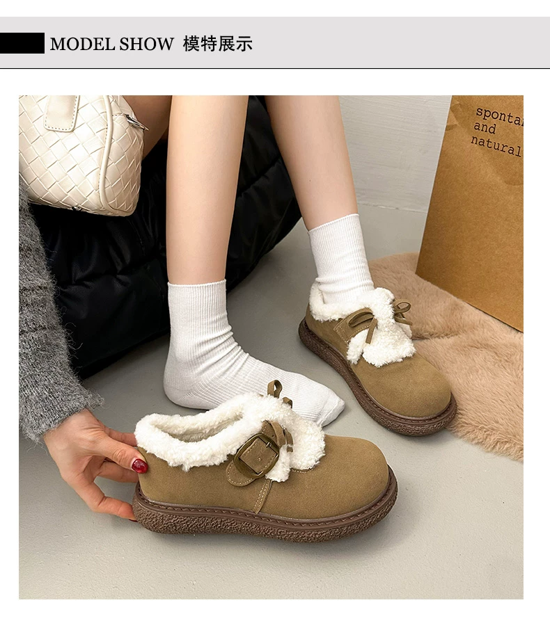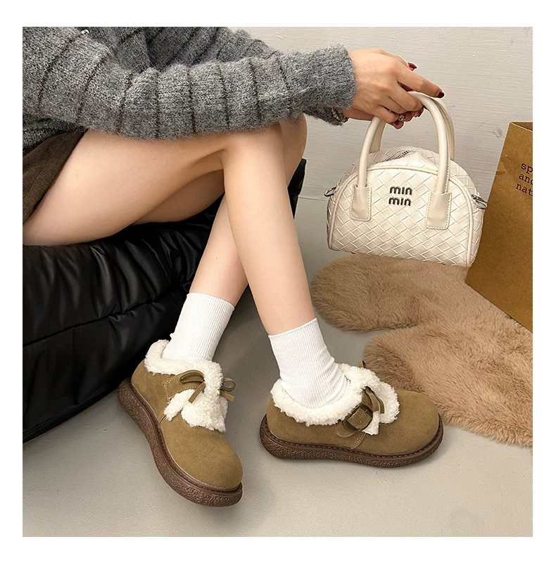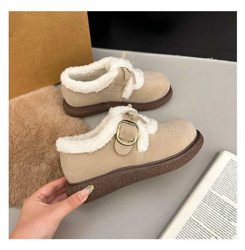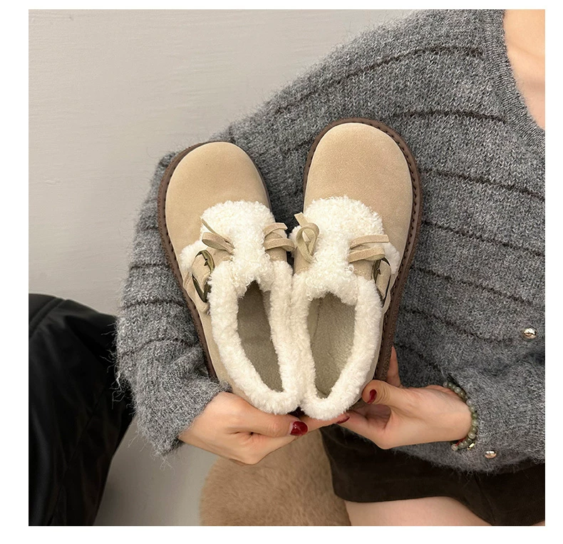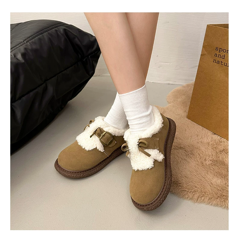 Giày bông đi tuyết đế dày, lót lông cừu, chống trơn trượt, dành cho mùa đông, kiểu mới 2025, kiểu dáng cổ điển ấm áp, phong cách Birkenstock.