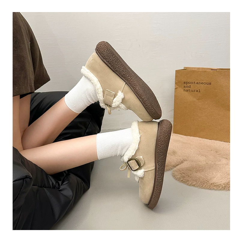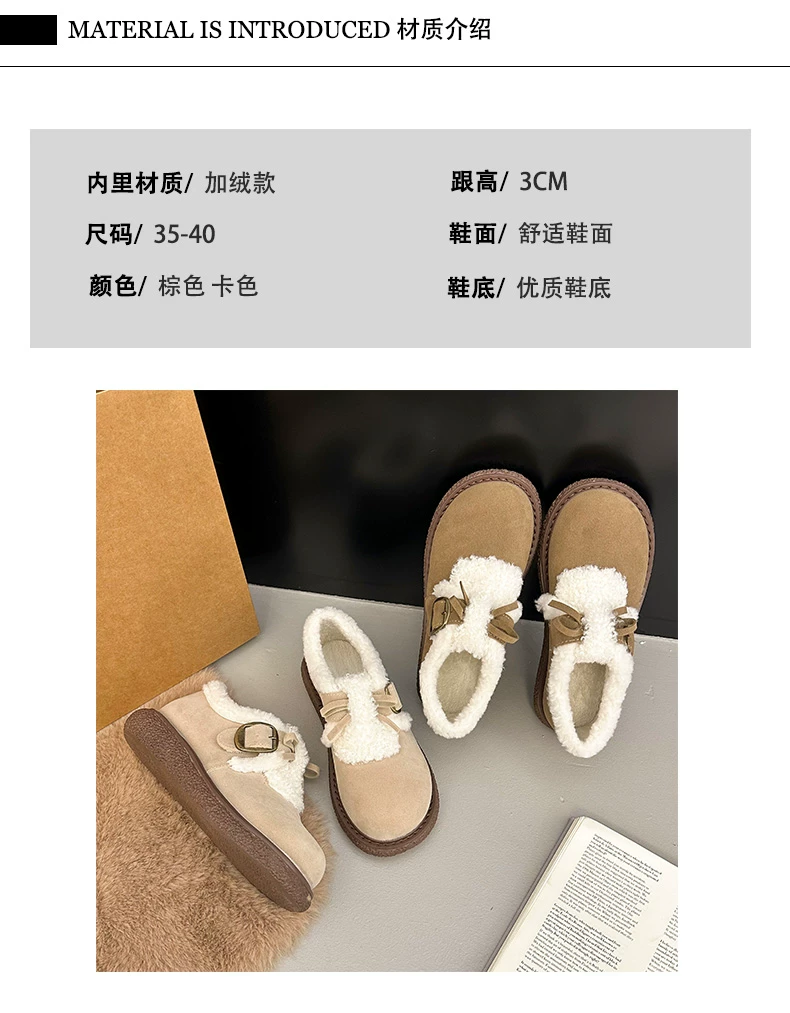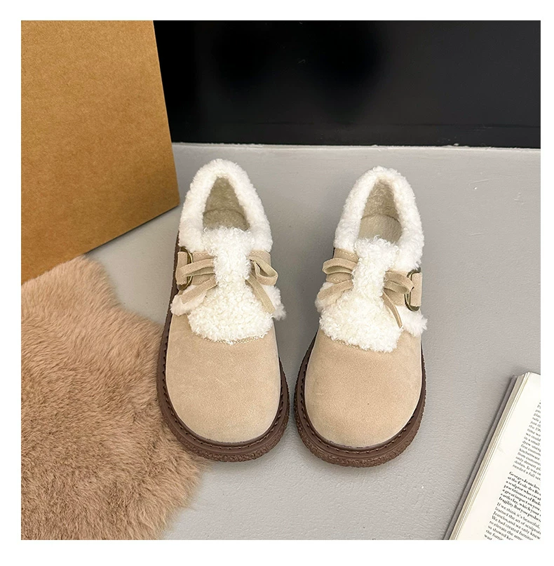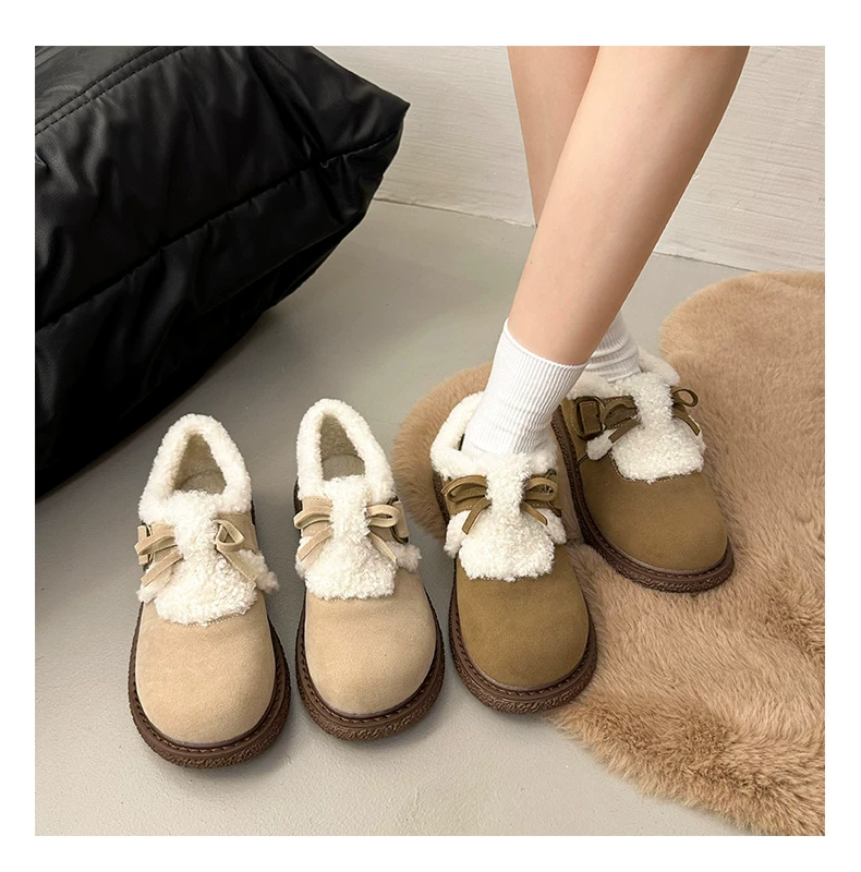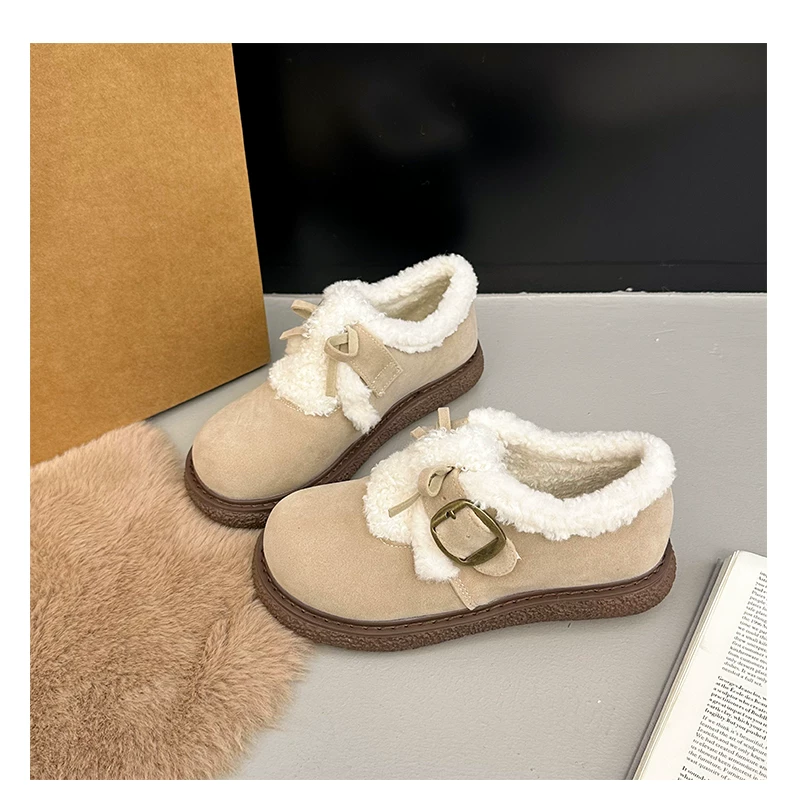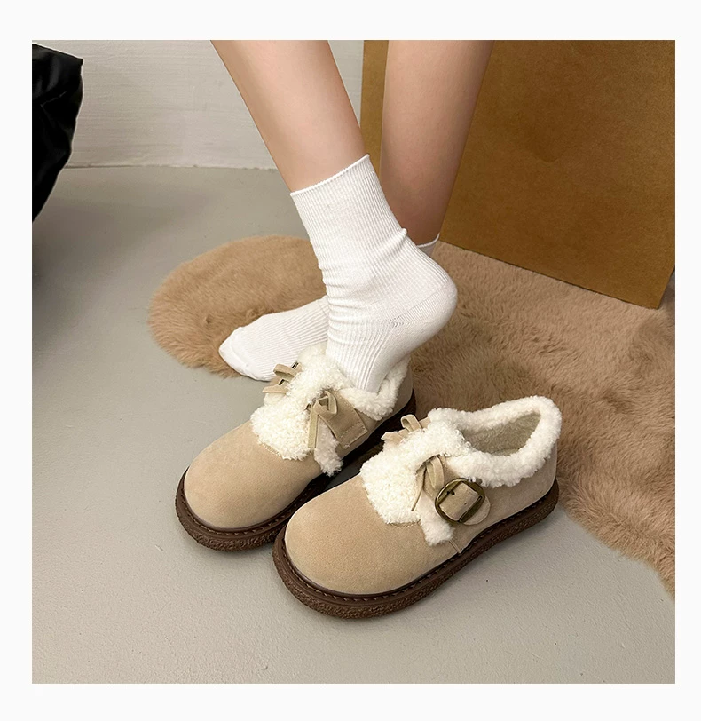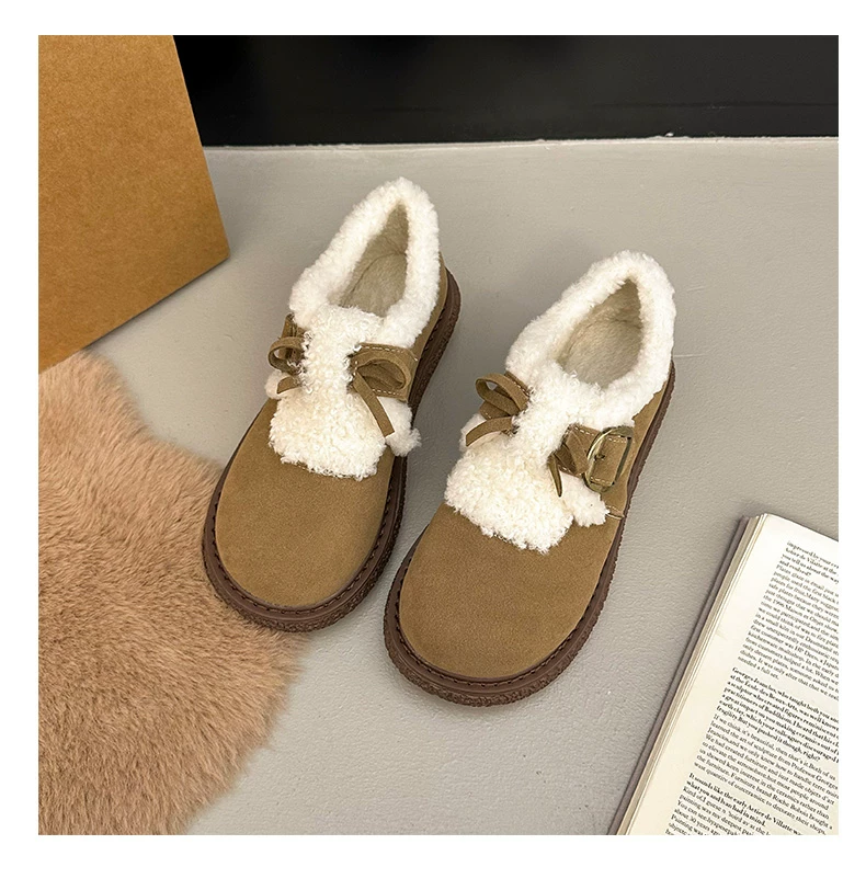 Giày bông đi tuyết đế dày, lót lông cừu, chống trơn trượt, dành cho mùa đông, kiểu mới 2025, kiểu dáng cổ điển ấm áp, phong cách Birkenstock.