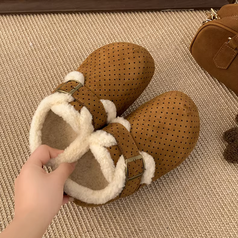 - Giày bông nhung đế dày màu đen cổ điển dành cho nữ mùa đông 2025 kiểu mới giữ ấm chống trơn lông mềm kiểu Birkenstock