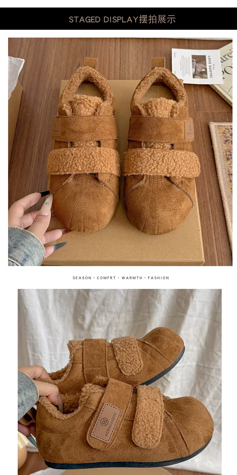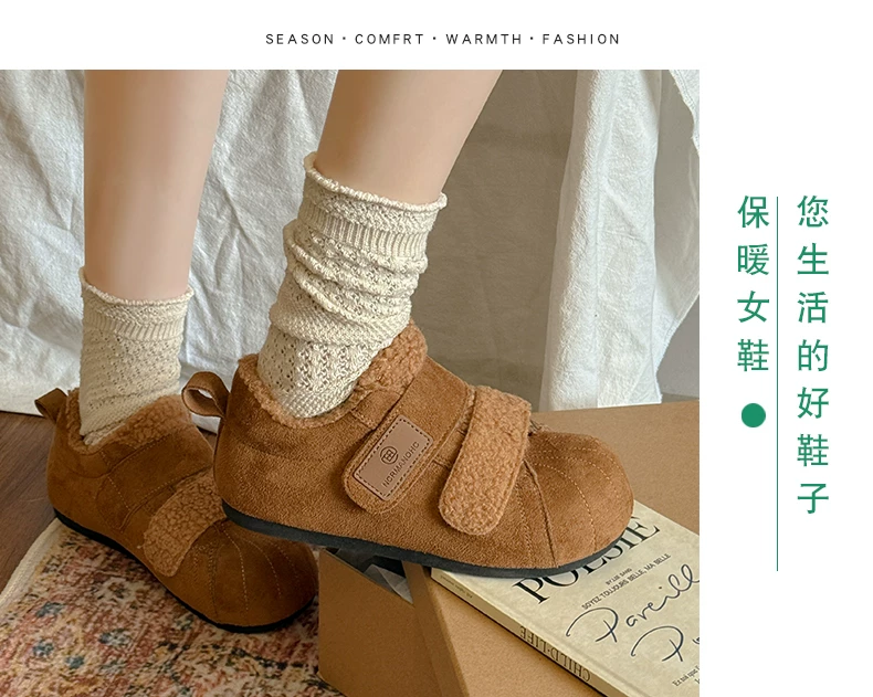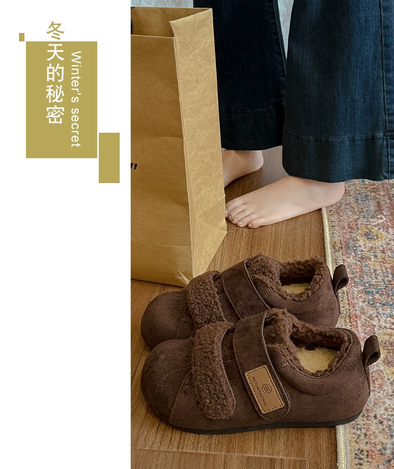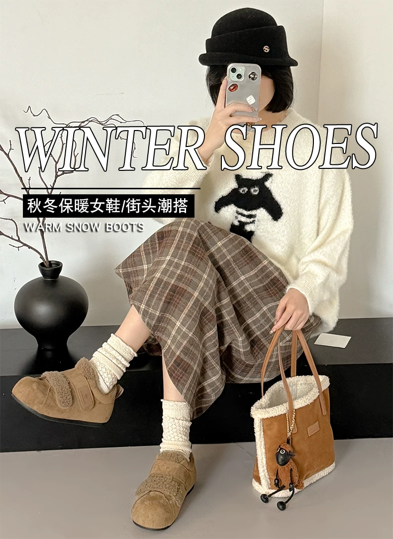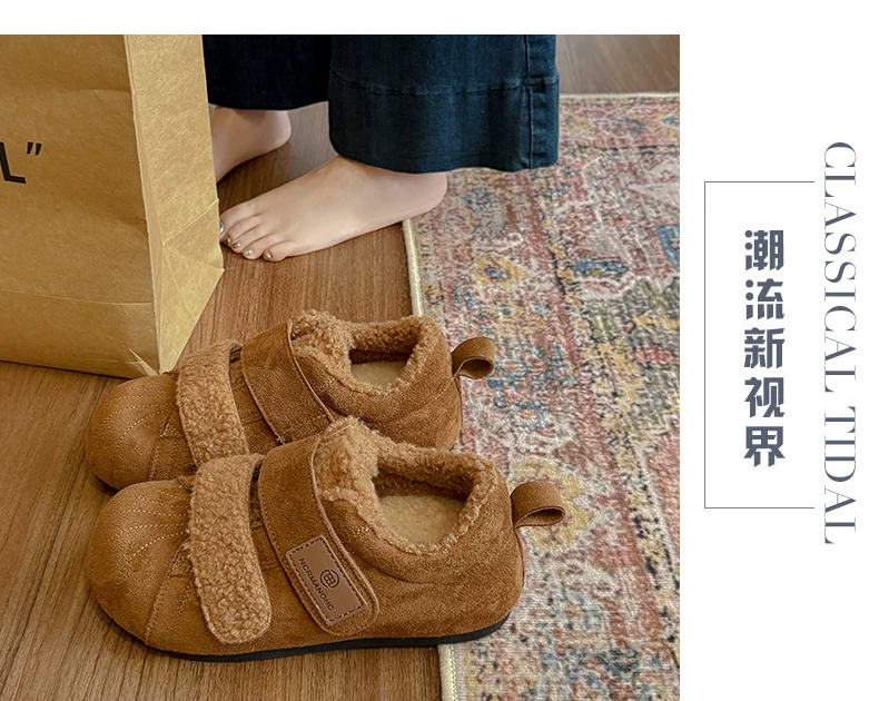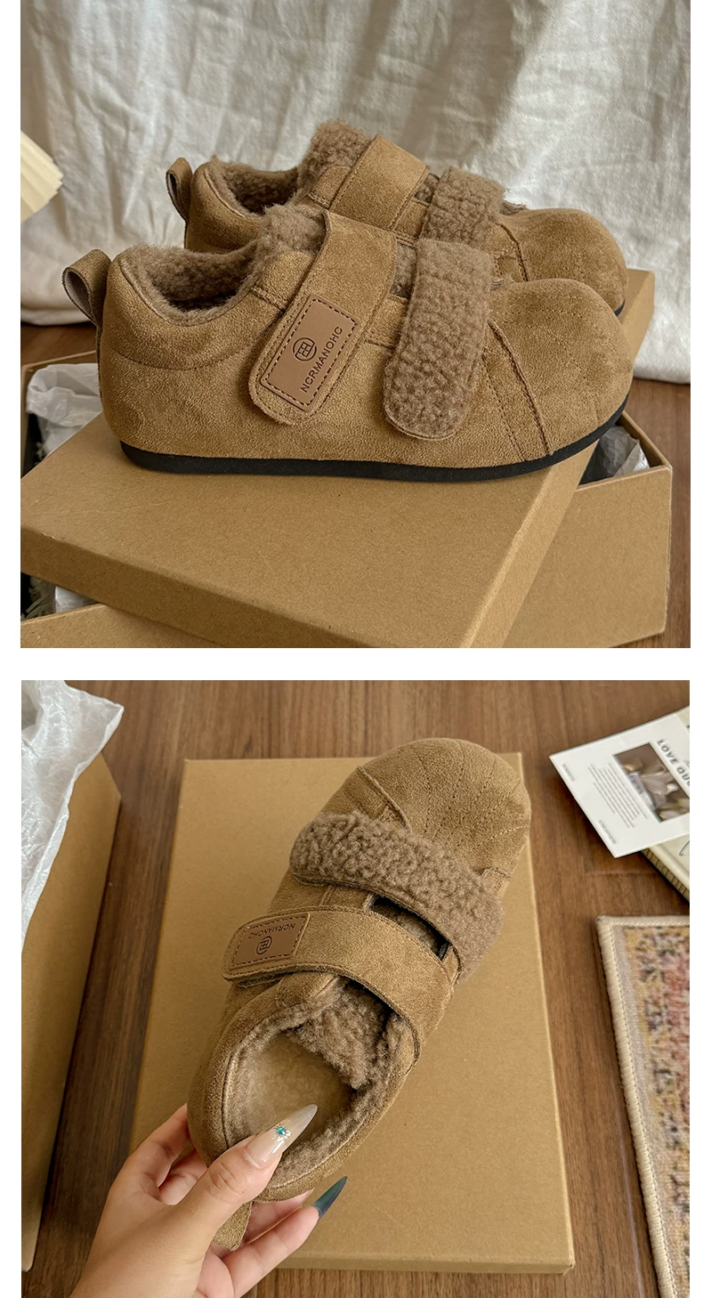 - Giày bông tuyết đế dày lót lông cừu kiểu cổ điển dành cho nữ, mùa đông 2025 kiểu mới, đi ngoài trời, giày tập Đức ấm áp lông xù.
