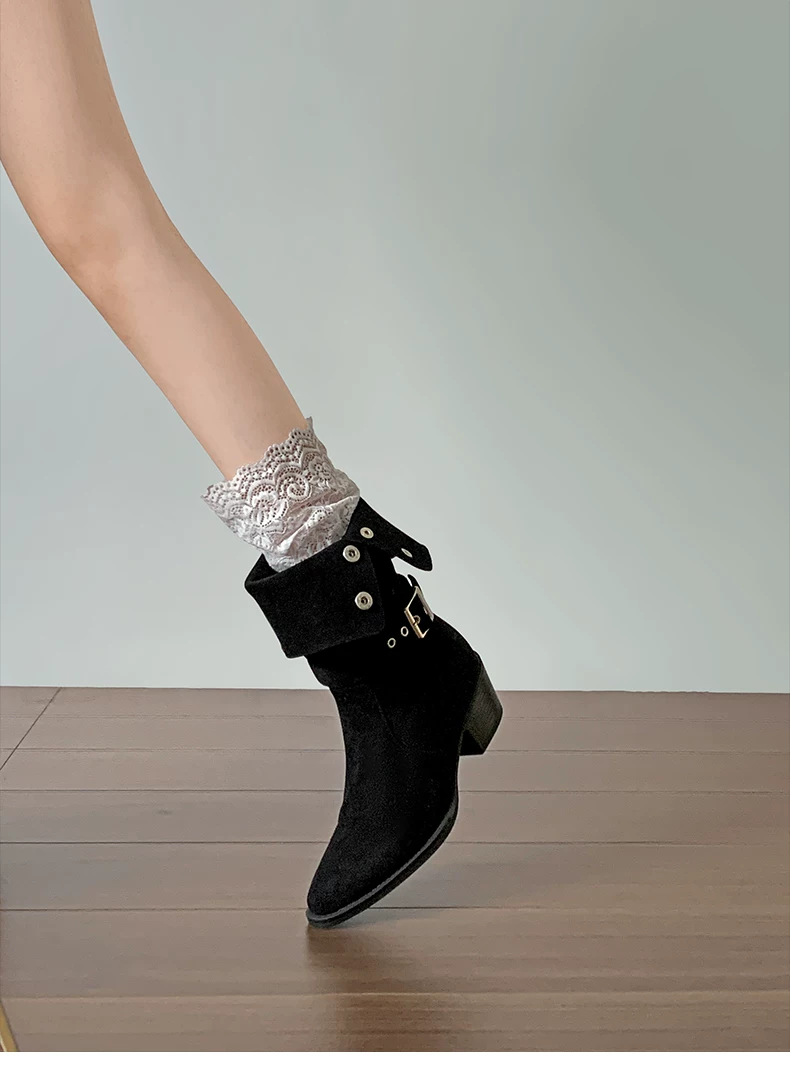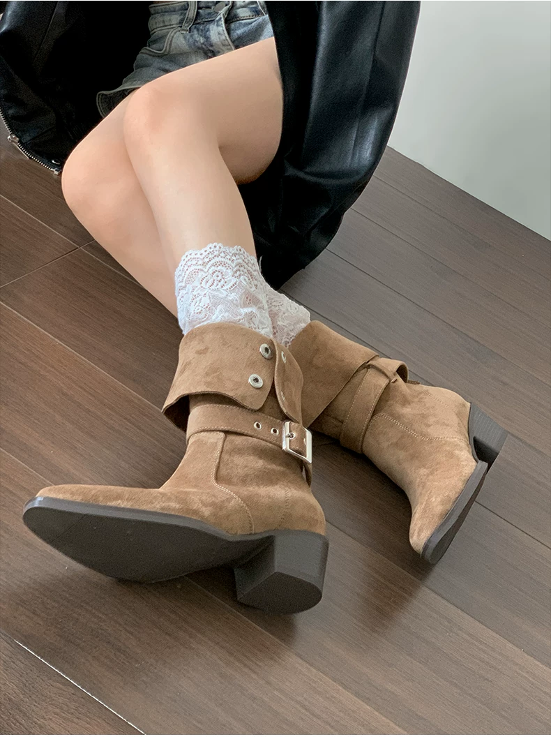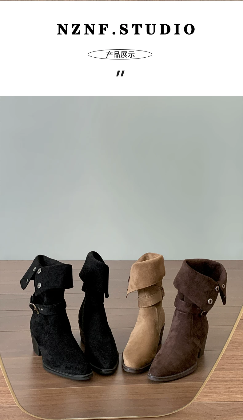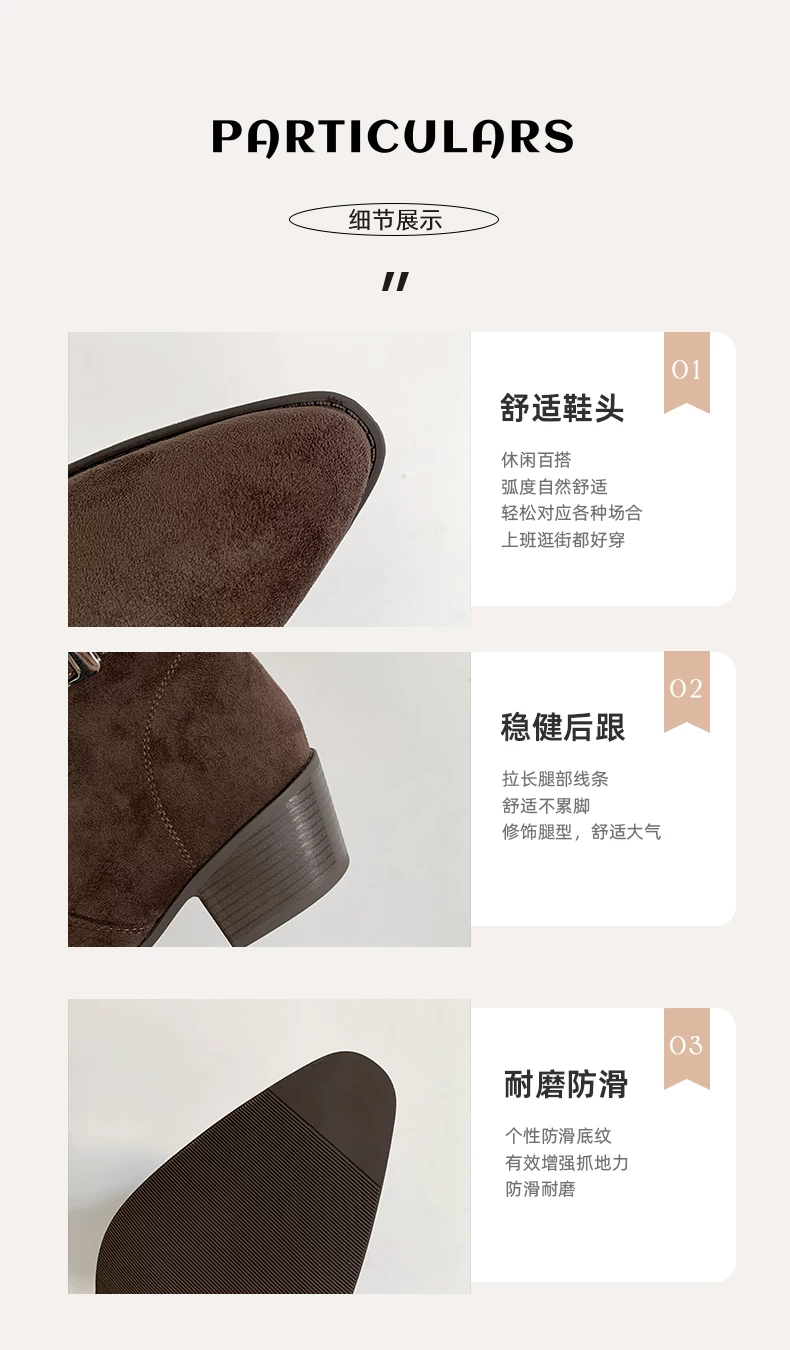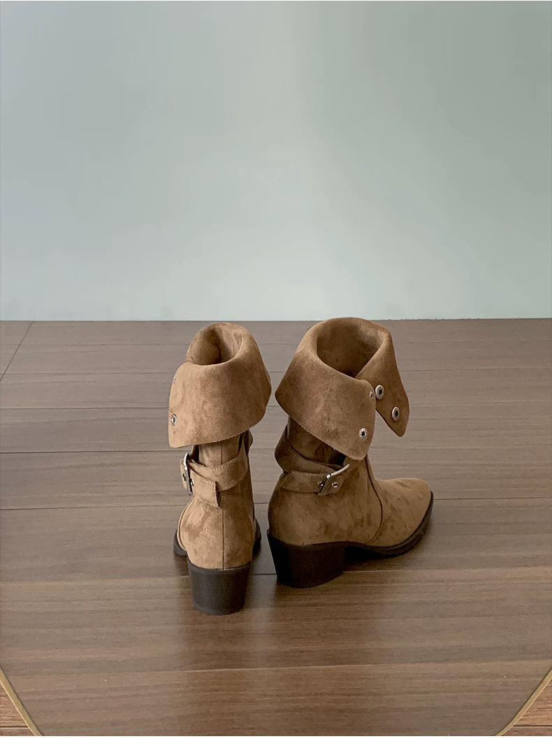 - Giày bốt cao gót đế thô mũi nhọn màu kaki cổ điển dành cho nữ, mẫu mới thu đông 2025, đa năng, tăng chiều cao, thon gọn, kiểu dáng đi xe dành cho người nhỏ nhắn