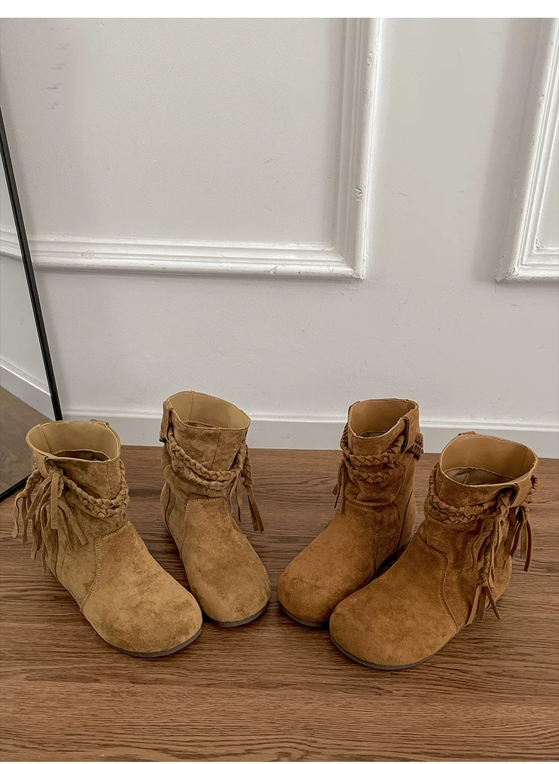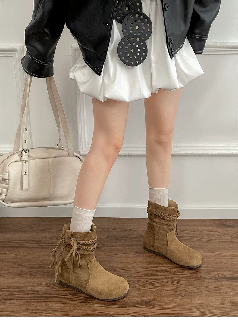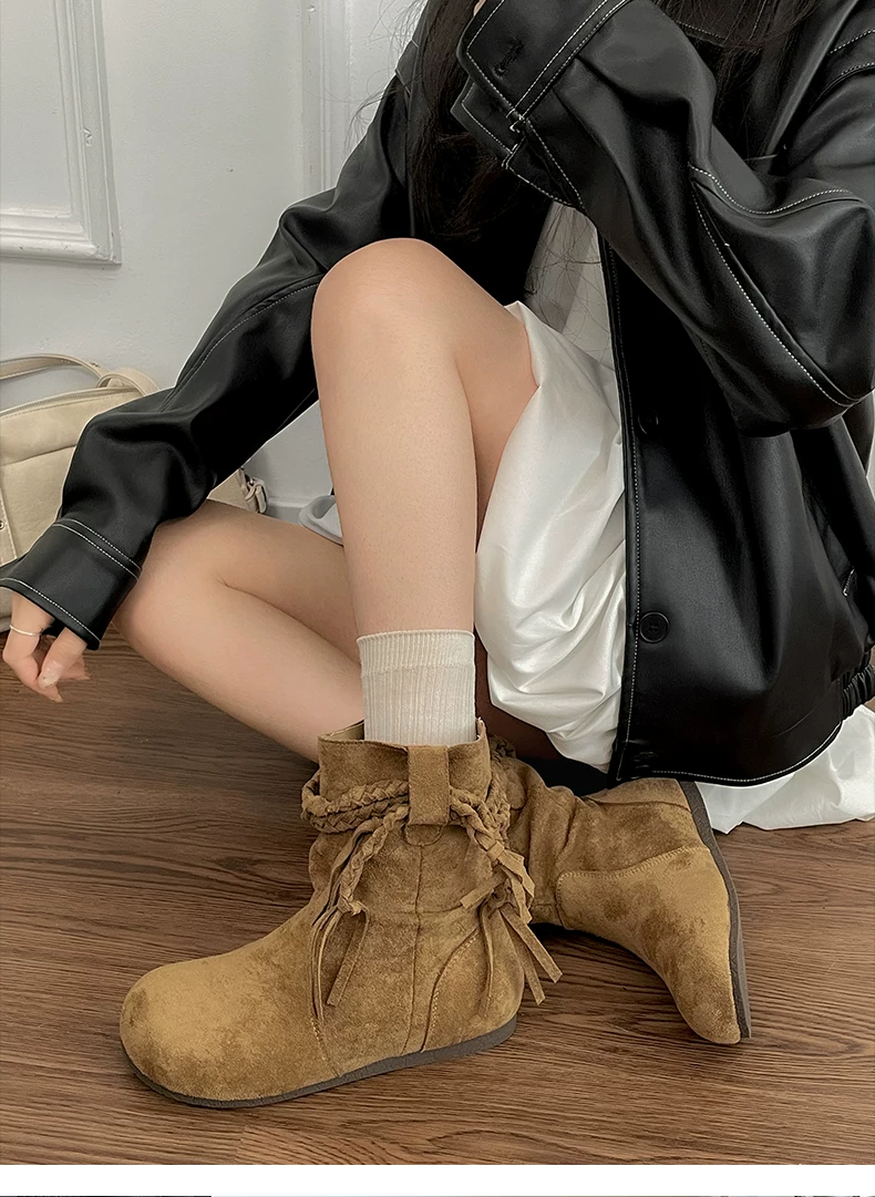 - Giày bốt cổ ngắn tăng chiều cao đế bằng kiểu cổ điển Nanzai Nanfang Melard dành cho nữ, giày bốt dáng rộng giảm béo mùa thu đông mới năm 2025.