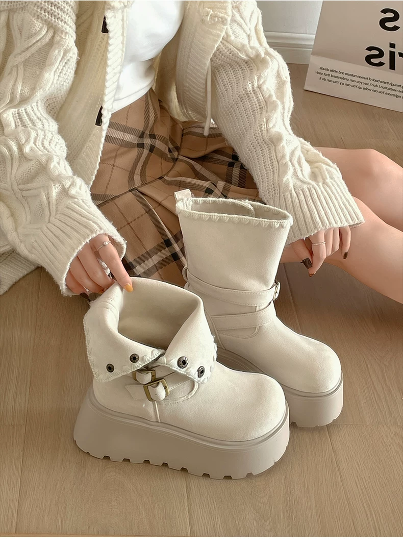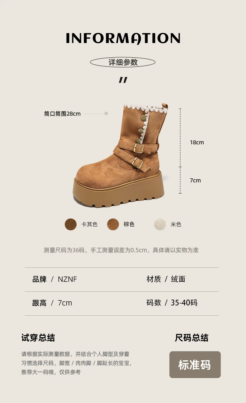 - Giày bốt đế dày cổ điển màu trắng dành cho nữ, kiểu thu đông 2025 mới, phối cùng chân váy giúp trông thon gọn và cao hơn, kiểu bốt ngắn phong cách Birkenstock.