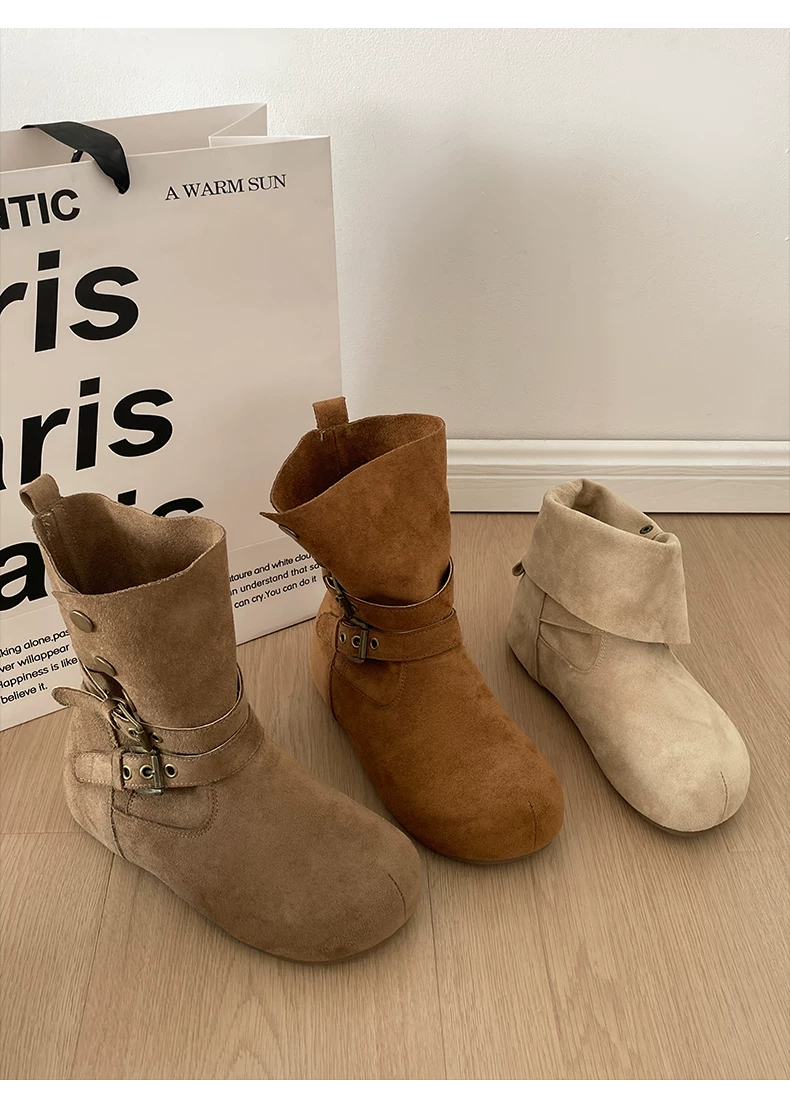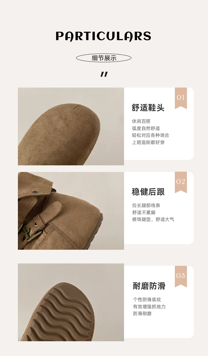 - Giày bốt đế dày tăng chiều cao, lót lông cừu kiểu retro dành cho nữ, phong cách thu đông 2025 mới, phối cùng chân váy để trông thon gọn hơn, kiểu bốt ngắn phong cách Birkenstock.