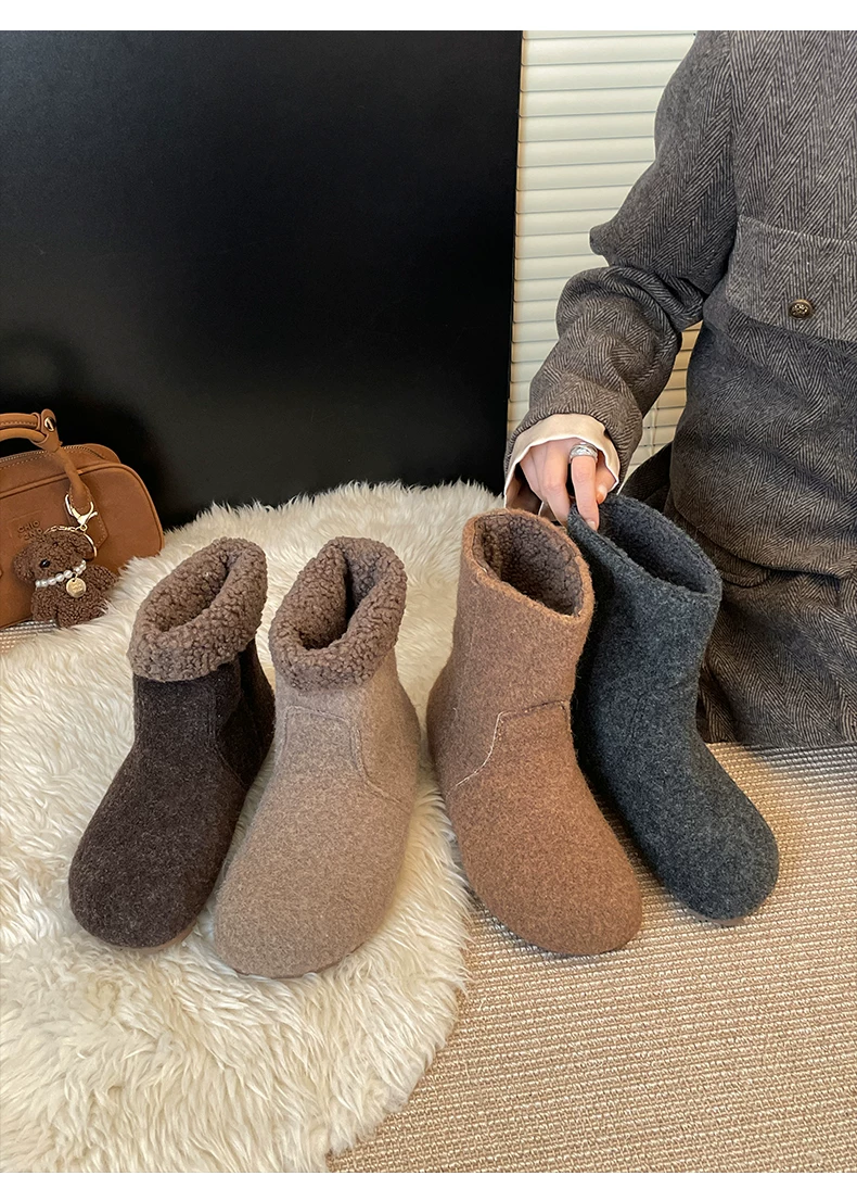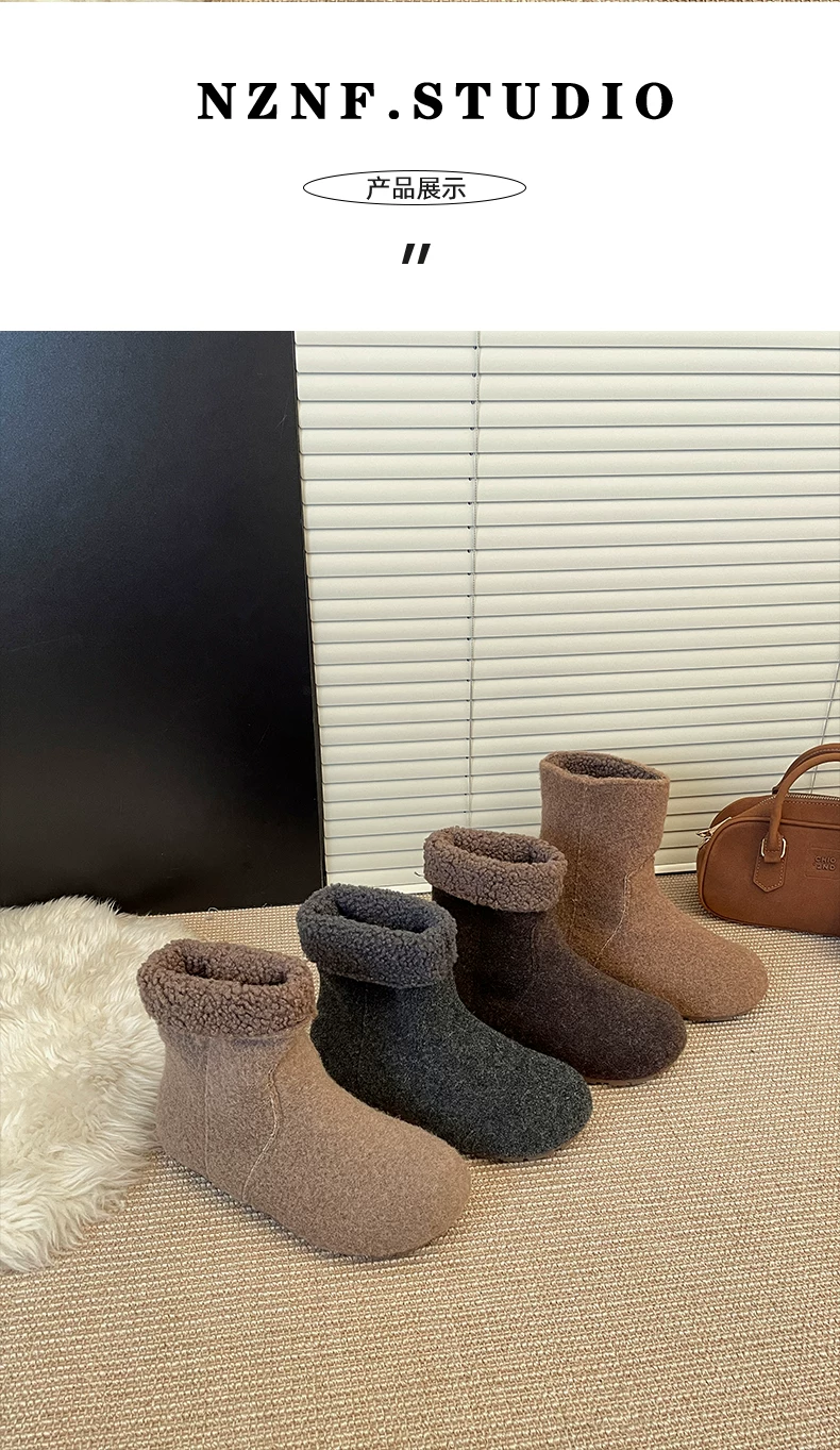 Giày bốt đi tuyết chống trượt dày dặn, lót lông cừu màu xám, đế dày dành cho nữ, kiểu Birkenstock cổ điển, tăng chiều cao mùa đông 2025.