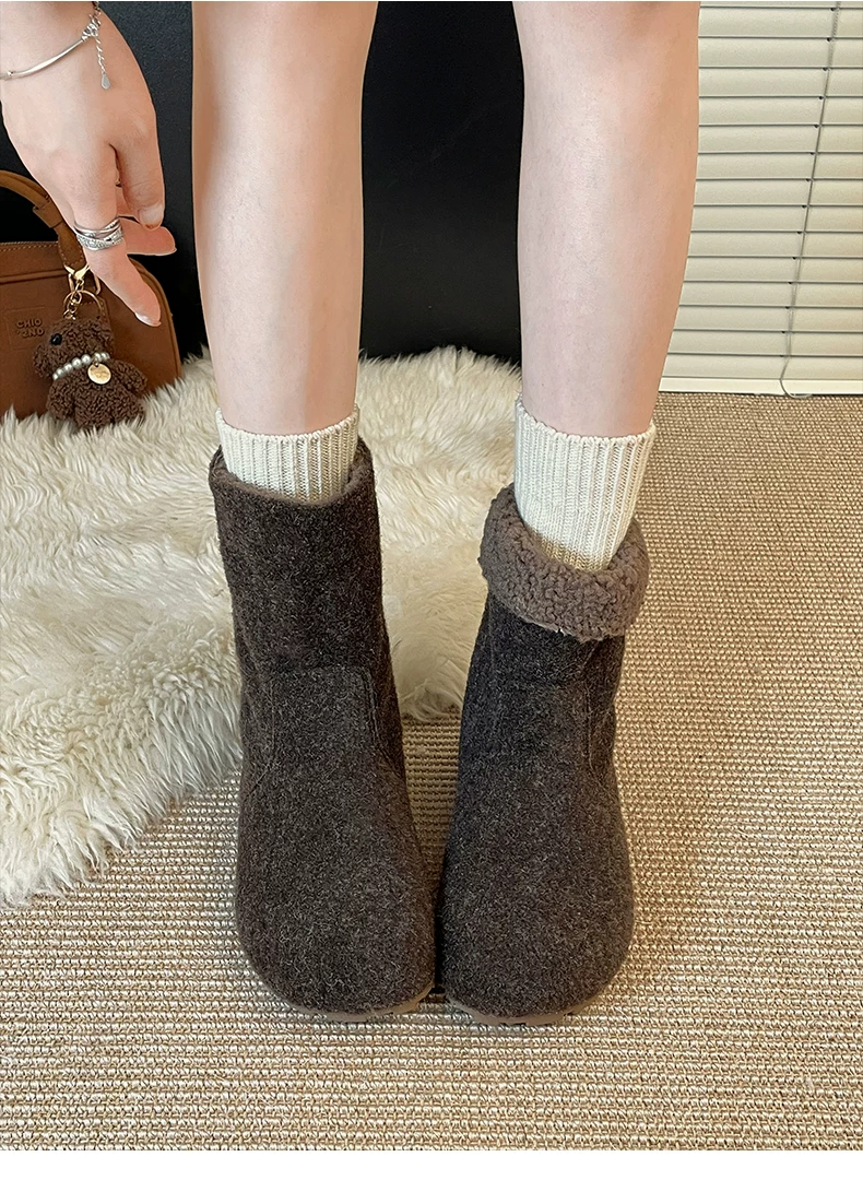 - Giày bốt đi tuyết chống trượt dày dặn, lót lông cừu màu xám, đế dày dành cho nữ, kiểu Birkenstock cổ điển, tăng chiều cao mùa đông 2025.