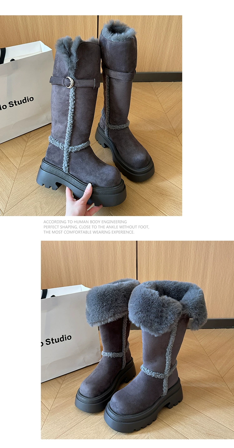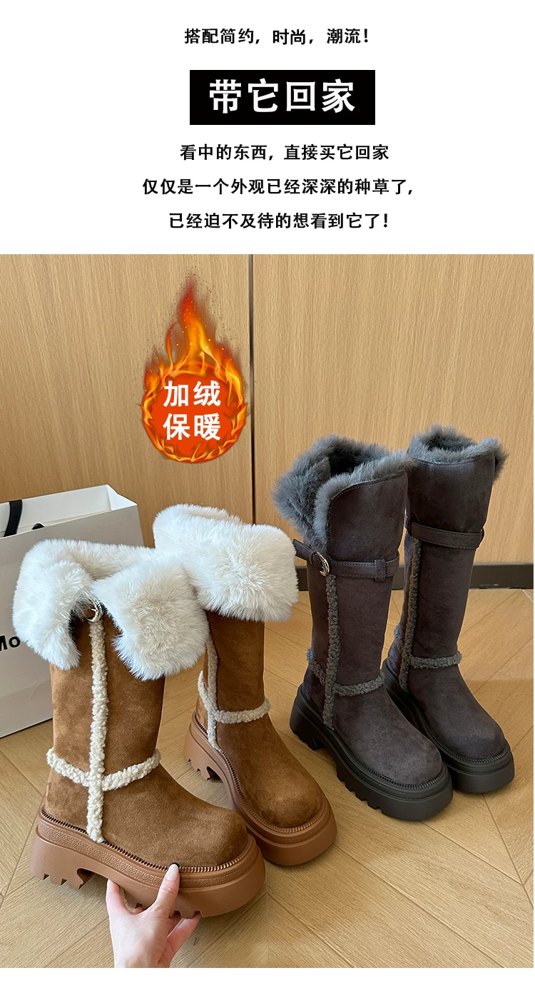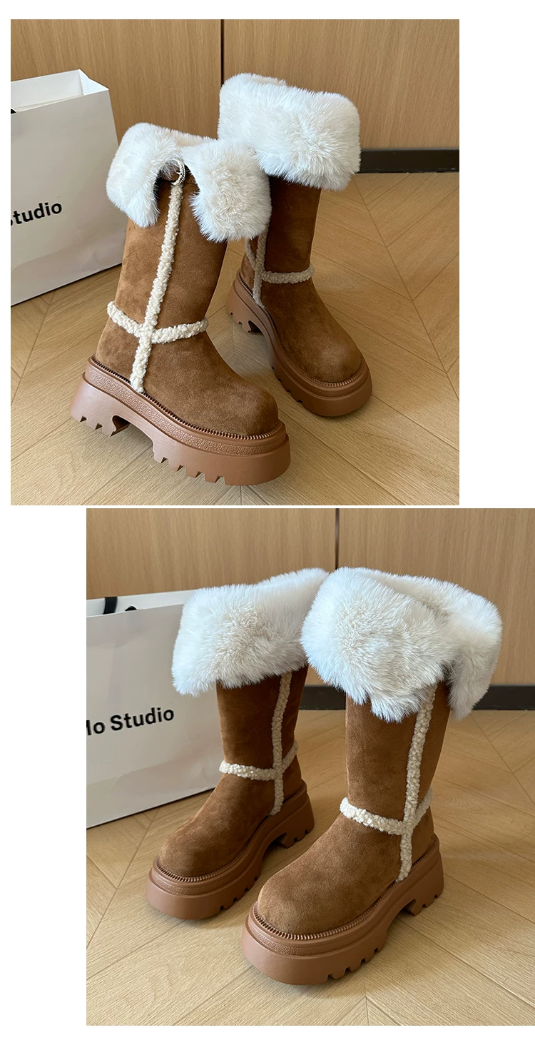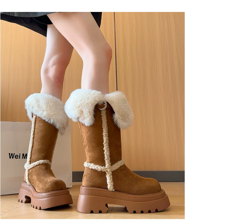 - Giày bốt đi tuyết dài có lót lông cừu, đế dày, chống trơn trượt, gót dày, dành cho nữ, kiểu dáng mùa đông mới 2025, tăng chiều cao, giày cotton ấm áp.