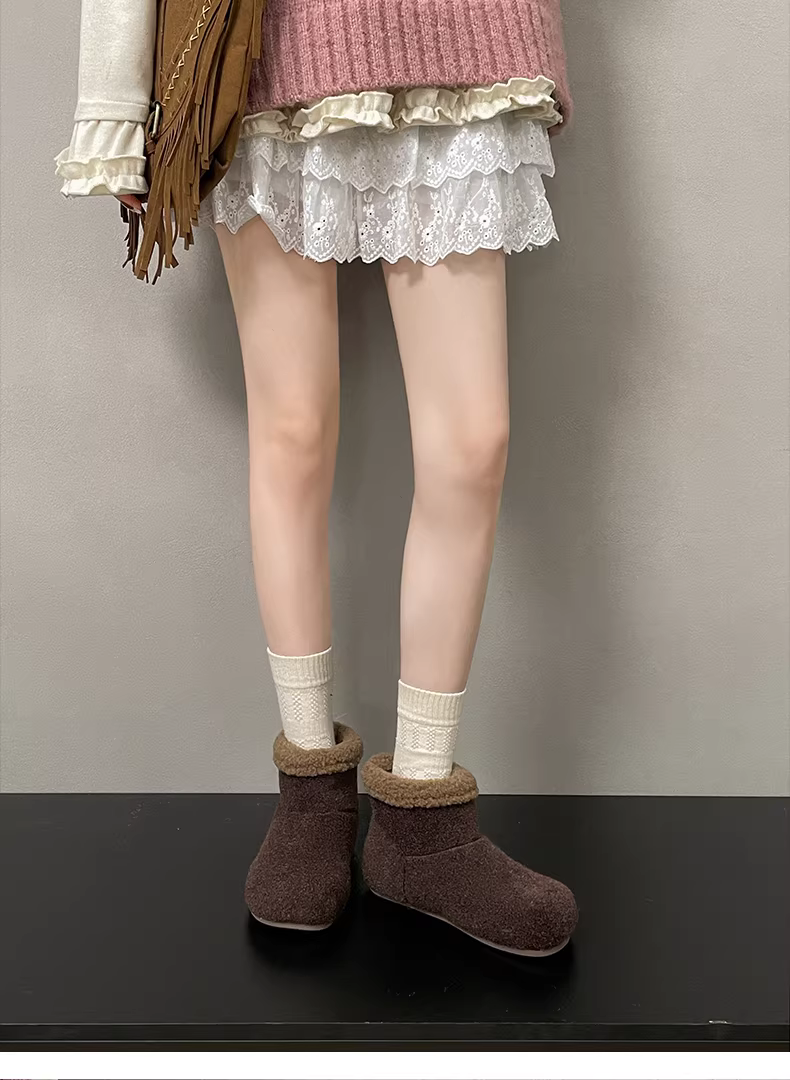 - Giày bốt đi tuyết đế dày ấm áp lót lông màu trắng dành cho nữ, giày cotton kiểu Birkenstock lông xù tăng chiều cao phong cách retro mùa đông mới 2025.