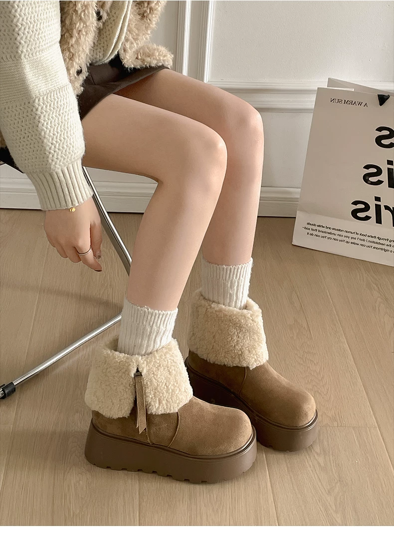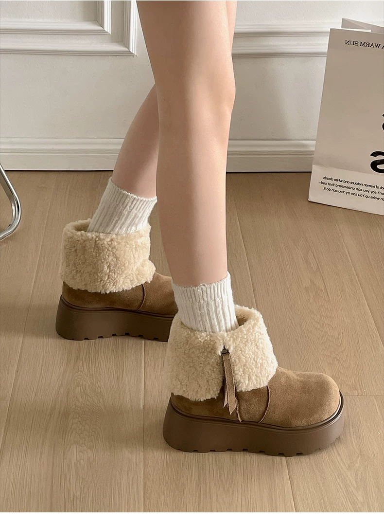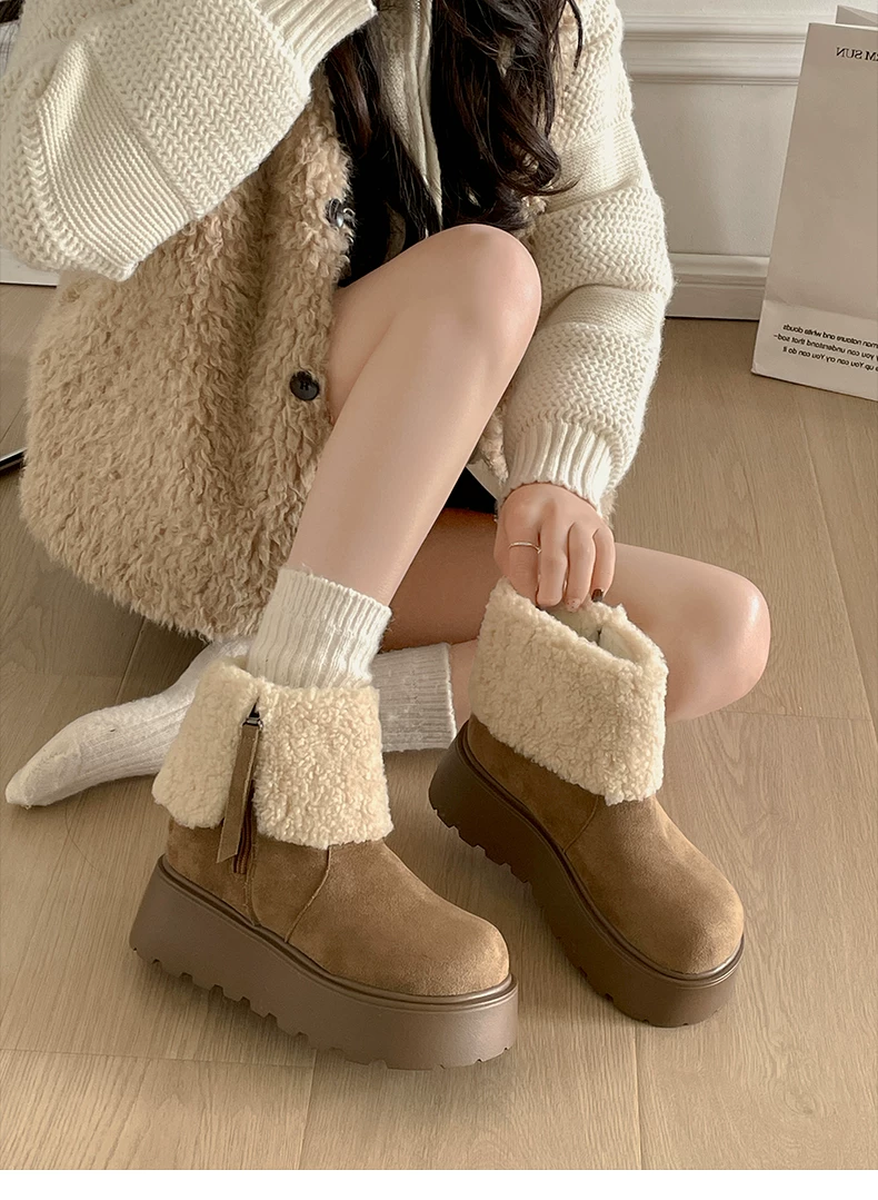 - Giày bốt đi tuyết đế dày chống trượt lót lông cừu màu kaki dành cho nữ, giày cotton kiểu Birkenstock lông thú mùa đông mới năm 2025.