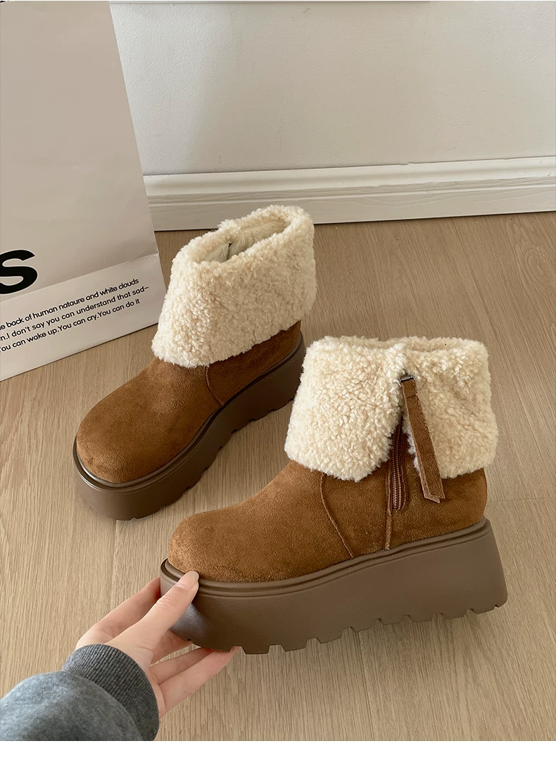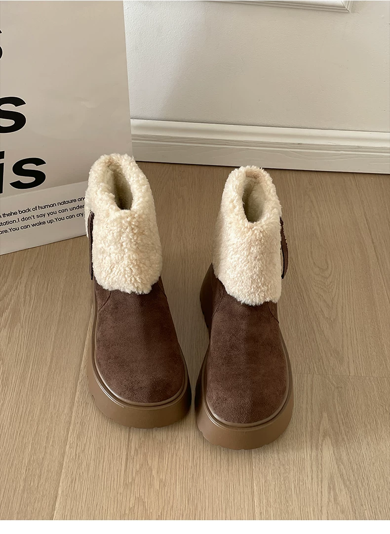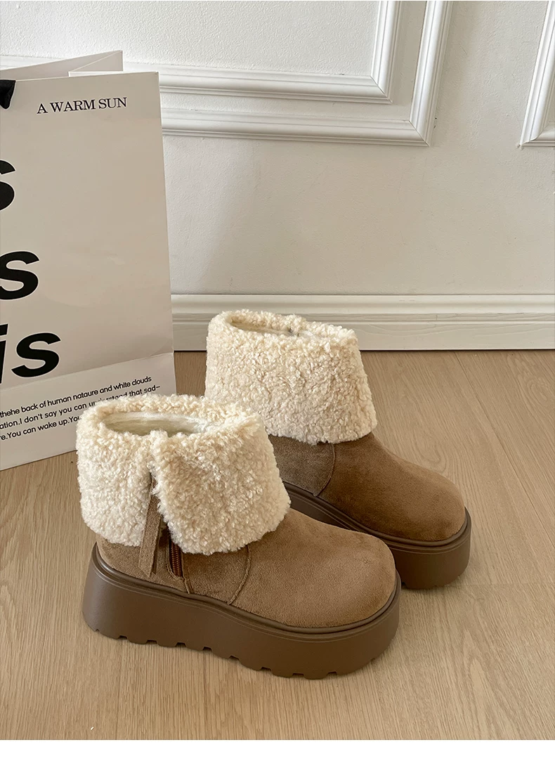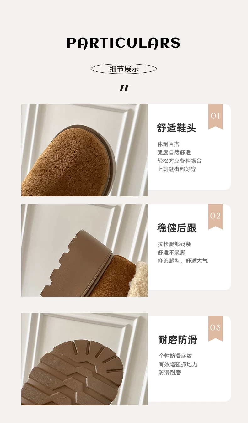 Giày bốt đi tuyết đế dày chống trượt lót lông cừu màu kaki dành cho nữ, giày cotton kiểu Birkenstock lông thú mùa đông mới năm 2025.