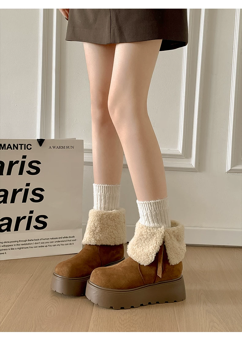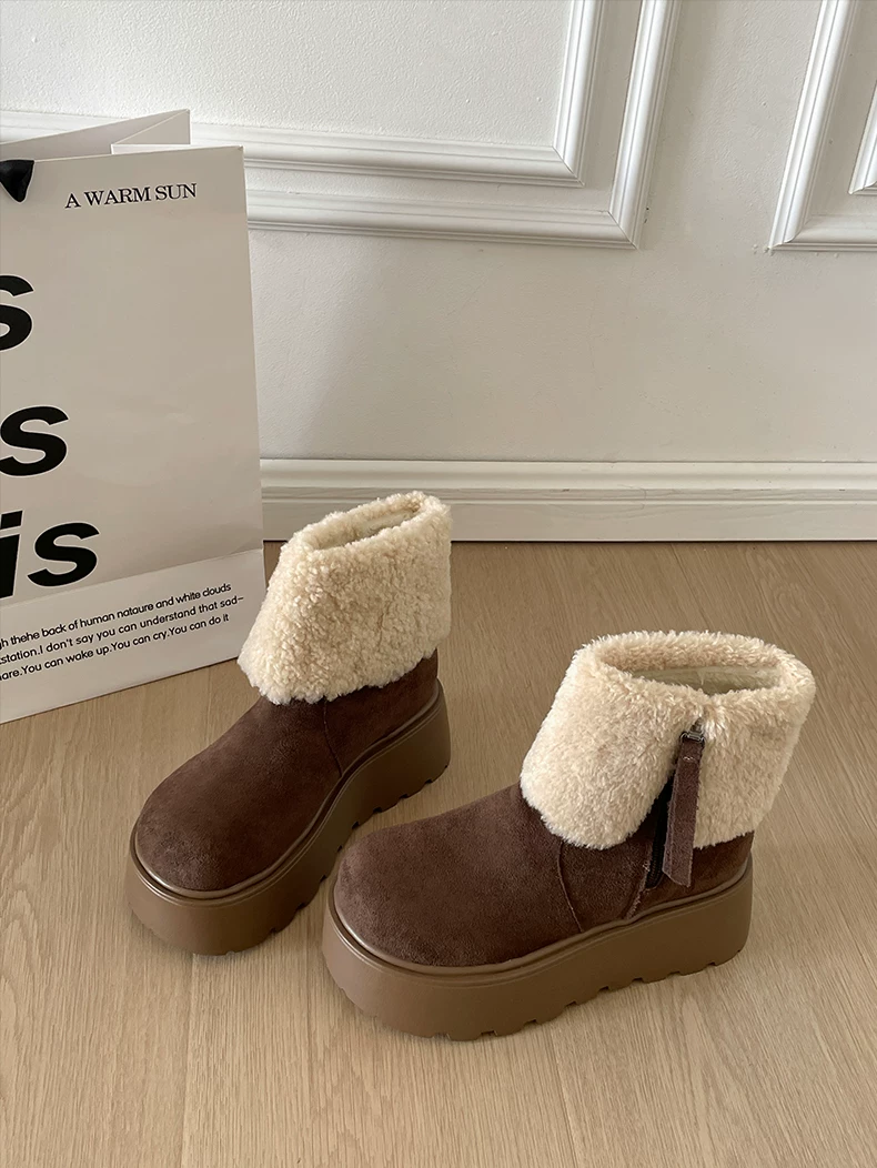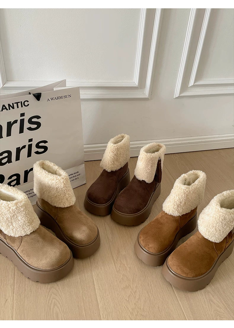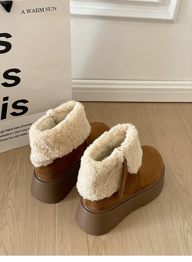Giày bốt đi tuyết đế dày chống trượt lót lông cừu màu kaki dành cho nữ, giày cotton kiểu Birkenstock lông thú mùa đông mới năm 2025.