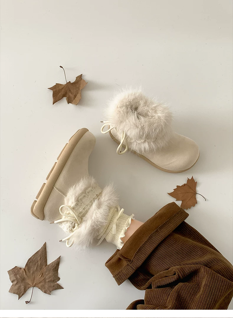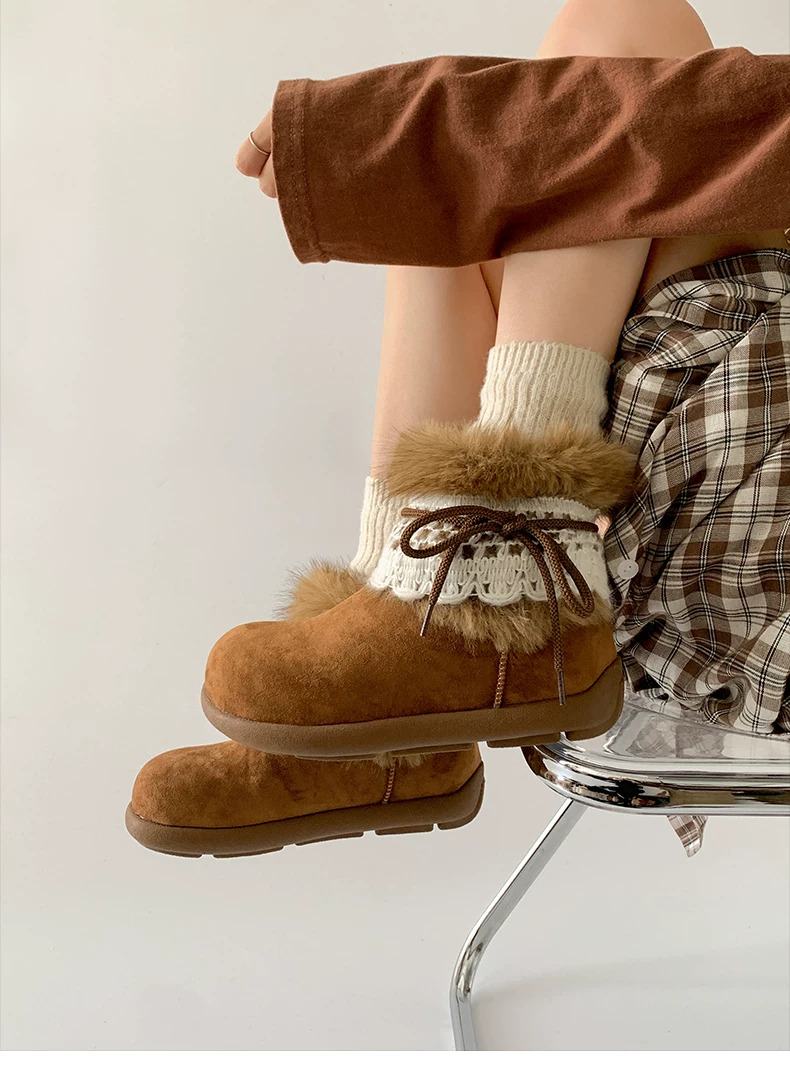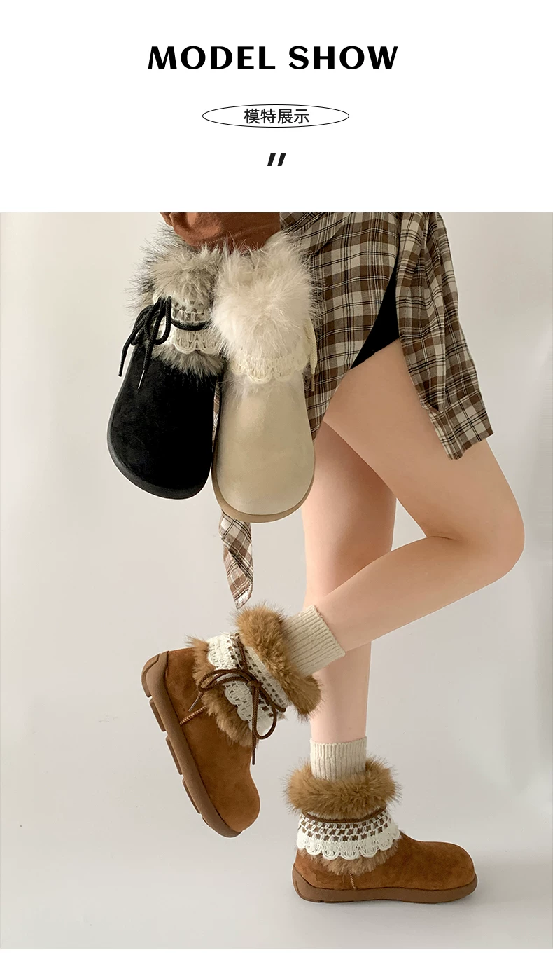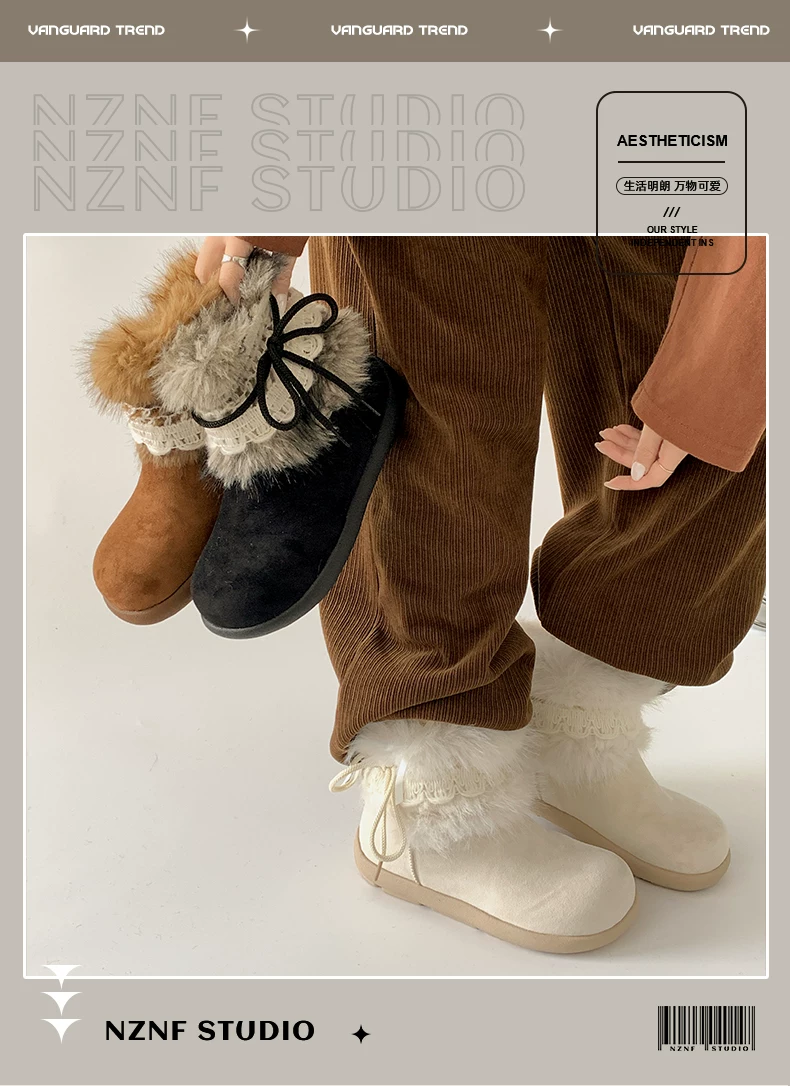 • Giày bốt đi tuyết đế dày lót lông cừu dày màu trắng Nanzai Nanzhou dành cho nữ, giày cotton lông ấm áp mùa đông mới 2025.