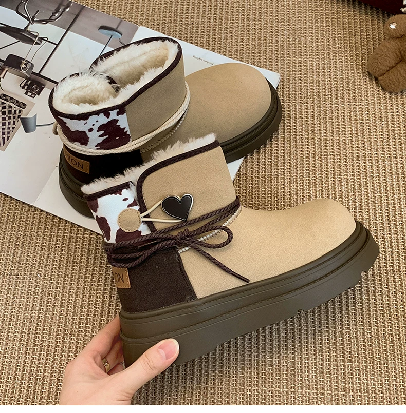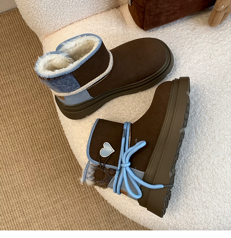 Giày bốt đi tuyết đế dày màu nâu Nam Trung Quốc dành cho nữ 2025 Giày cotton đi tuyết ấm áp lót lông cừu mùa đông mới.