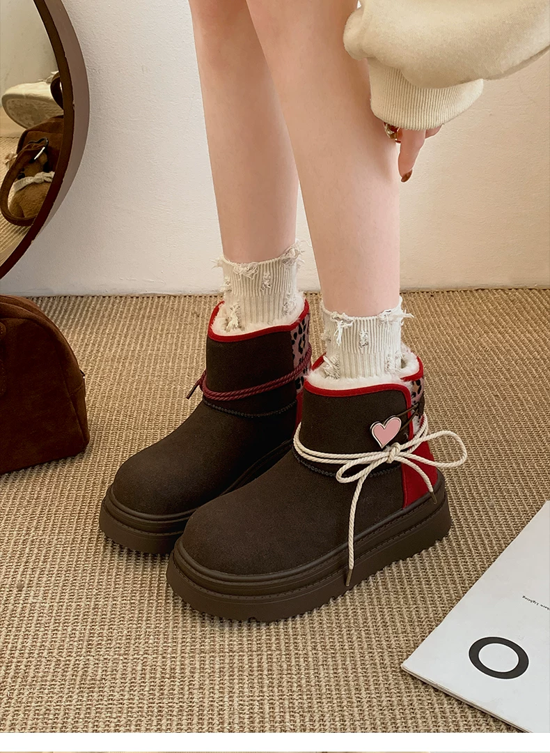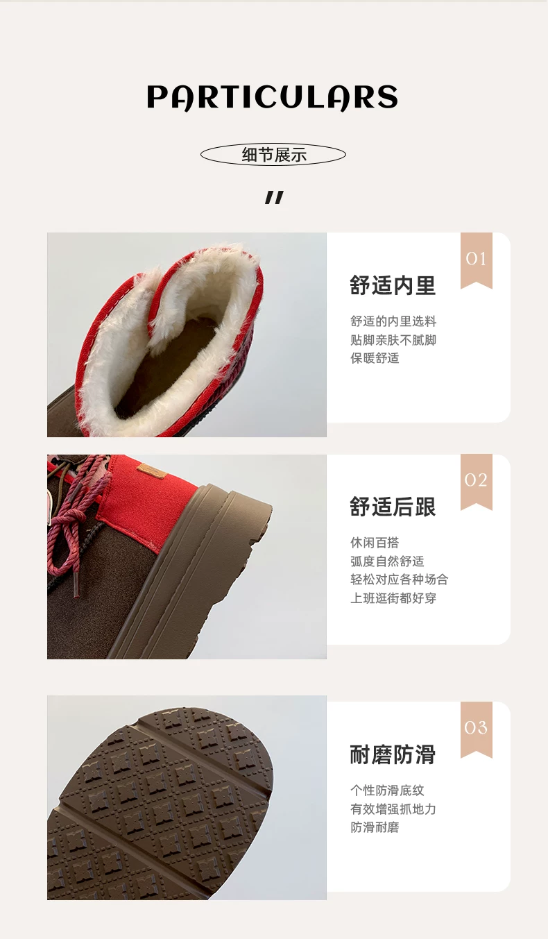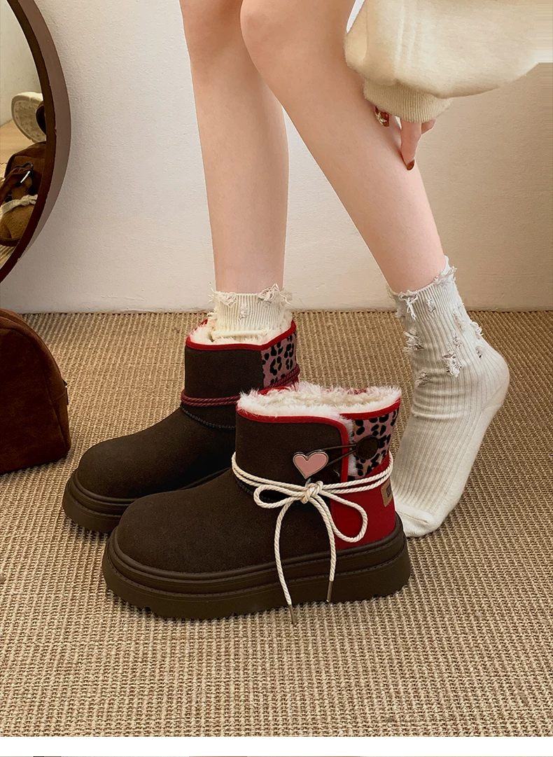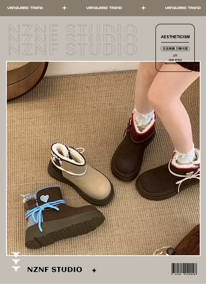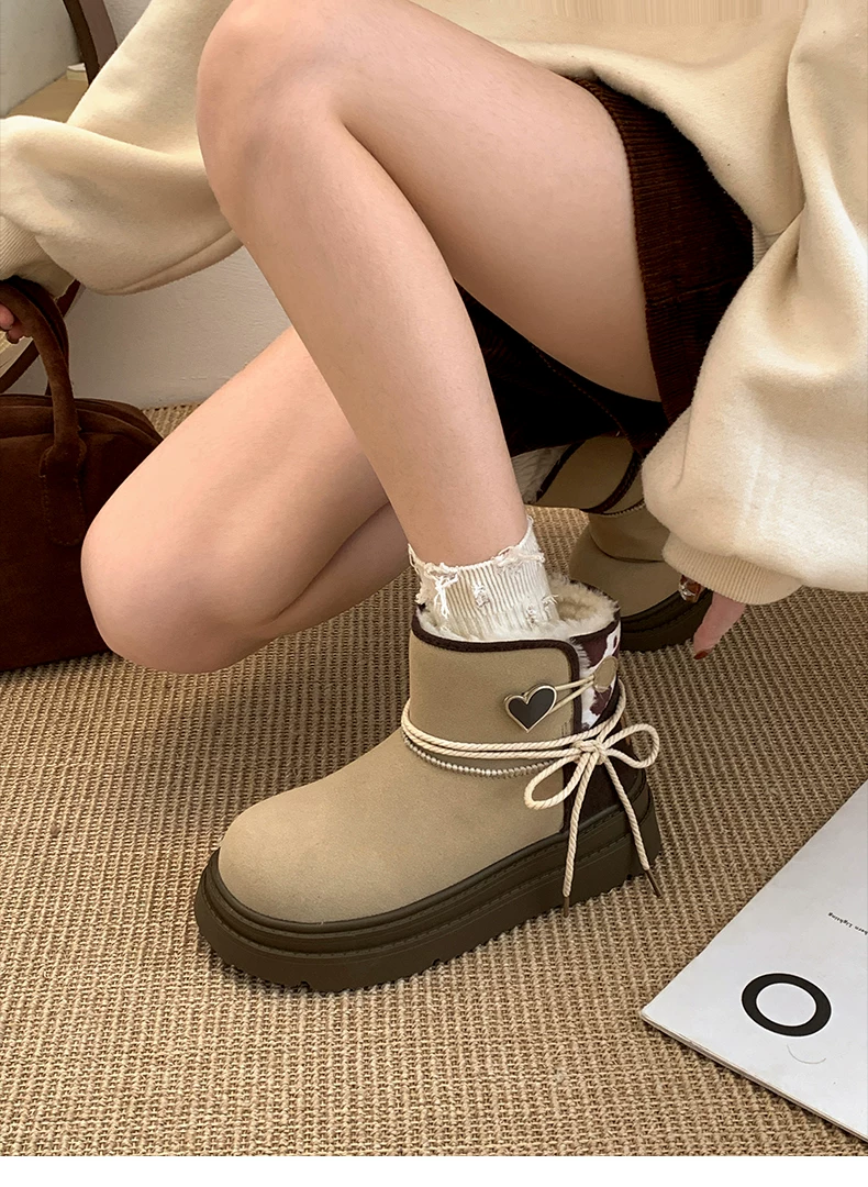 - Giày bốt đi tuyết đế dày màu nâu Nam Trung Quốc dành cho nữ 2025 Giày cotton đi tuyết ấm áp lót lông cừu mùa đông mới.