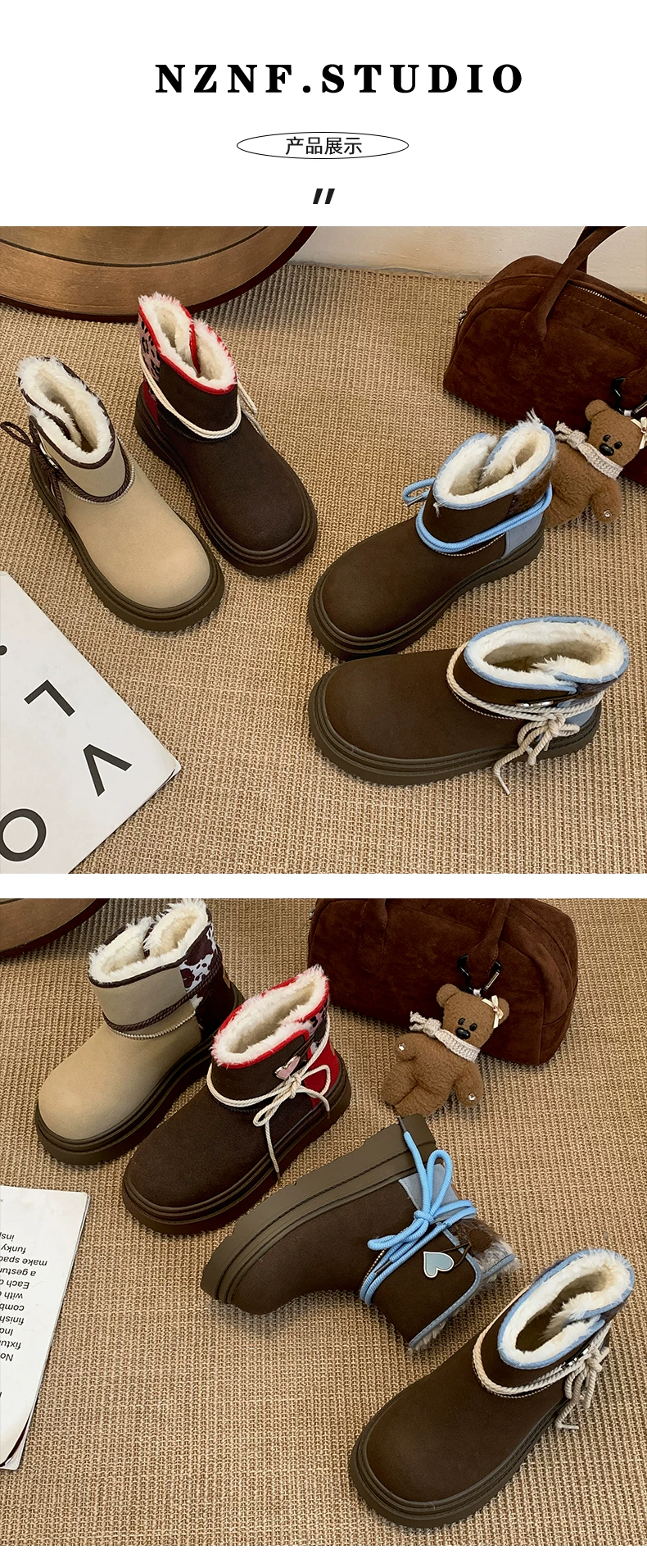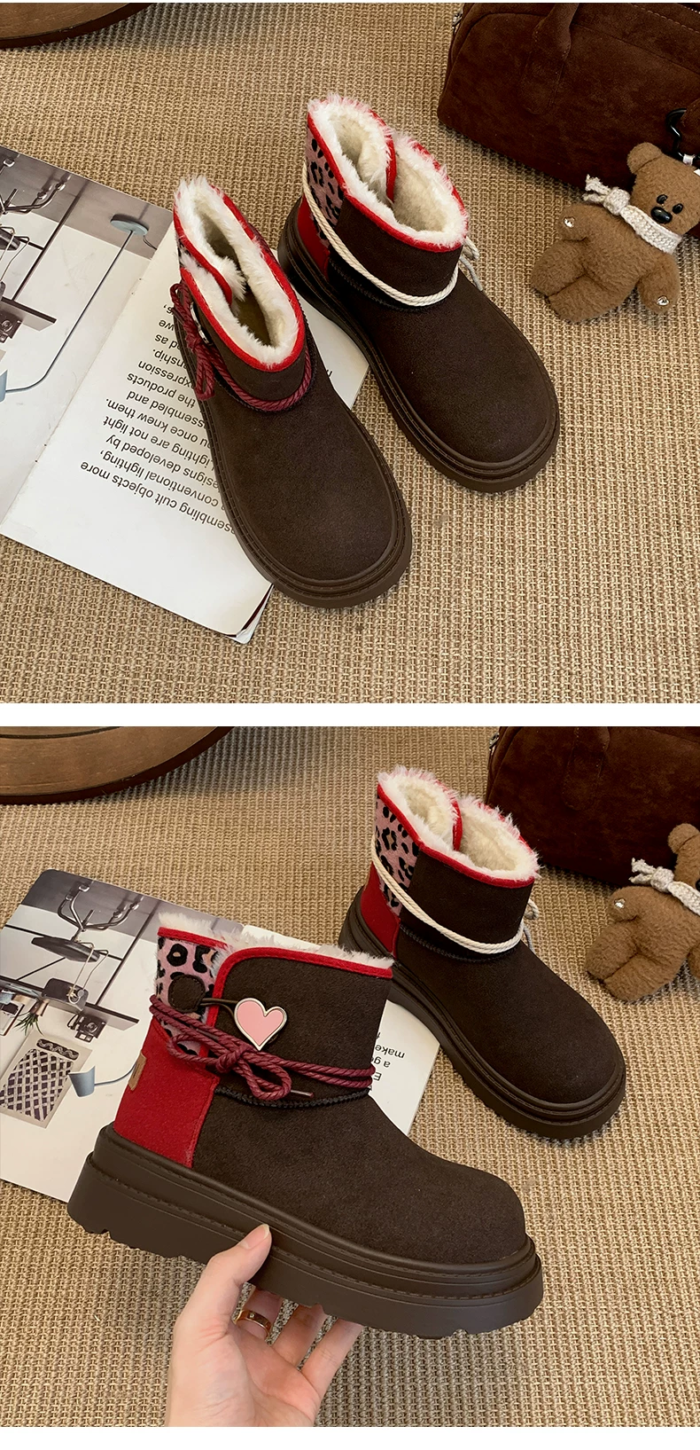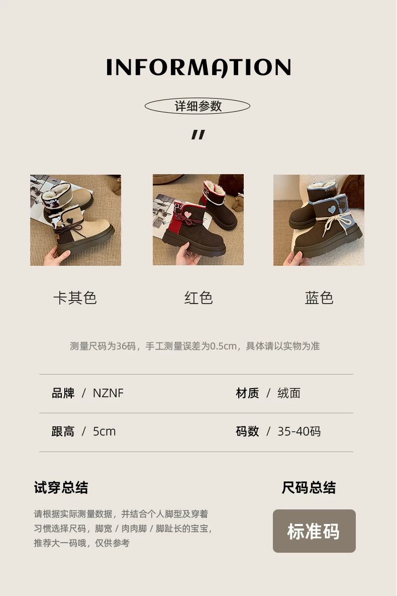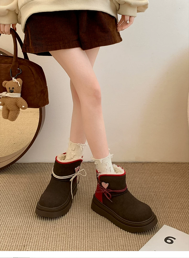 - Giày bốt đi tuyết đế dày màu nâu Nam Trung Quốc dành cho nữ 2025 Giày cotton đi tuyết ấm áp lót lông cừu mùa đông mới.
