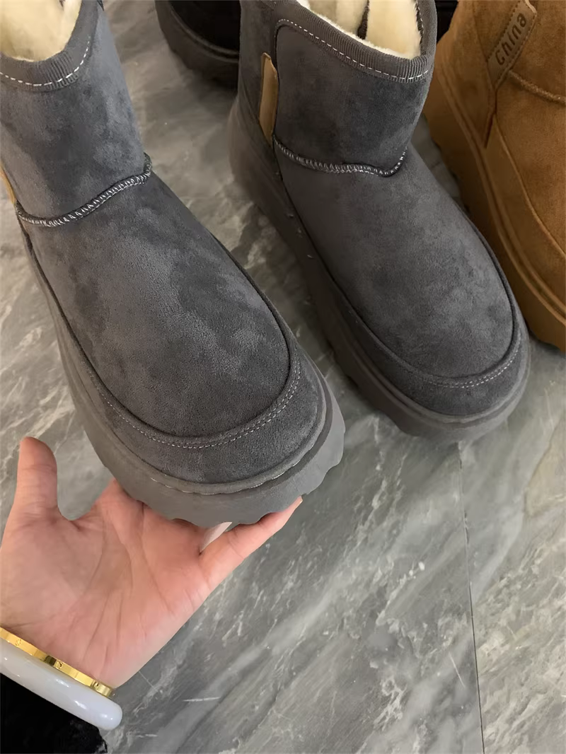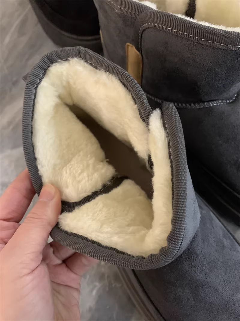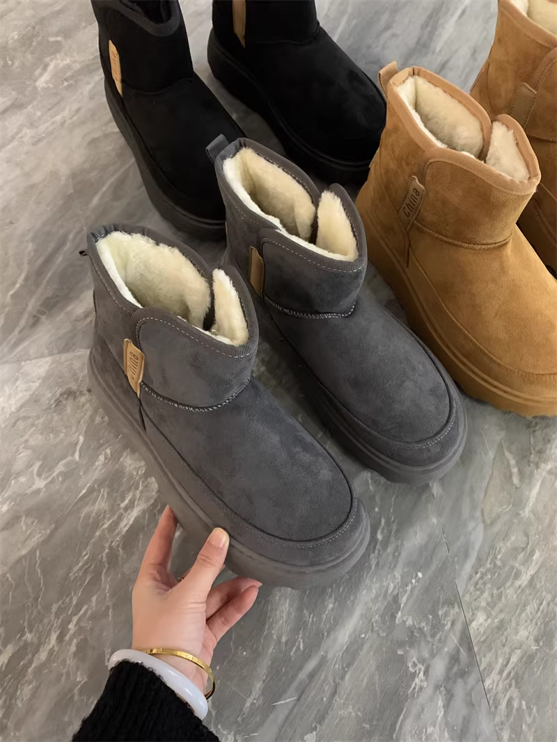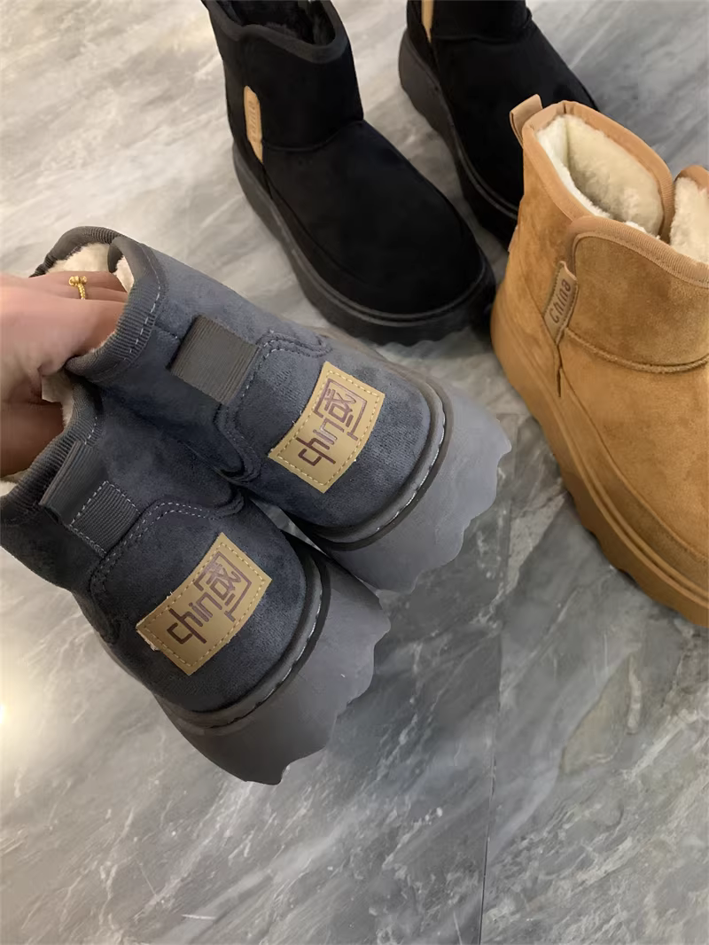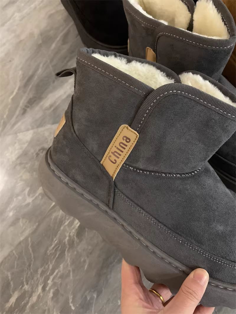 - Giày bốt đi tuyết lót lông cừu đa năng Don Quixote! Giày bốt đi tuyết lót lông cừu dày dặn cao cổ màu trơn cho nam mùa thu đông, giày cotton thời trang