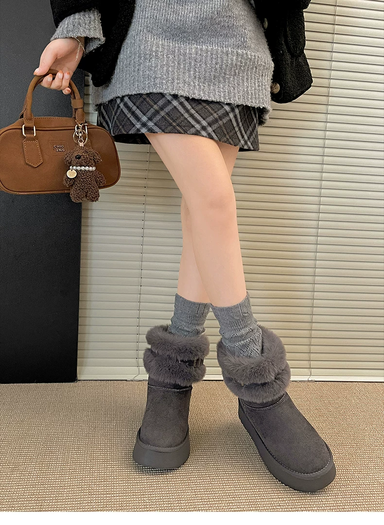 Giày bốt đi tuyết lót lông, đế dày, chống trơn trượt, có lông mềm mại dành cho nữ, kiểu Birkenstock, giữ ấm mùa đông 2025.