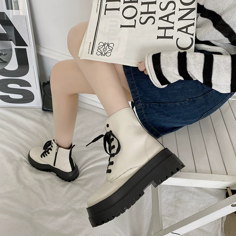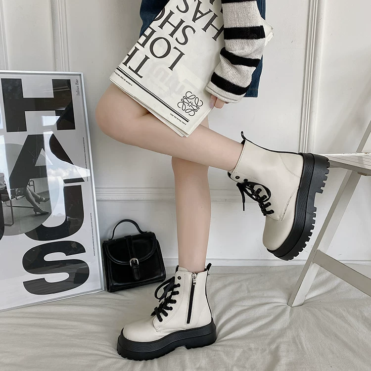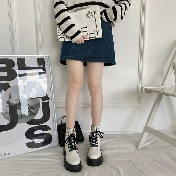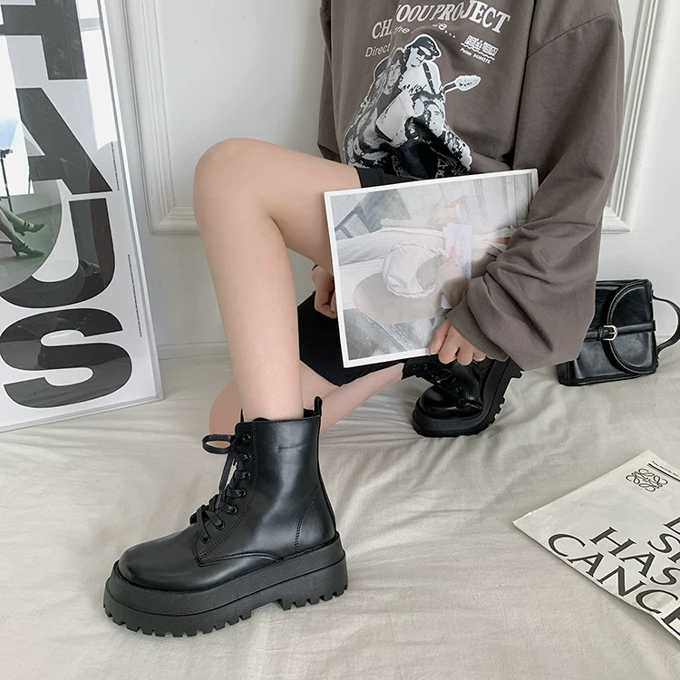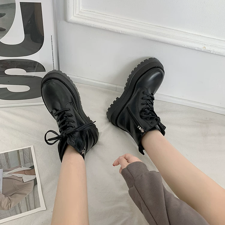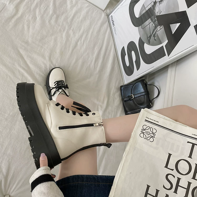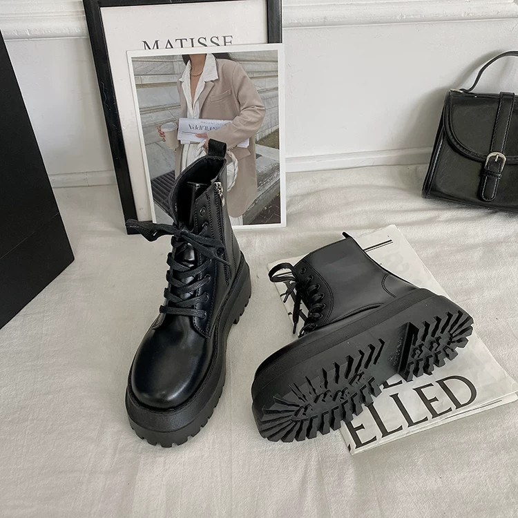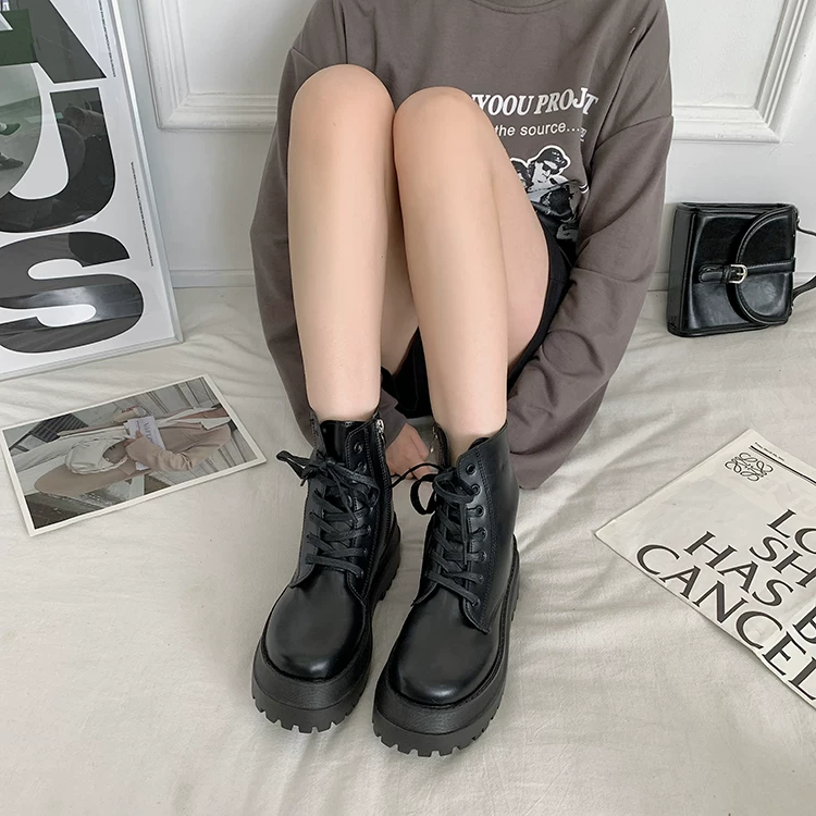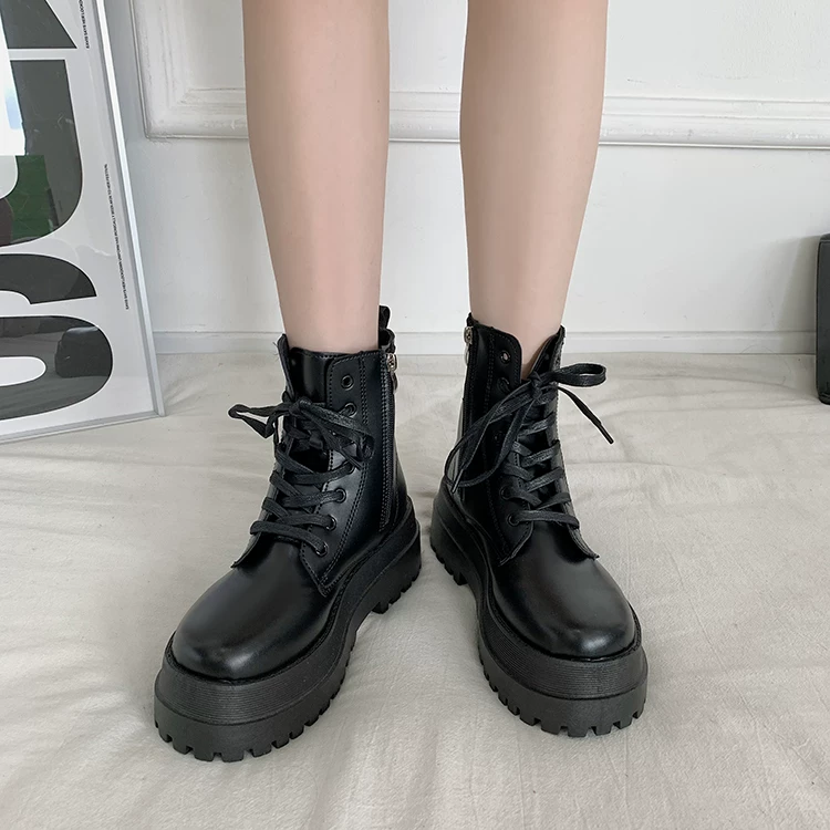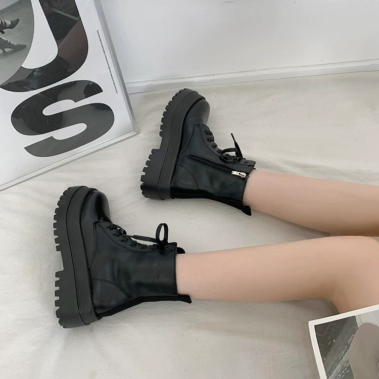 - Giày bốt Martin đế dày 2025 dành cho nữ, kiểu buộc dây, tăng chiều cao, dành cho người nhỏ nhắn, phong cách Anh quốc mùa thu đông, kiểu dáng ôm sát mắt cá chân.