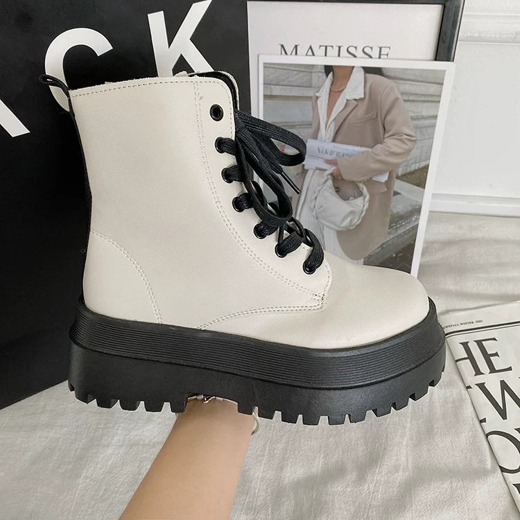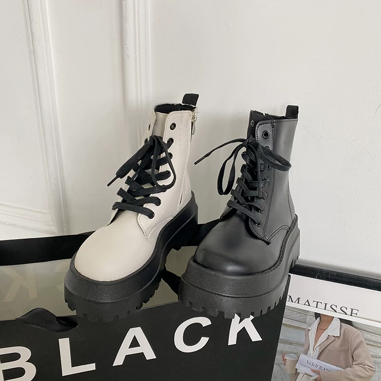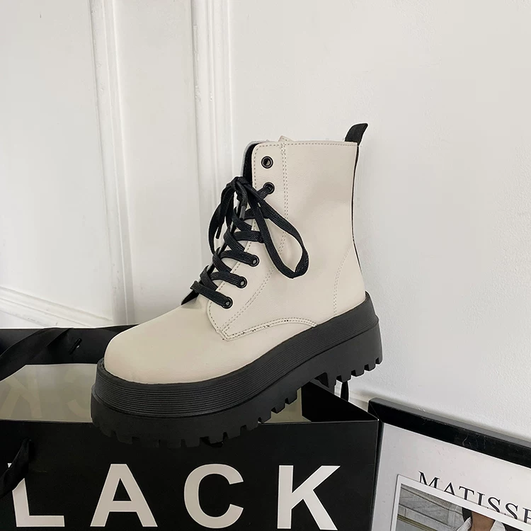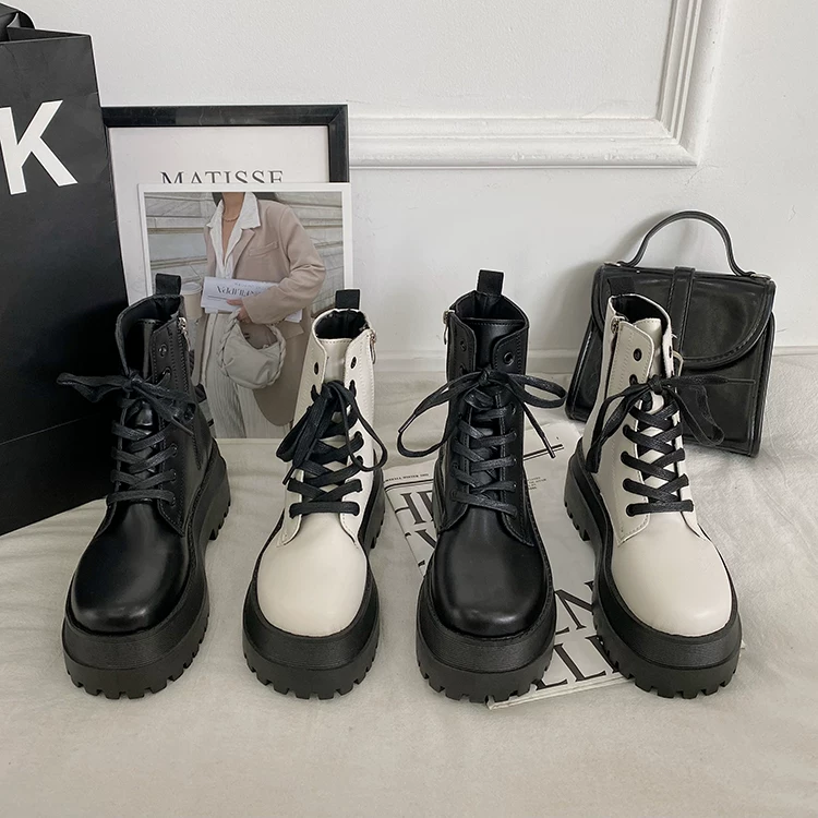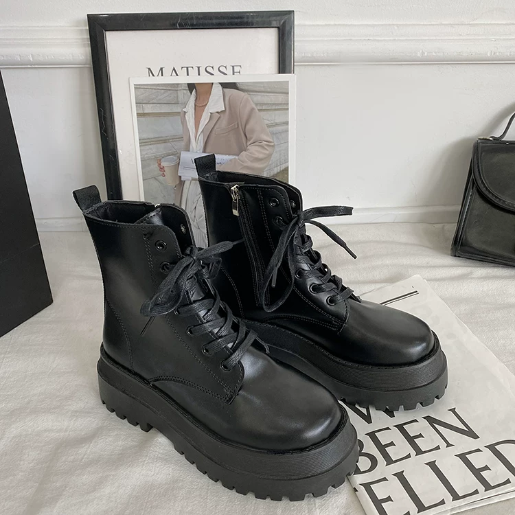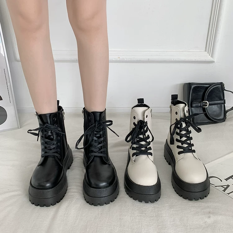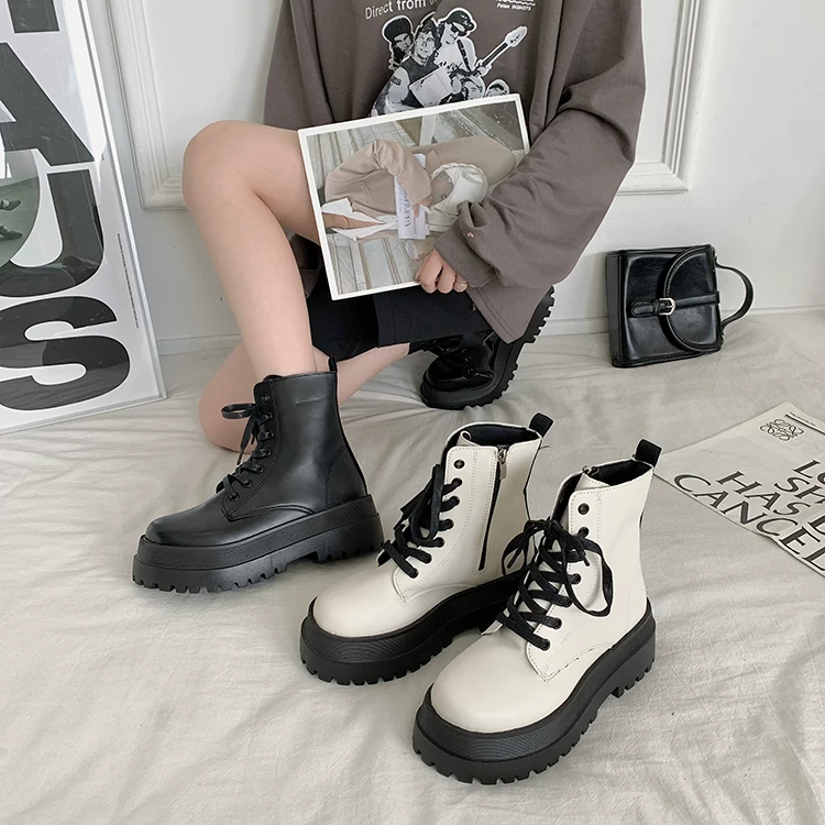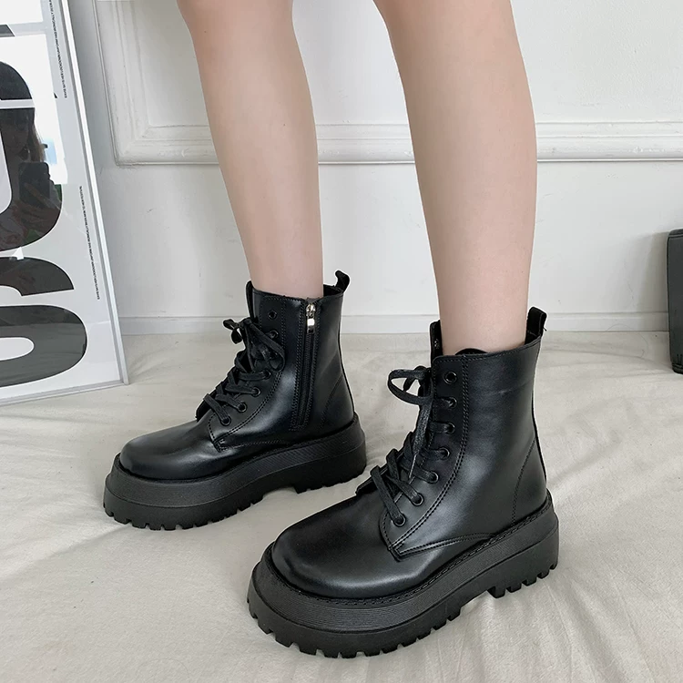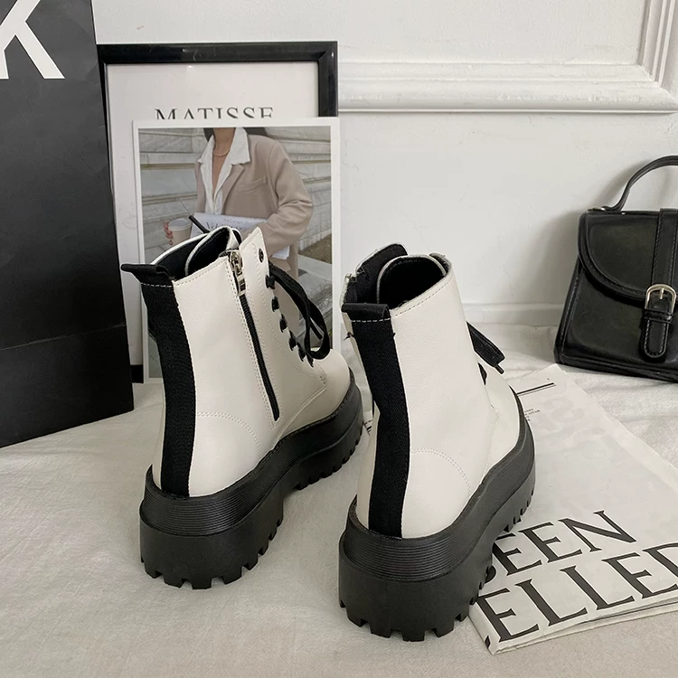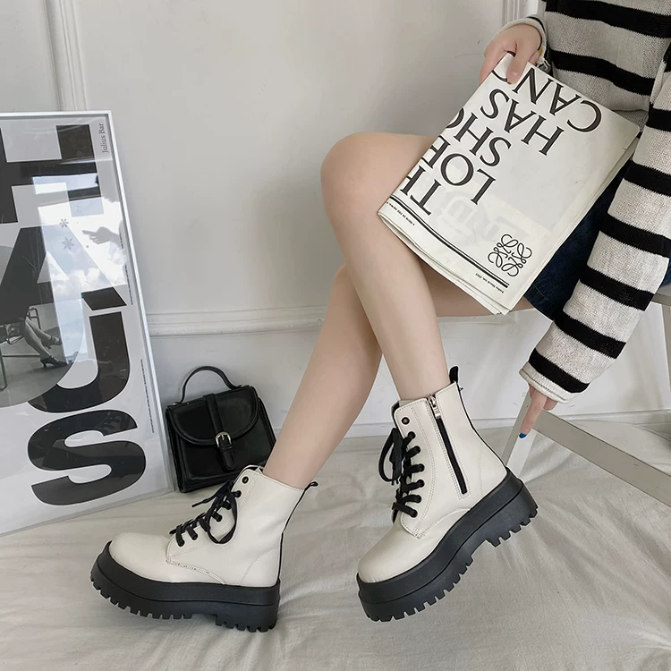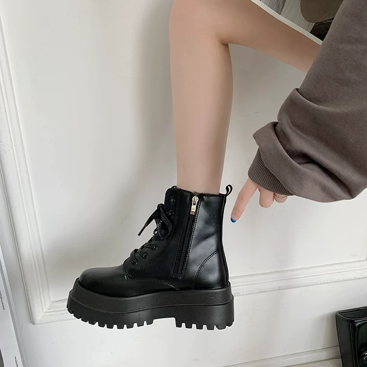 - Giày bốt Martin đế dày 2025 dành cho nữ, kiểu buộc dây, tăng chiều cao, dành cho người nhỏ nhắn, phong cách Anh quốc mùa thu đông, kiểu dáng ôm sát mắt cá chân.
