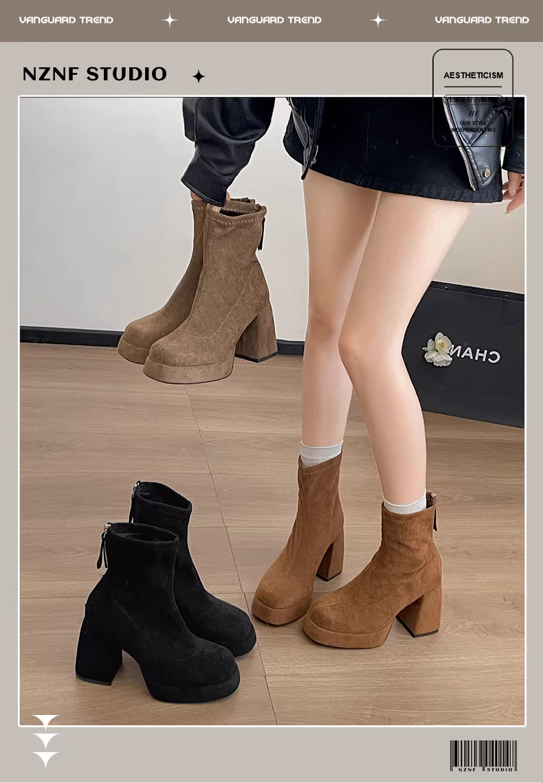 - Giày bốt ngắn nữ có gót cao dày, giúp bạn trông cao và thon gọn hơn, kiểu dáng retro thu đông 2025 mới, phối cùng chân váy, lót lông cừu, kiểu Birkenstock.