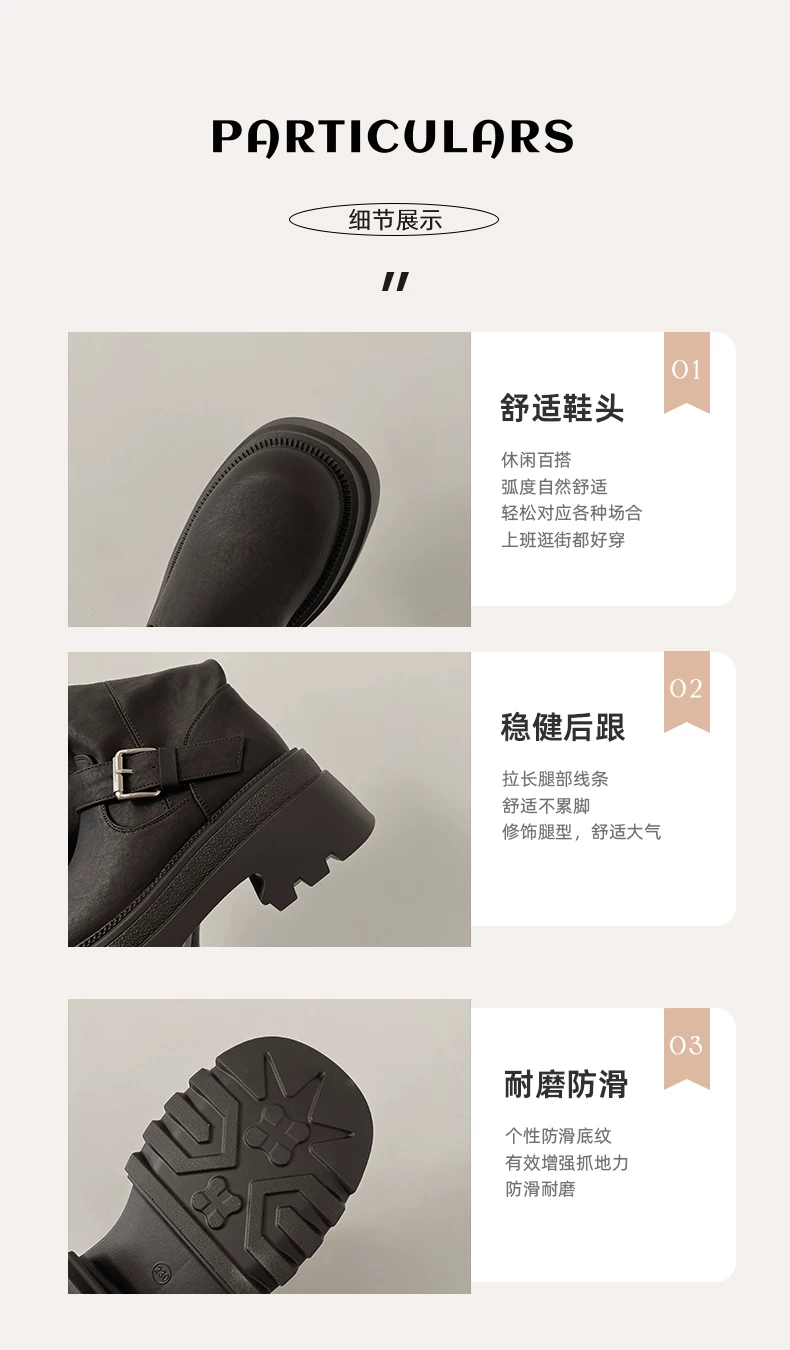 - Giày bốt nữ cao đến đầu gối đế xuồng chunky màu đen, kiểu dáng mới thu đông 2025, tôn dáng, tăng chiều cao, phong cách retro, kiểu dáng đi xe.