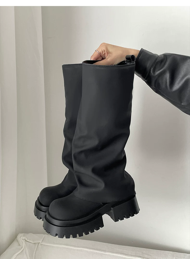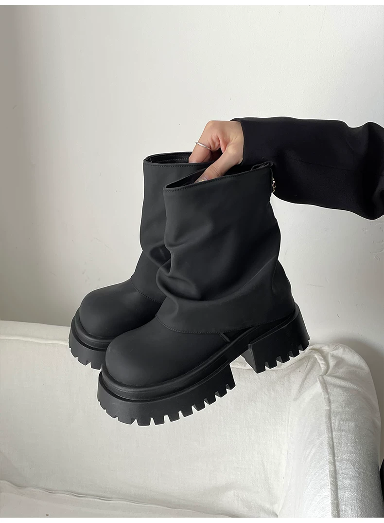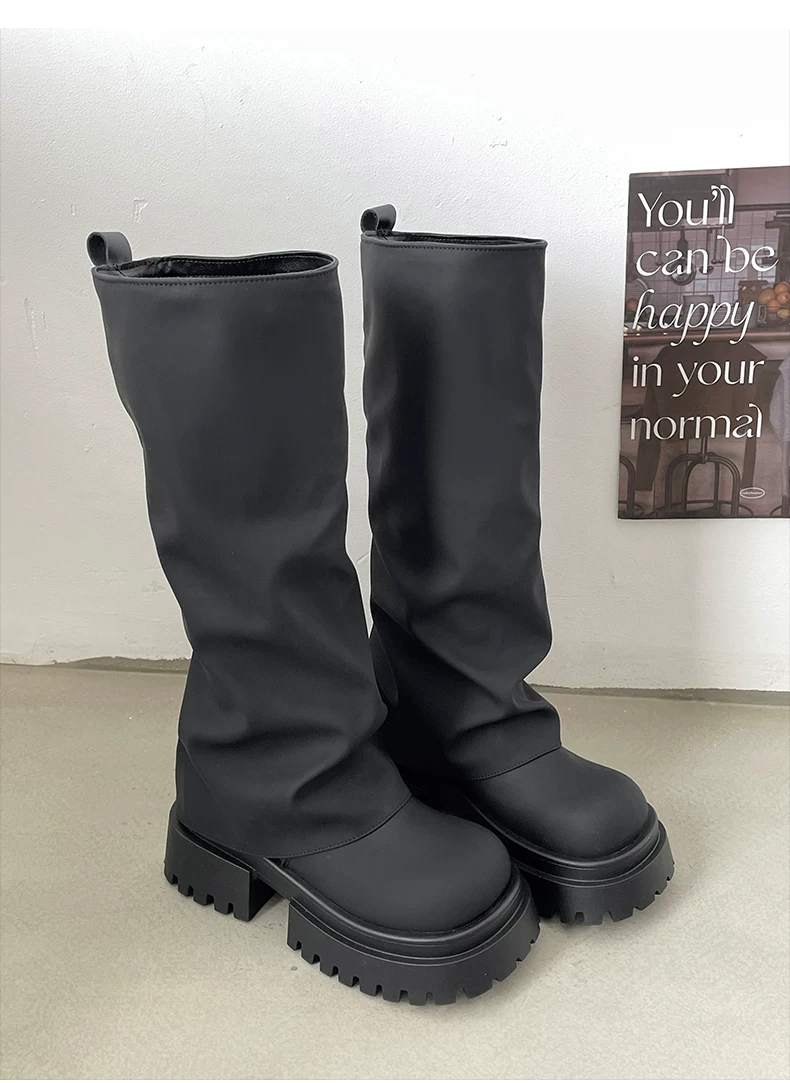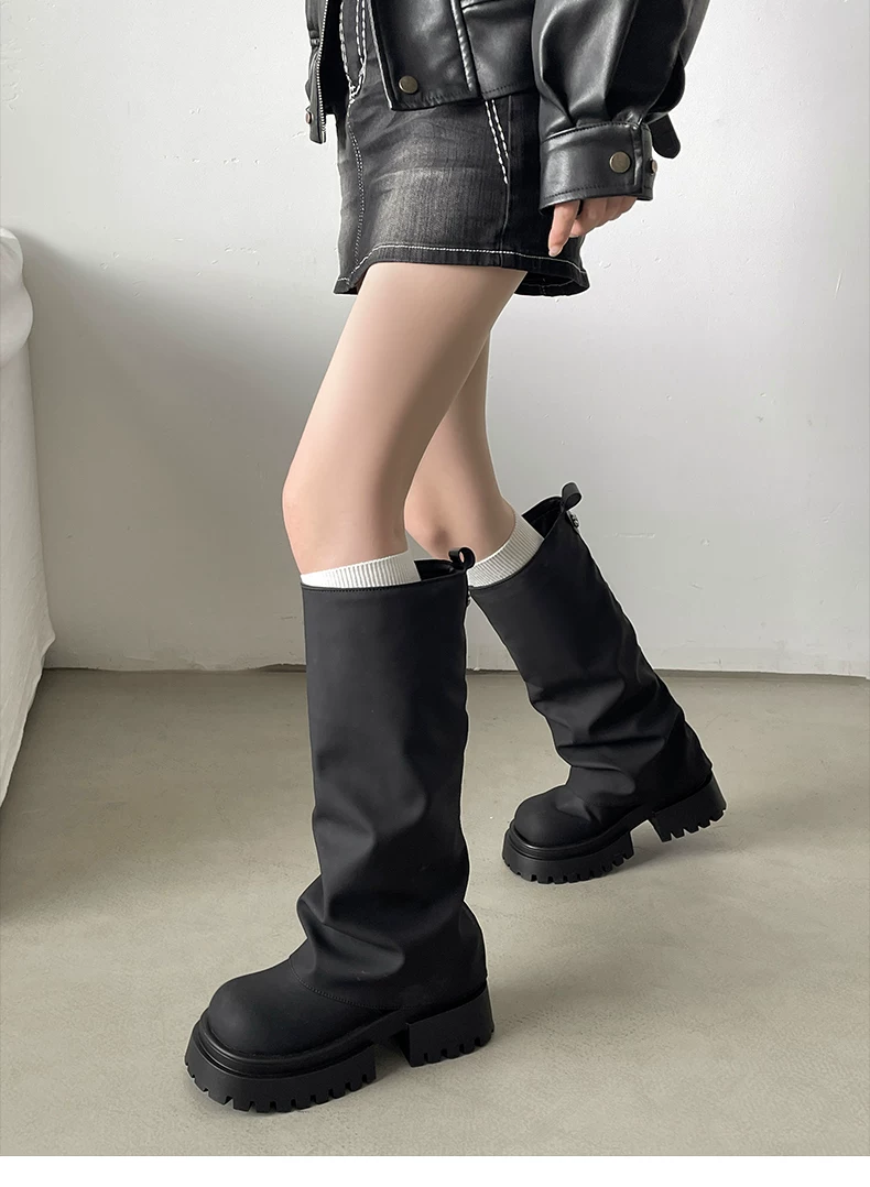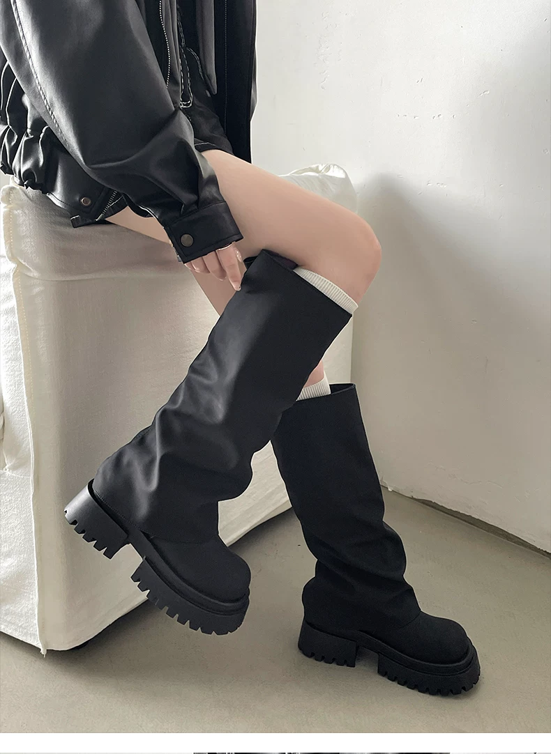 - Giày bốt nữ đế dày cổ điển màu đen, kiểu dáng chunky heel, dài đến mắt cá chân, mẫu mới thu đông 2025, phối cùng chân váy, quần ôm dáng, giày cưỡi ngựa.