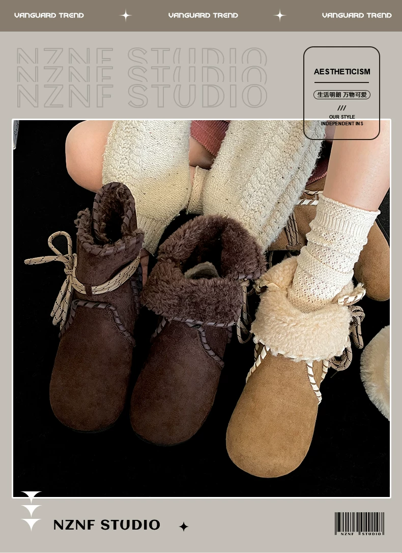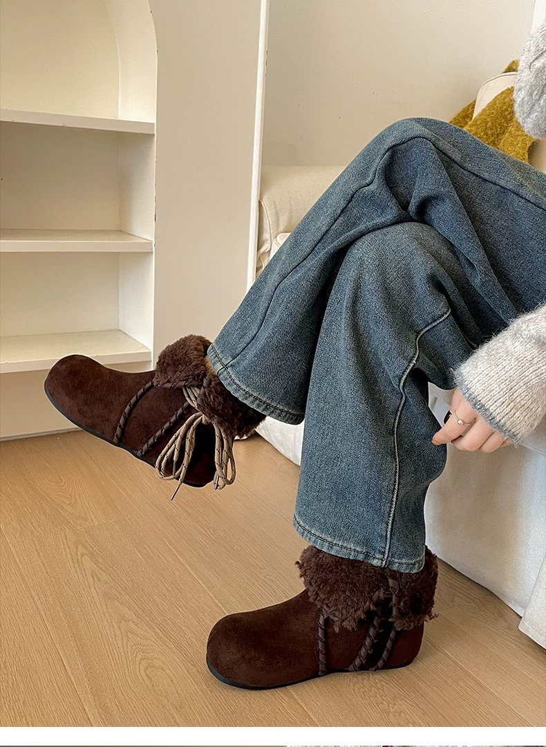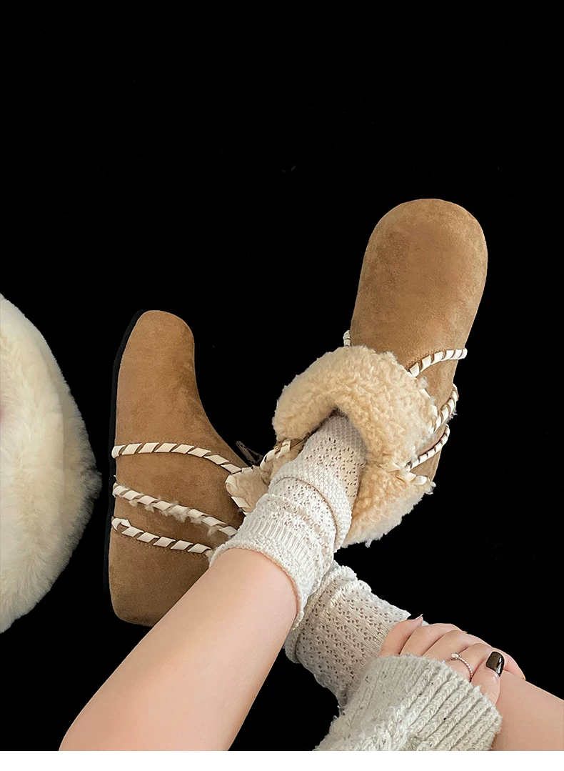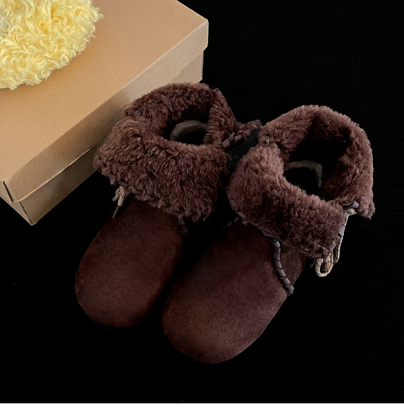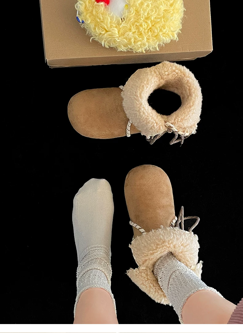 Giày bốt nữ mùa đông 2025 kiểu Birkenstock, lót lông cừu, đế dày chống trơn, giữ ấm, chất liệu cotton dày dặn, màu kaki, dành cho hoạt động ngoài trời