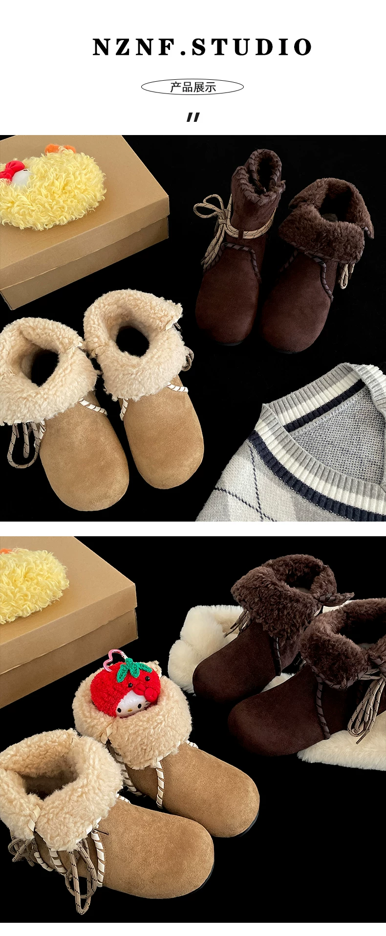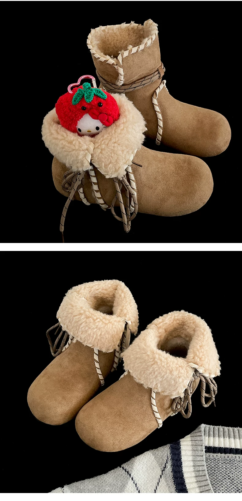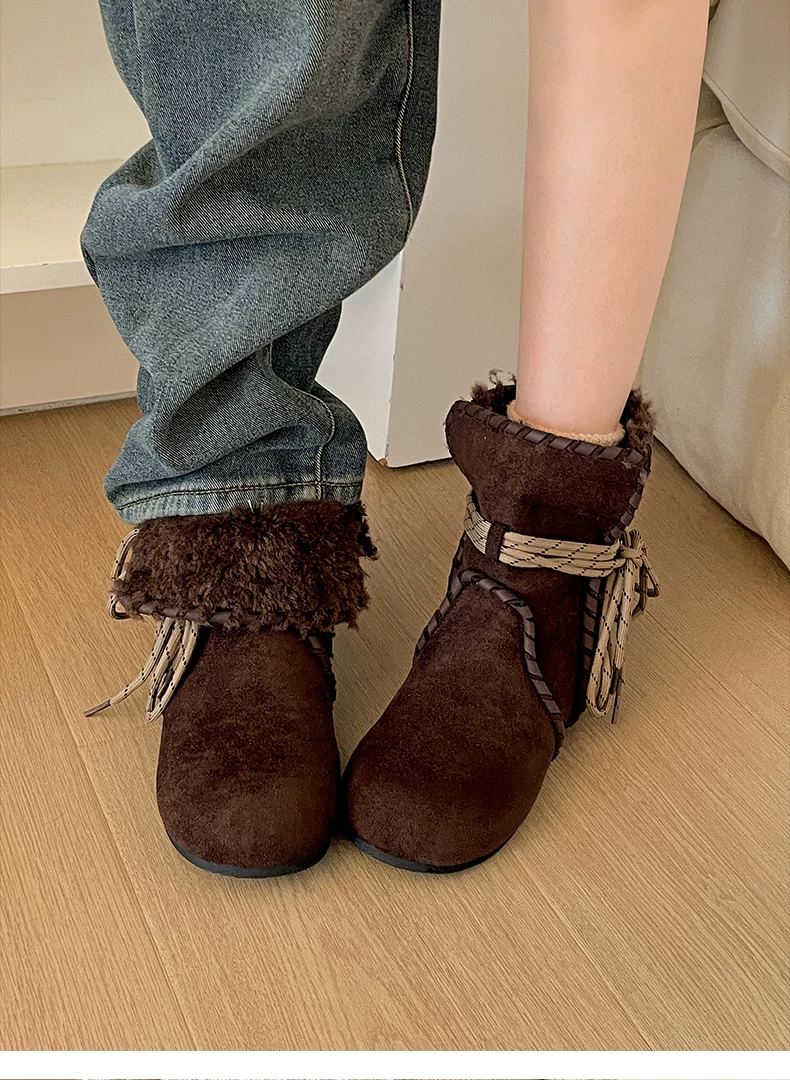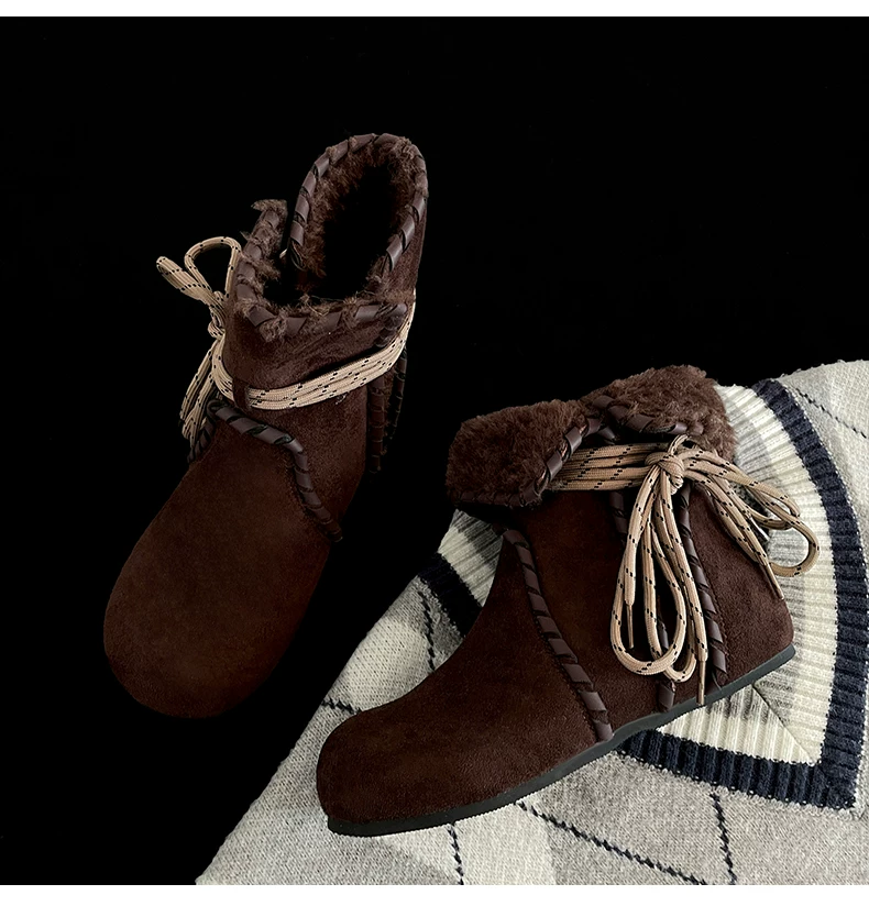 Giày bốt nữ mùa đông 2025 kiểu Birkenstock, lót lông cừu, đế dày chống trơn, giữ ấm, chất liệu cotton dày dặn, màu kaki, dành cho hoạt động ngoài trời