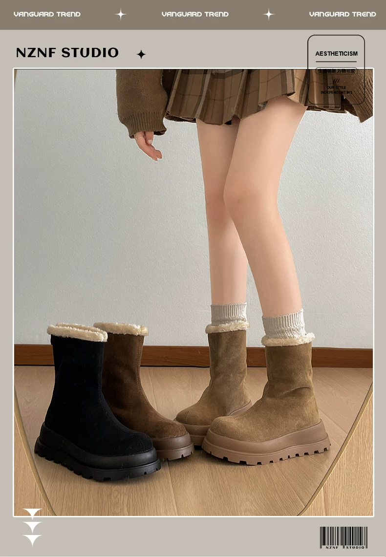 Giày bốt tuyết cổ điển đế dày lót lông cừu màu kaki dành cho nữ, giày cotton phong cách Birkenstock giữ ấm mùa đông mới năm 2025.