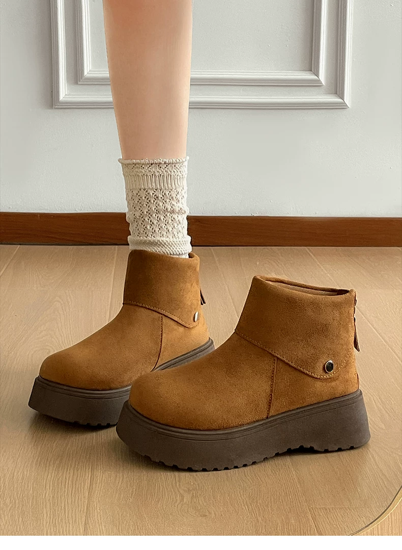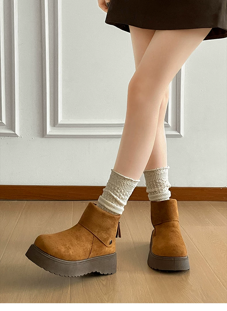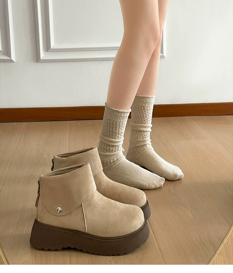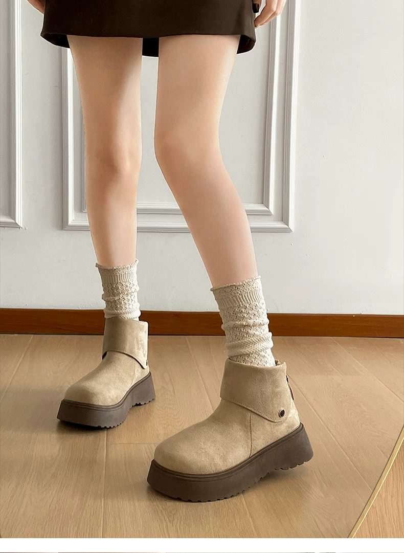 - Giày bốt tuyết đế dày chống trơn, kiểu cổ điển màu trắng dành cho nữ, giày bông giữ ấm kiểu Birkenstock tăng chiều cao mùa đông mới năm 2025.