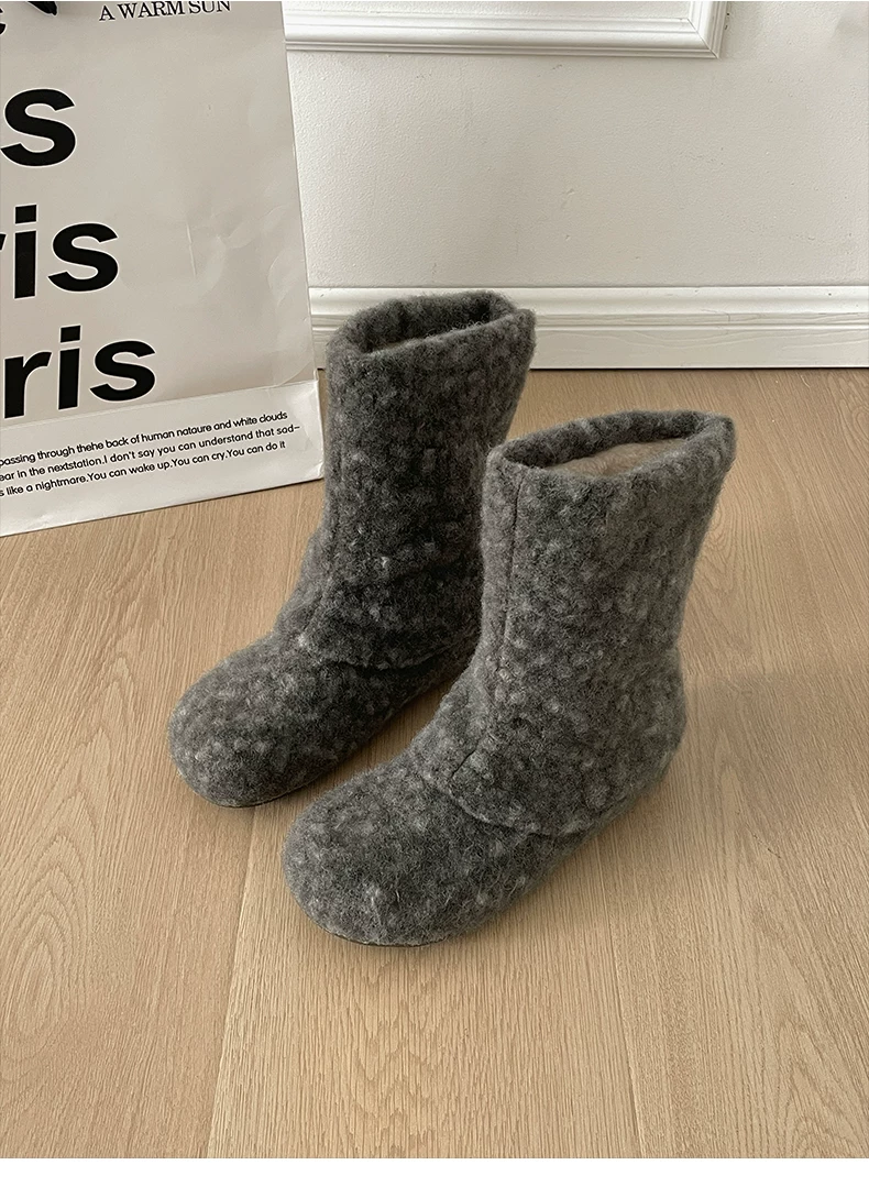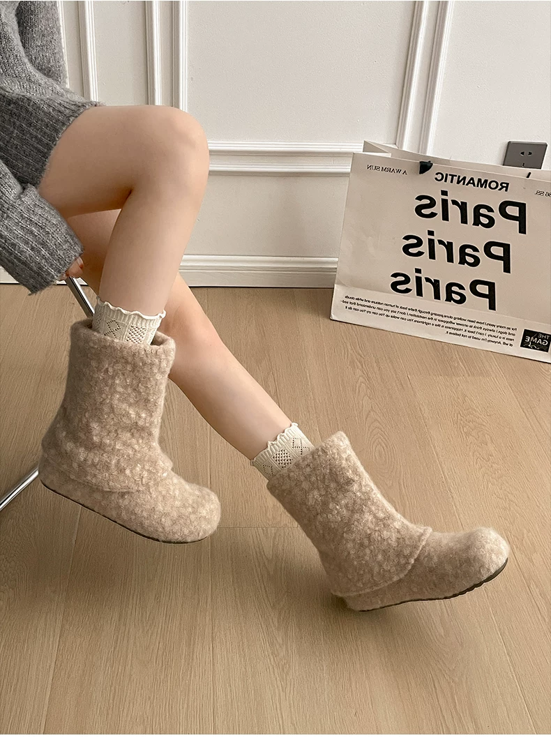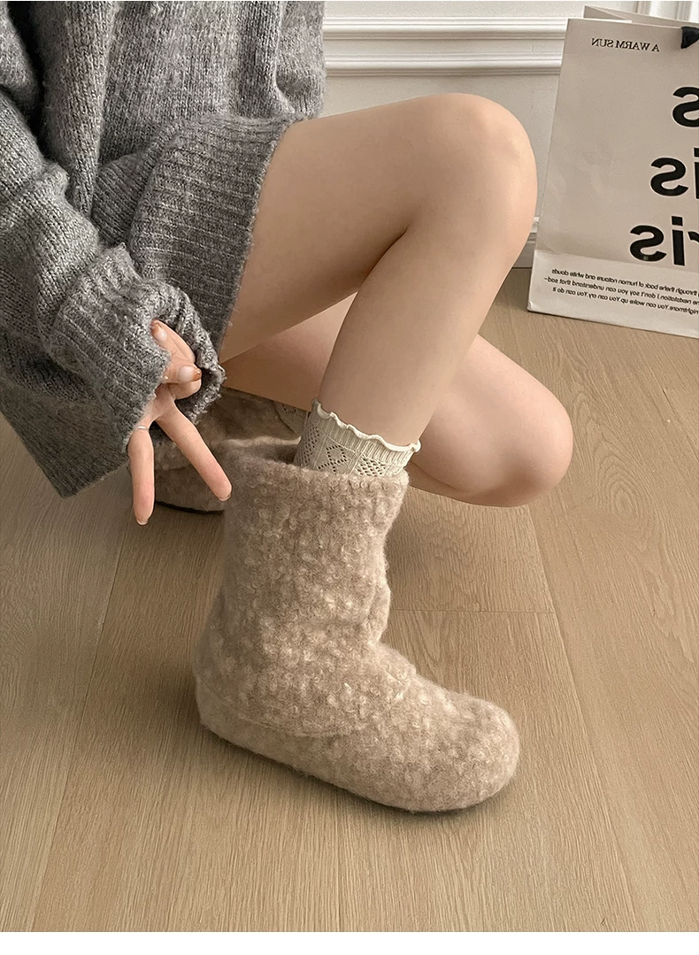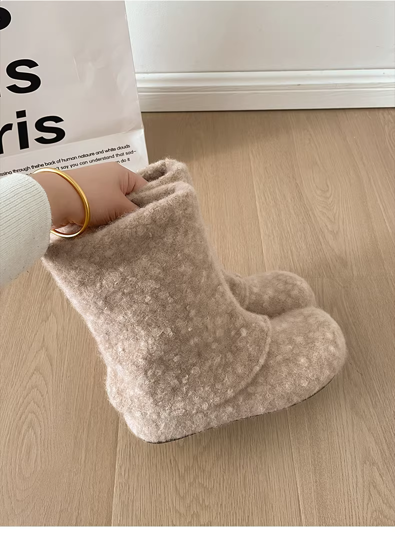 - Giày bốt tuyết đế dày cổ điển màu trắng, tăng chiều cao, lót lông cừu dành cho nữ, mẫu mới mùa đông 2025, giày bông ấm áp kiểu Birkenstock.