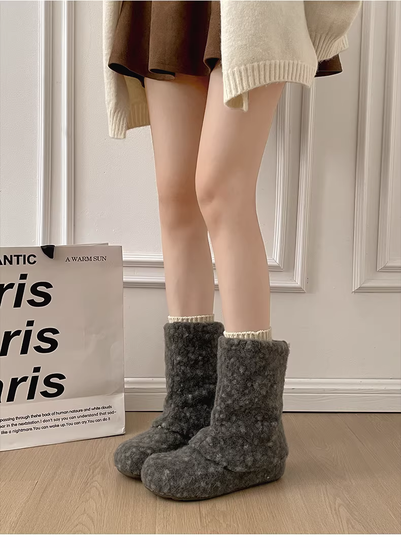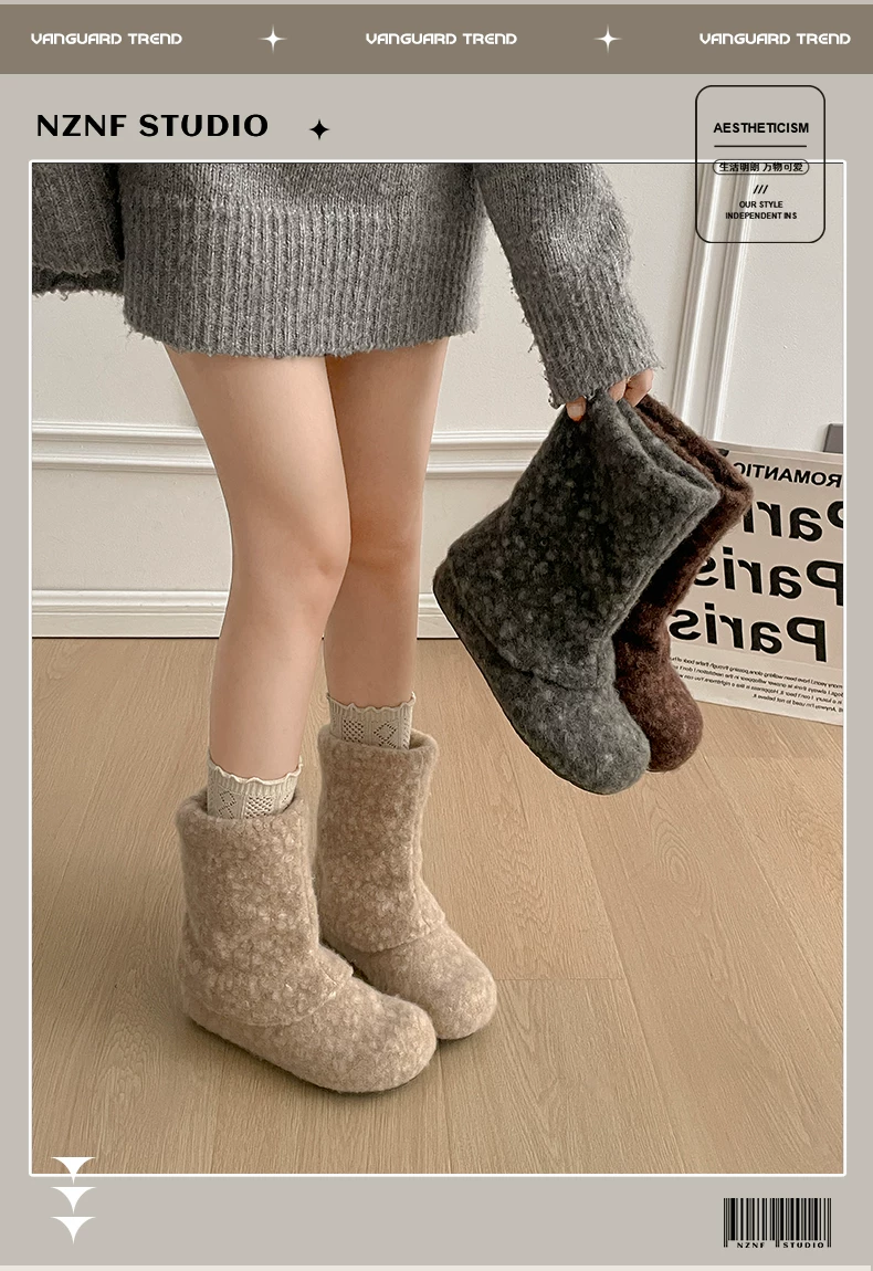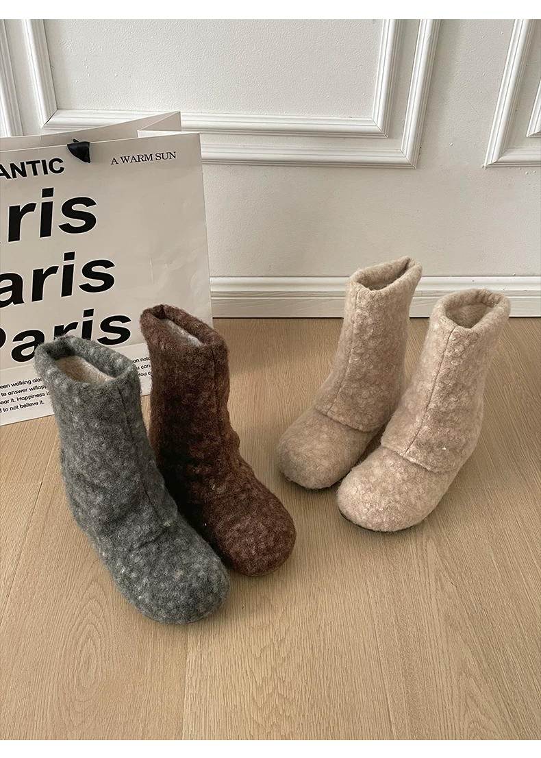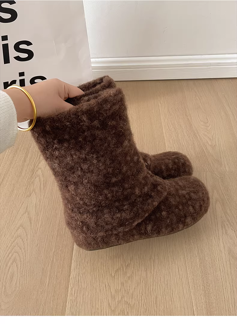 - Giày bốt tuyết đế dày cổ điển màu trắng, tăng chiều cao, lót lông cừu dành cho nữ, mẫu mới mùa đông 2025, giày bông ấm áp kiểu Birkenstock.