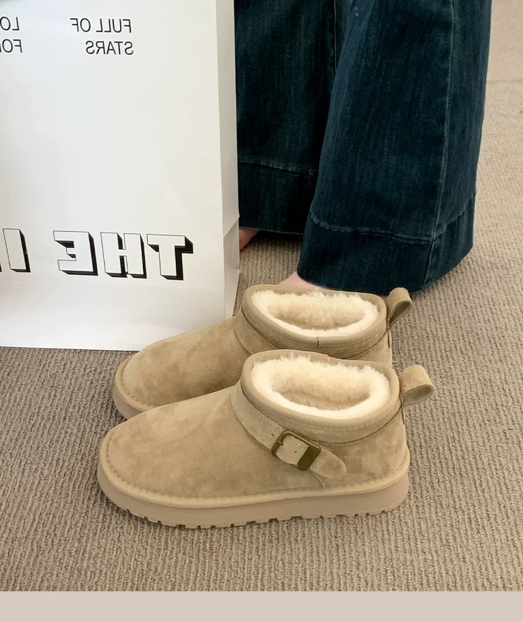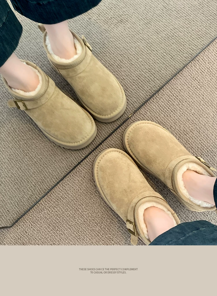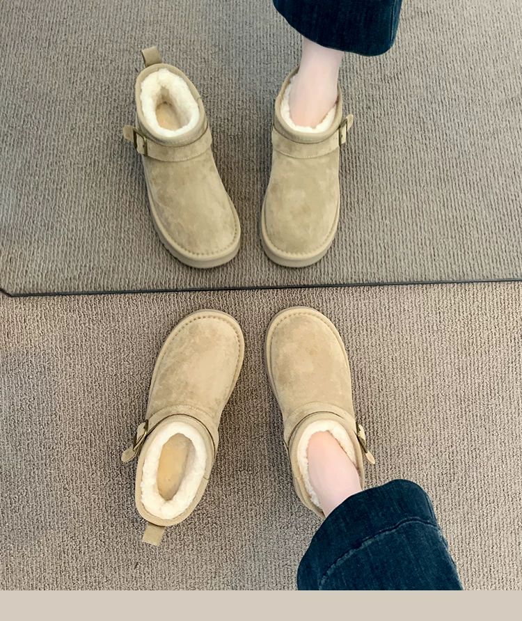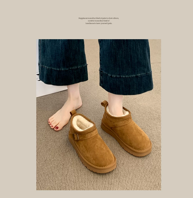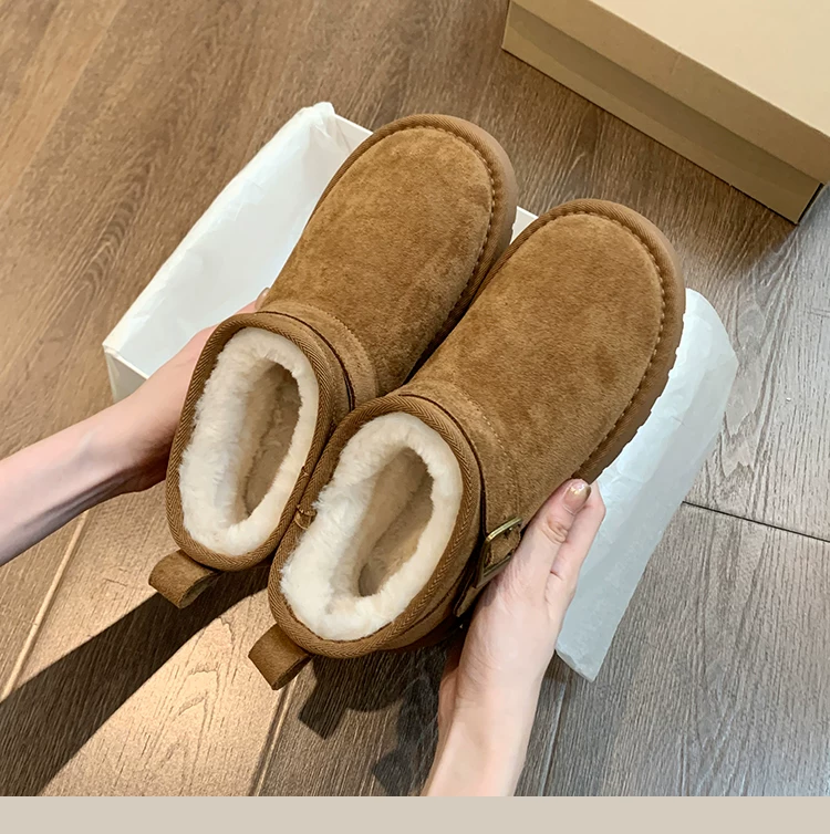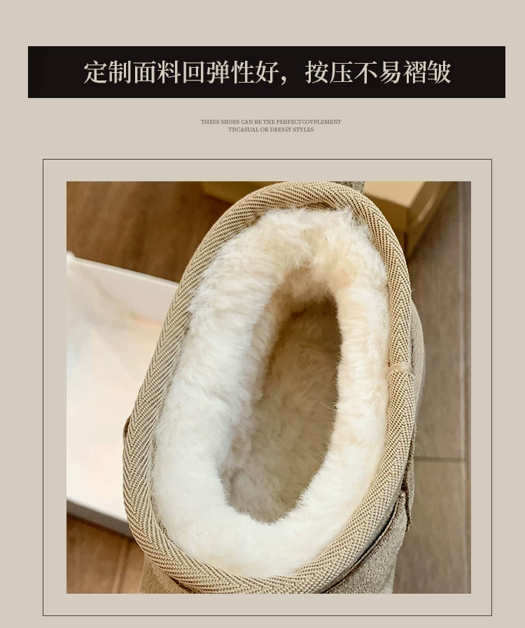 - Giày bốt tuyết đế dày giữ ấm tăng chiều cao phổ biến dành cho nữ, mẫu mới mùa đông 2025, lót lông cừu dày dặn, chống trơn trượt, giày cotton đi ngoài trời