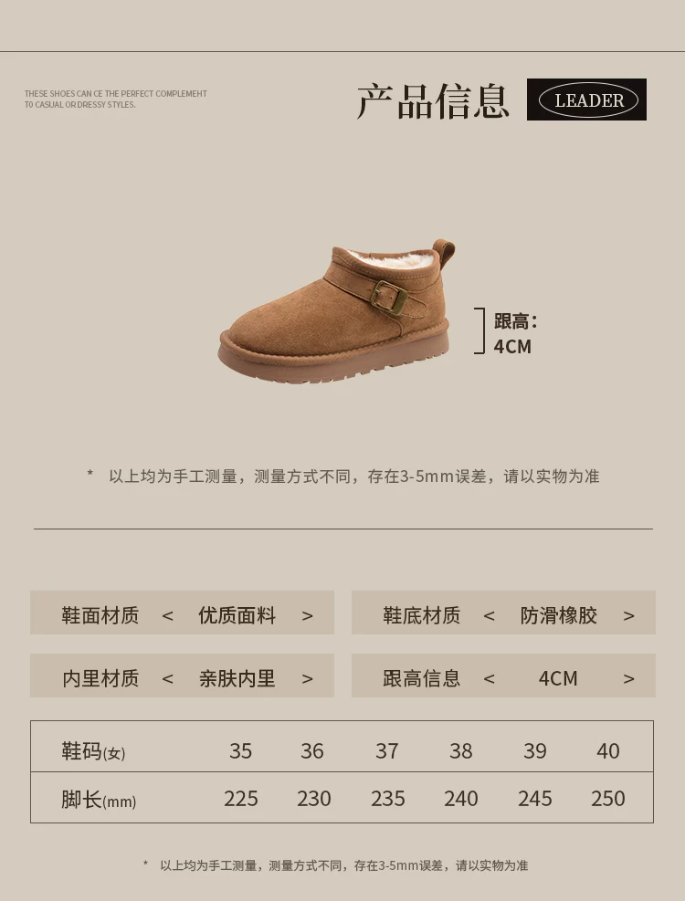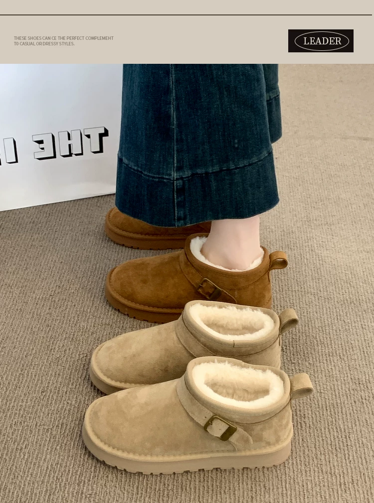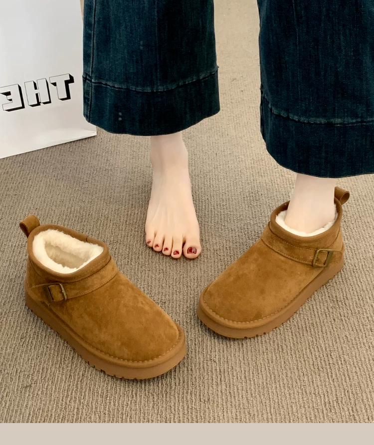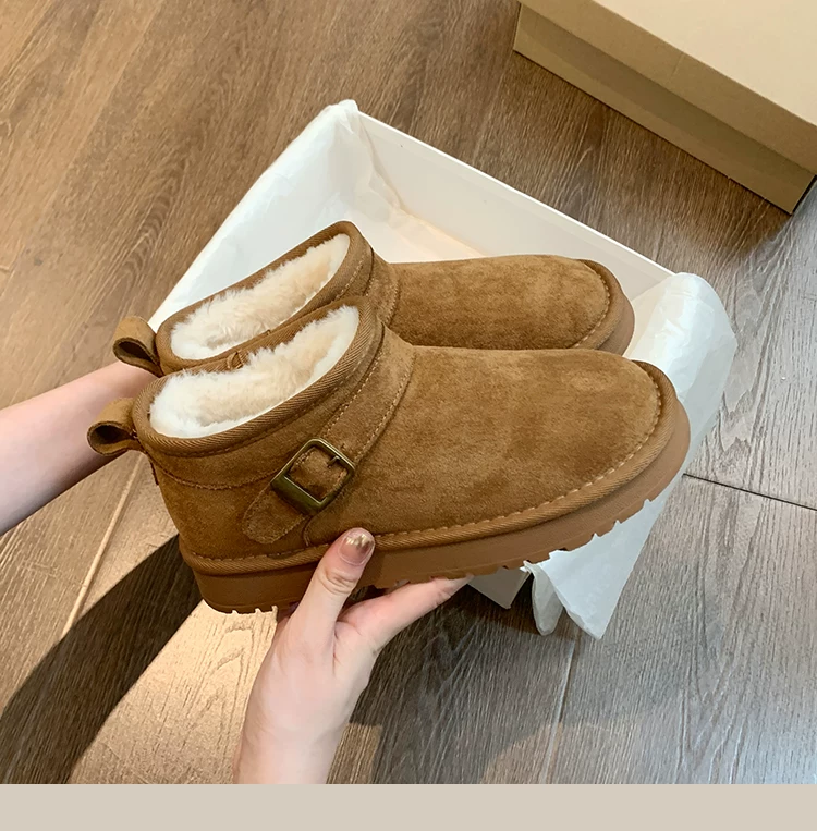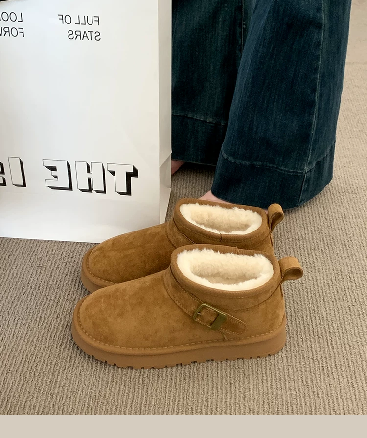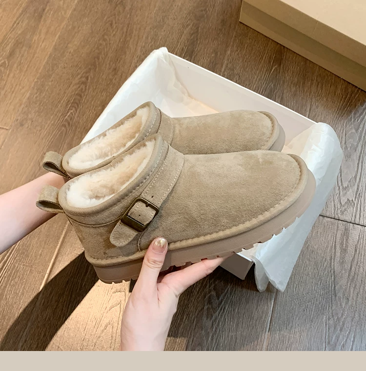 - Giày bốt tuyết đế dày giữ ấm tăng chiều cao phổ biến dành cho nữ, mẫu mới mùa đông 2025, lót lông cừu dày dặn, chống trơn trượt, giày cotton đi ngoài trời