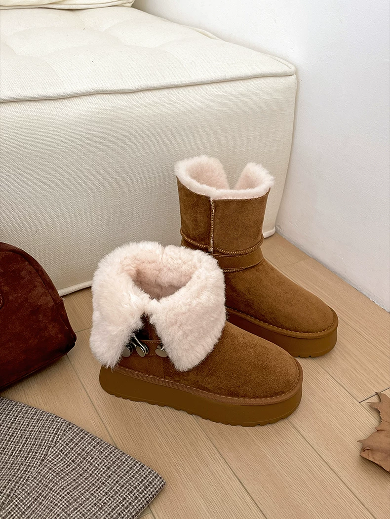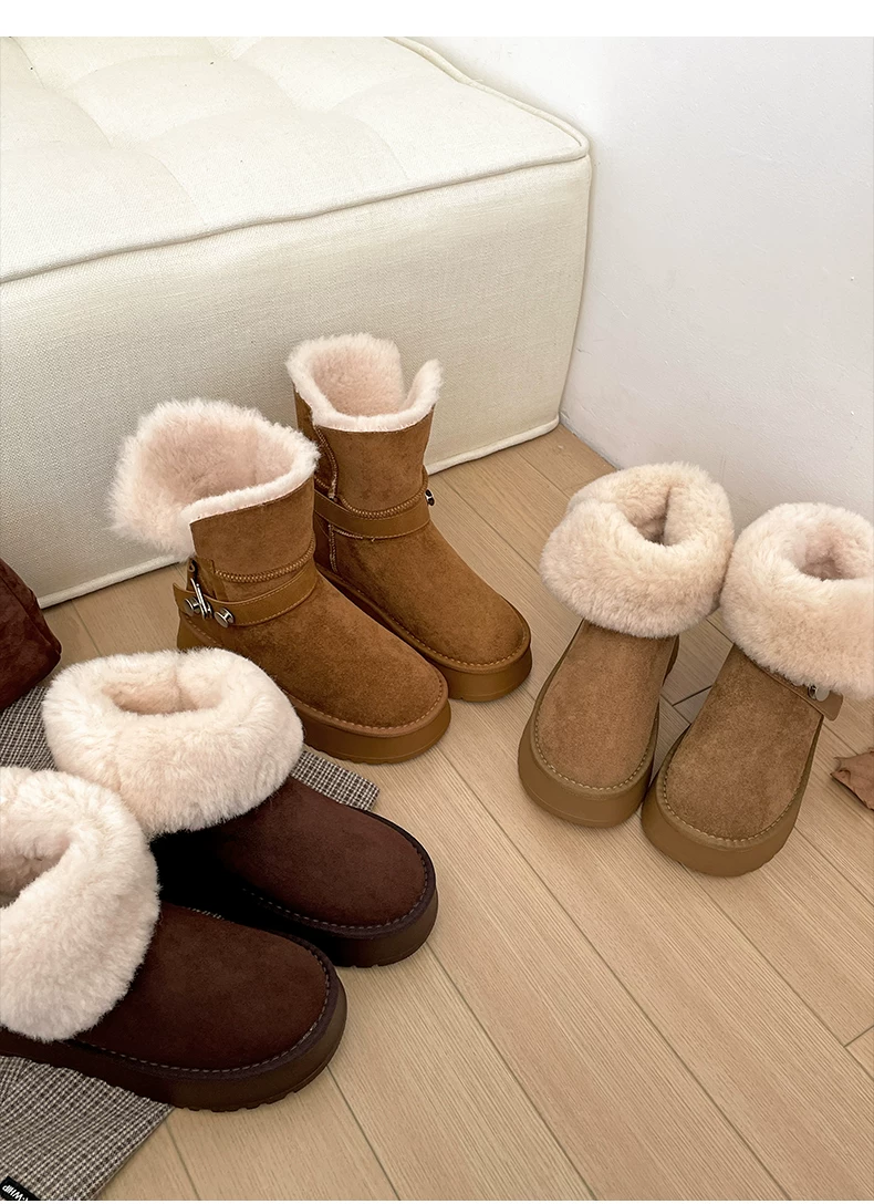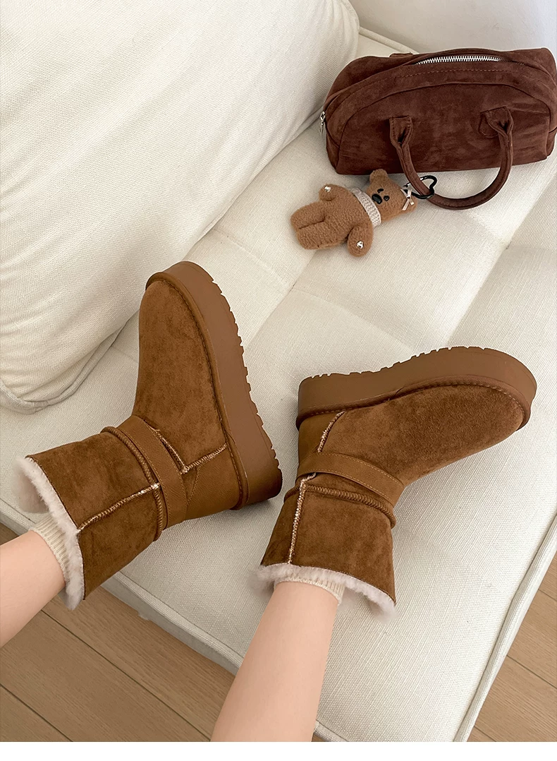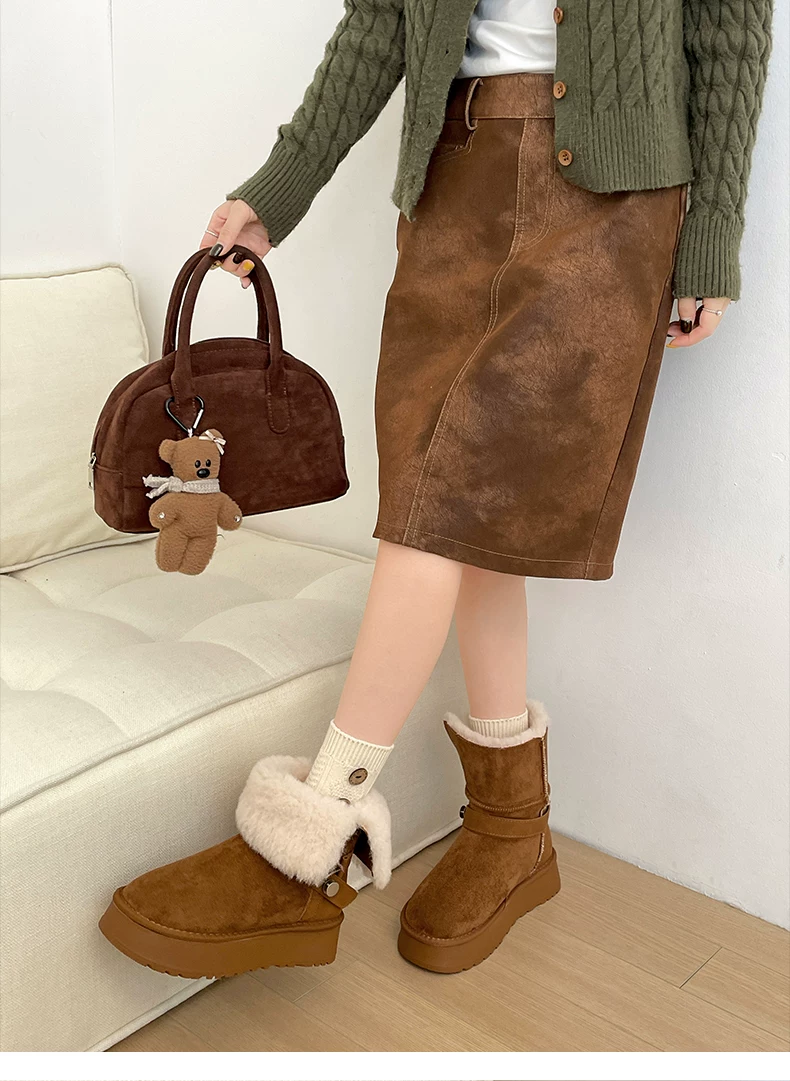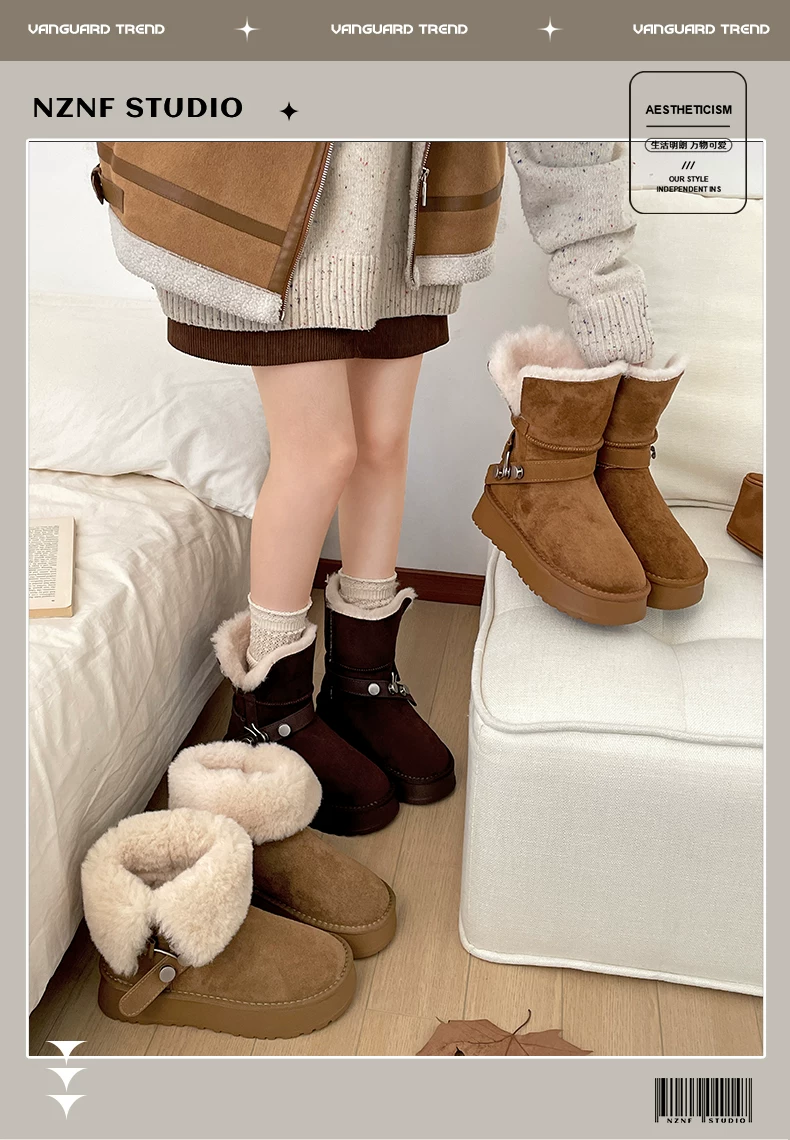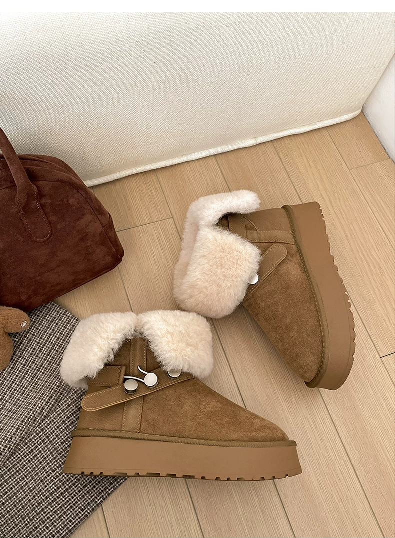 - Giày bốt tuyết đế dày lót lông cừu kiểu retro màu kaki dành cho nữ, giày cotton giữ ấm mùa đông kiểu Birkenstock mới năm 2025 dành cho vùng Đông Bắc.