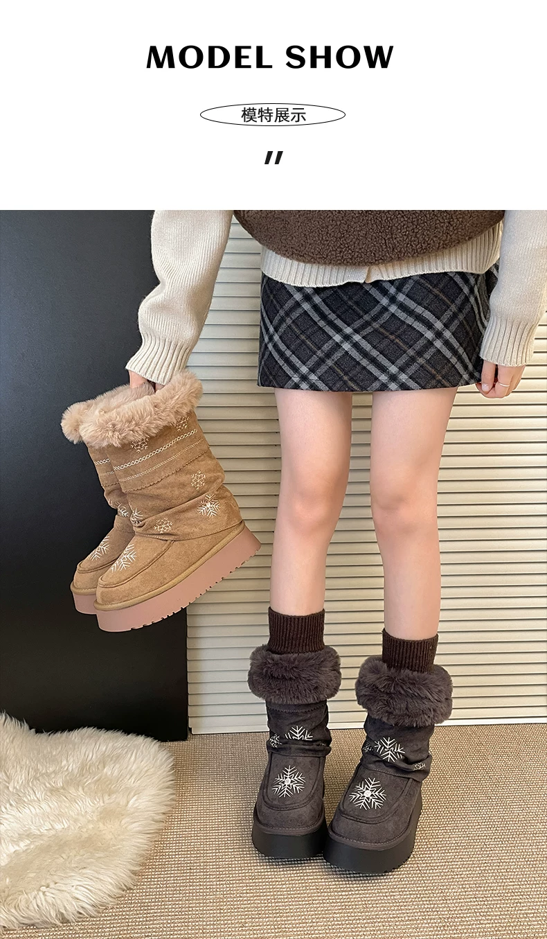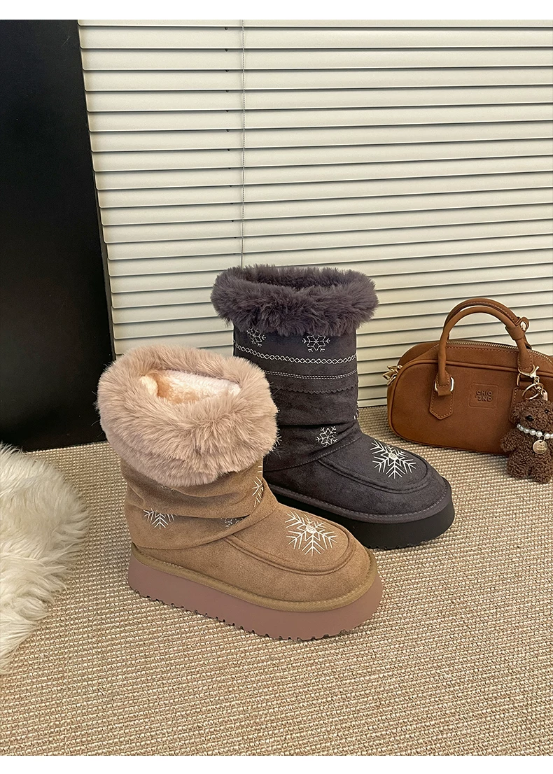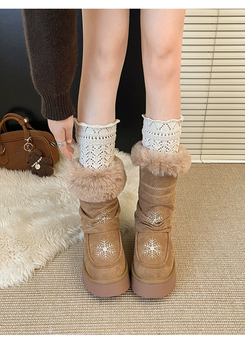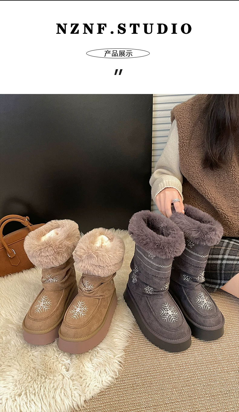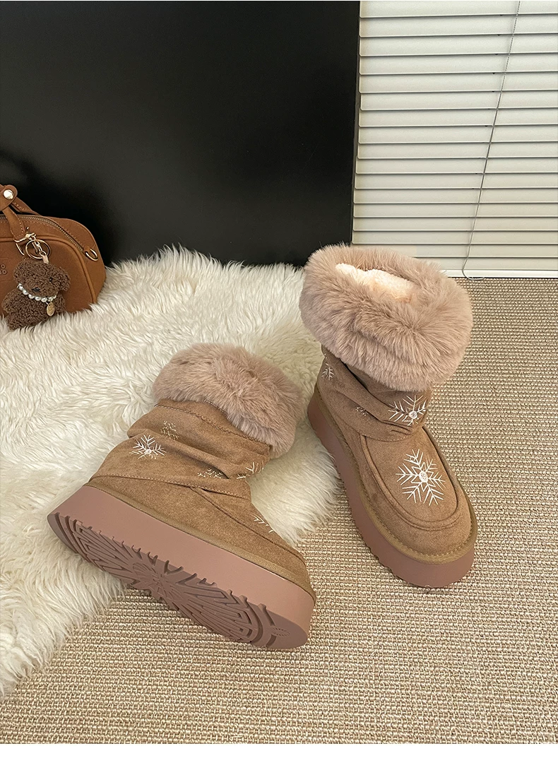 - Giày bốt tuyết đế dày lót lông cừu phổ biến dành cho nữ, mẫu mới mùa đông 2025, giày bông giữ ấm tăng chiều cao kiểu Đông Bắc.