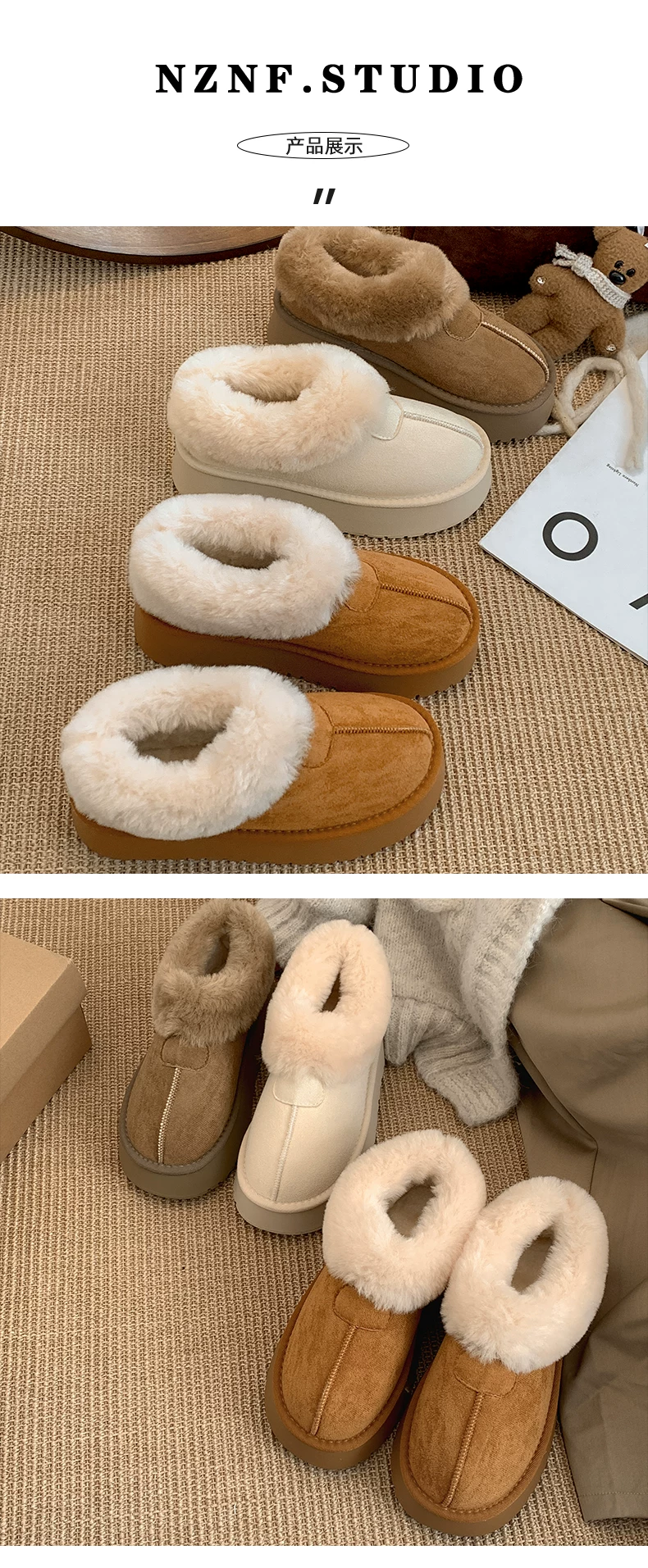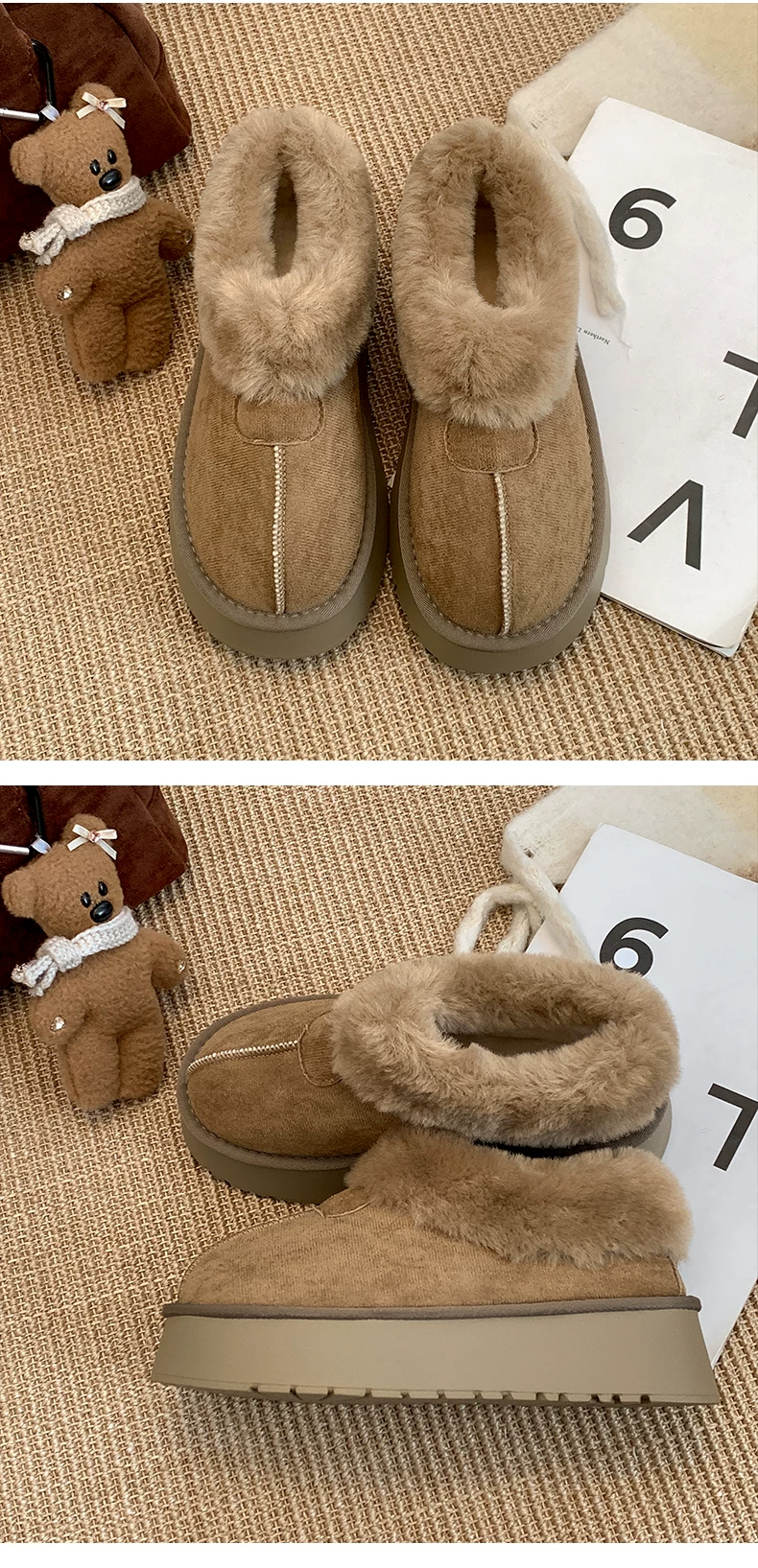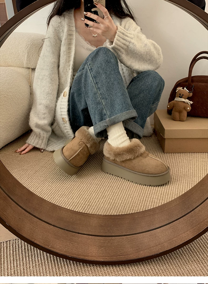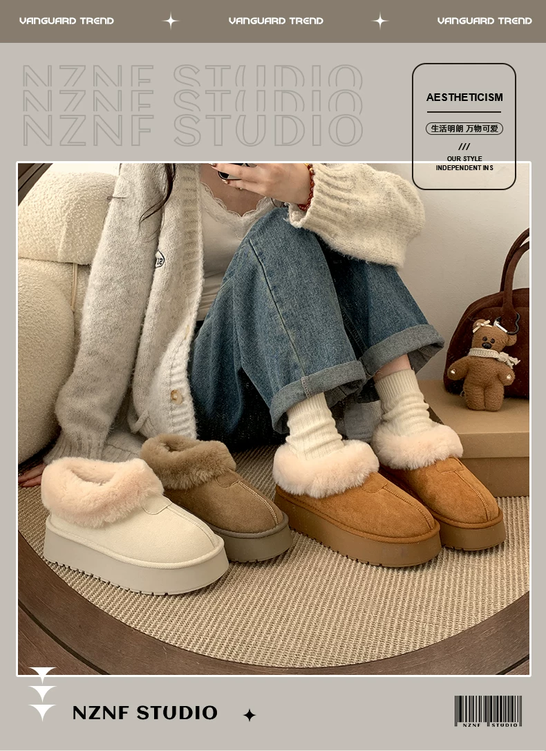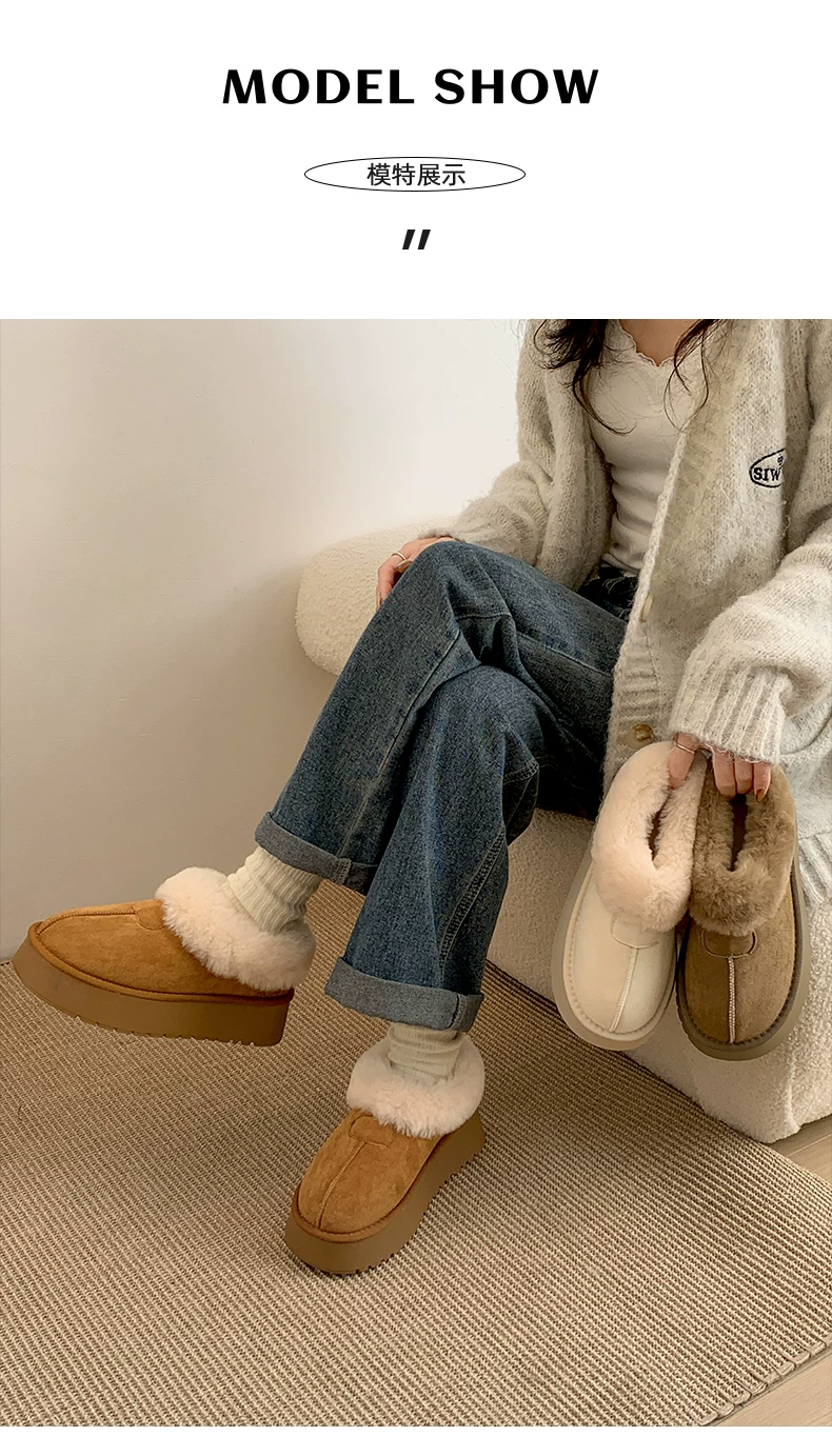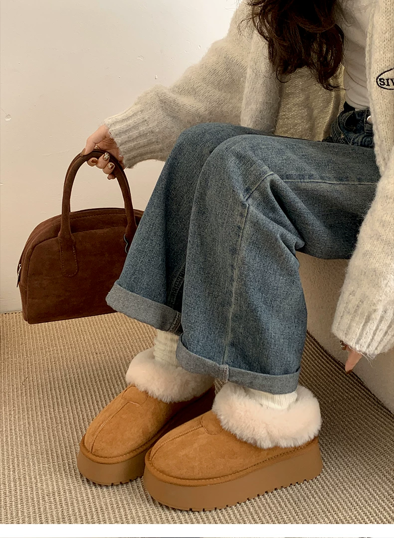 - Giày bốt tuyết đế dày màu trắng dành cho nữ, kiểu dáng mùa đông mới 2025, lót lông cừu, dày dặn, ấm áp, chống trơn trượt, chất liệu cotton.