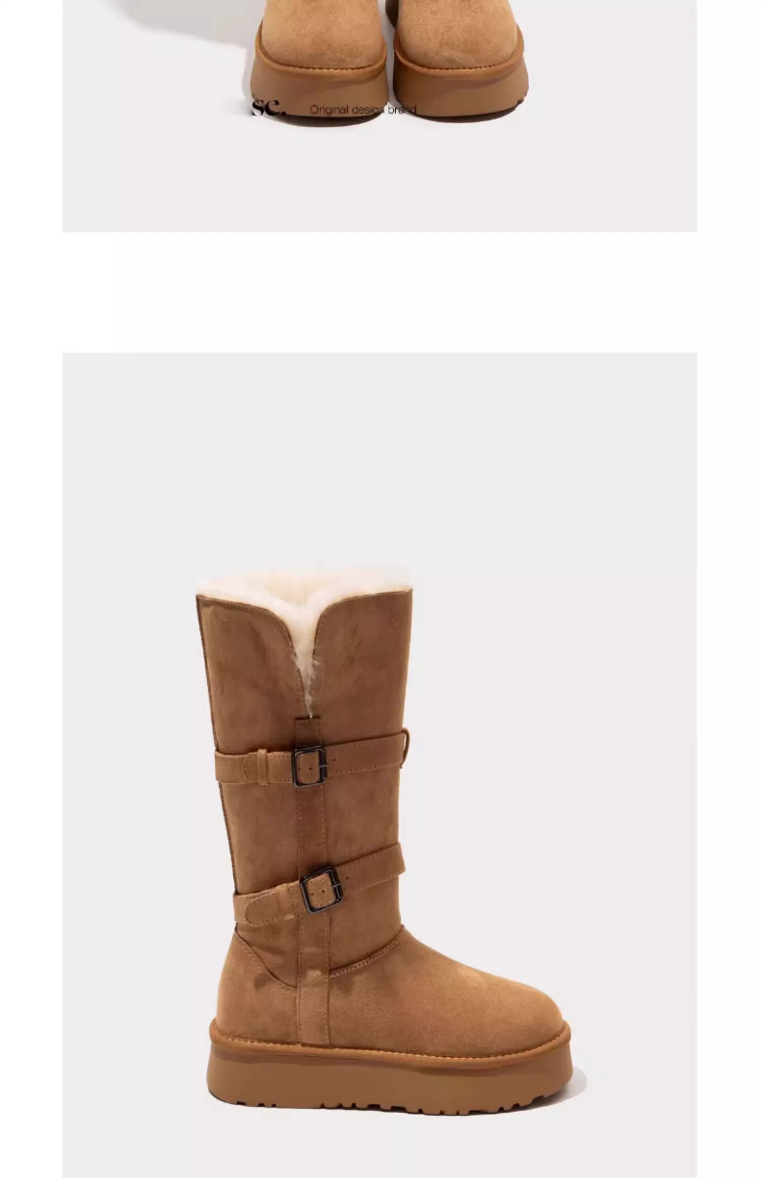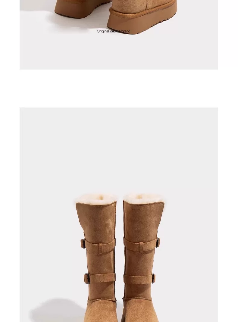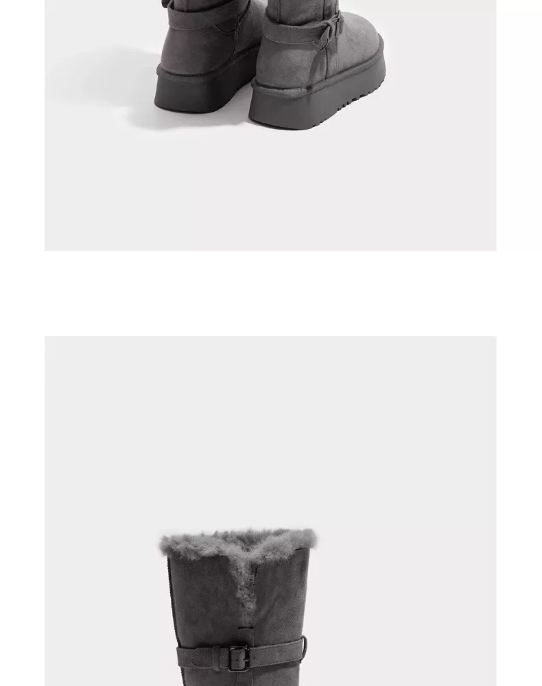 - Giày bốt tuyết đế dày màu xám ấm dành cho nữ, kiểu dáng mùa đông mới 2025, lót lông cừu và dày dặn, kiểu bốt và giày bông cao đến giữa bắp chân.