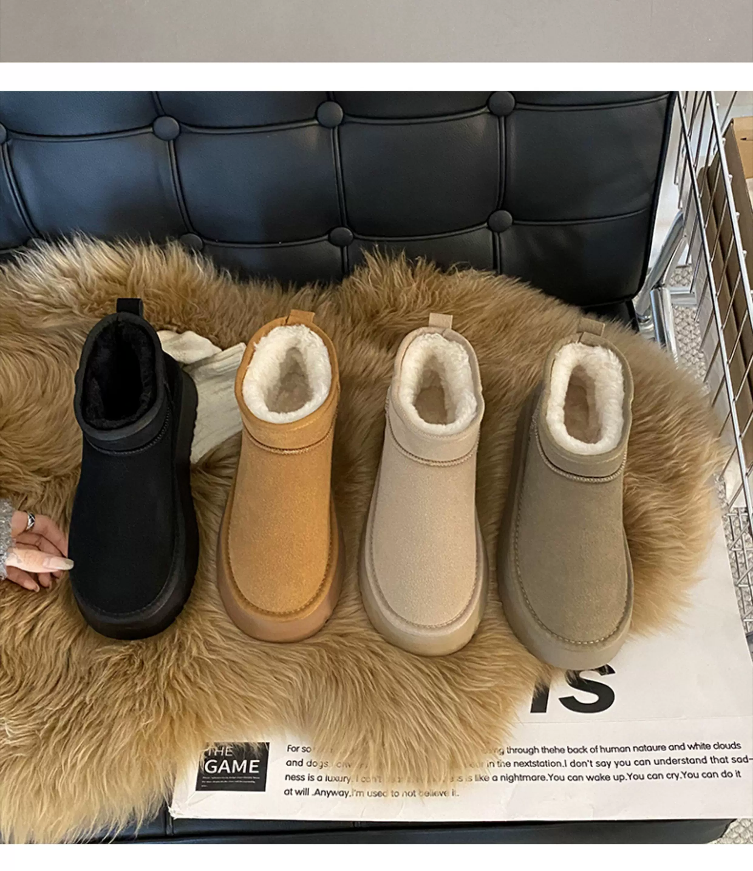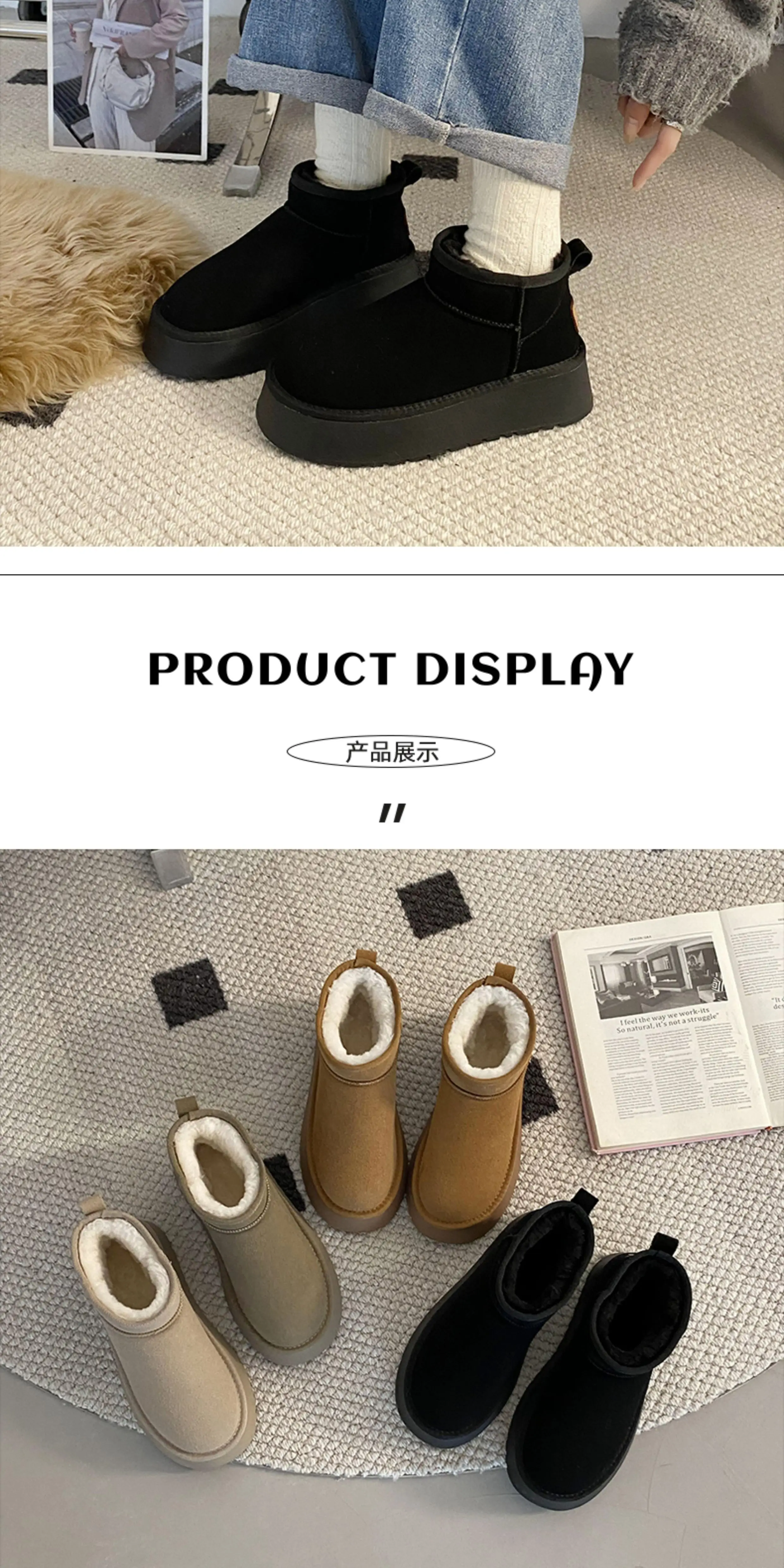 - Giày bốt tuyết đế dày tích hợp lông thú ấm áp dành cho nữ, lót lông cừu mùa đông và dày dặn Giày cotton một chân Đông Bắc kiểu mới 2025
