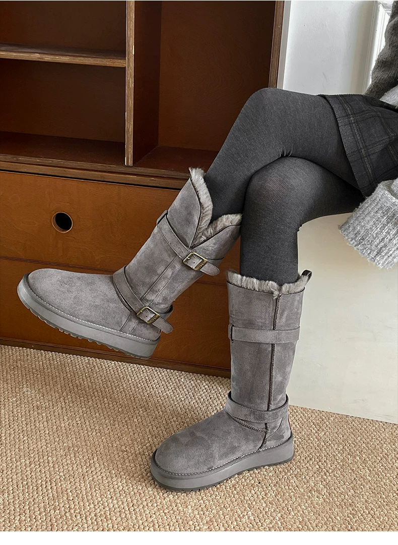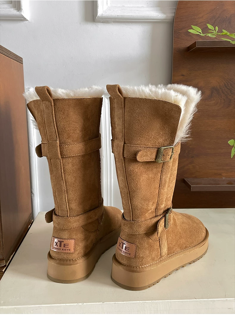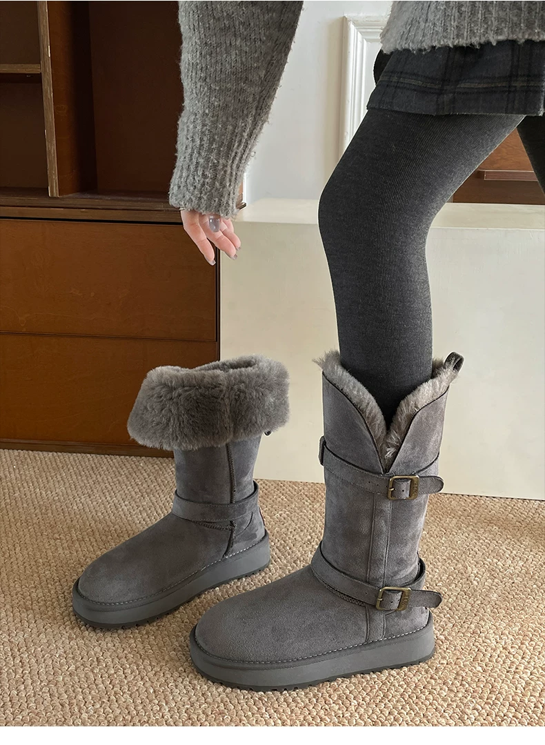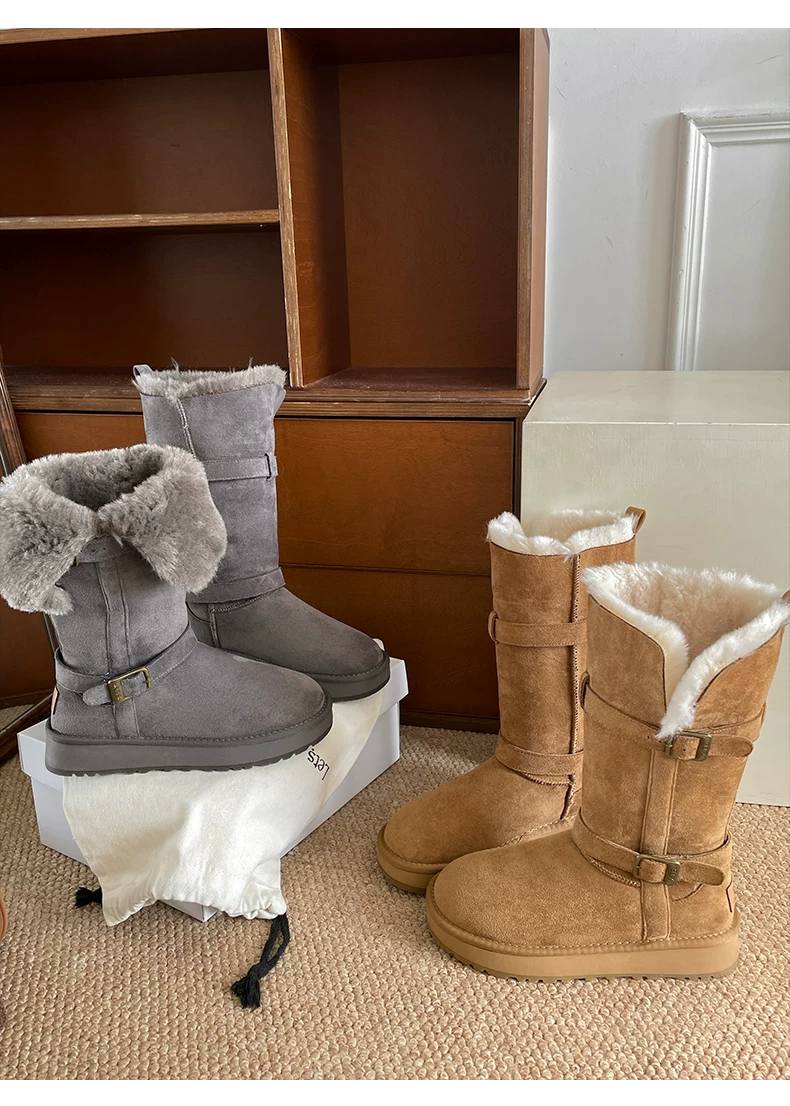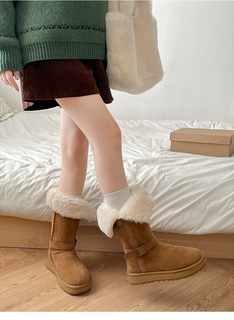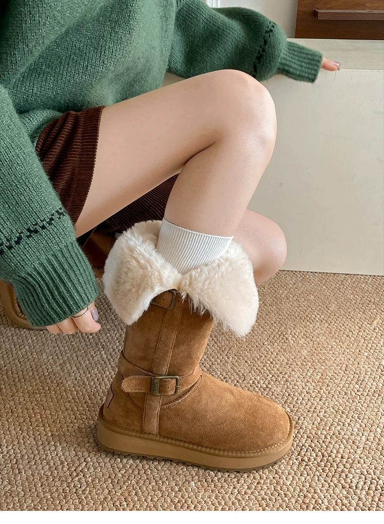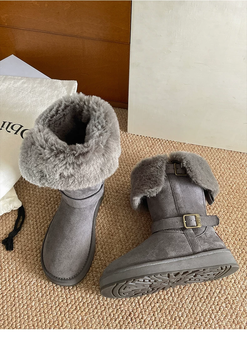 - Giày bốt tuyết đế xuồng lót lông dày kiểu cổ điển Nam Trung Quốc dành cho nữ 2025 Mẫu mới mùa đông ấm áp đi ngoài trời Giày bông Đông Bắc